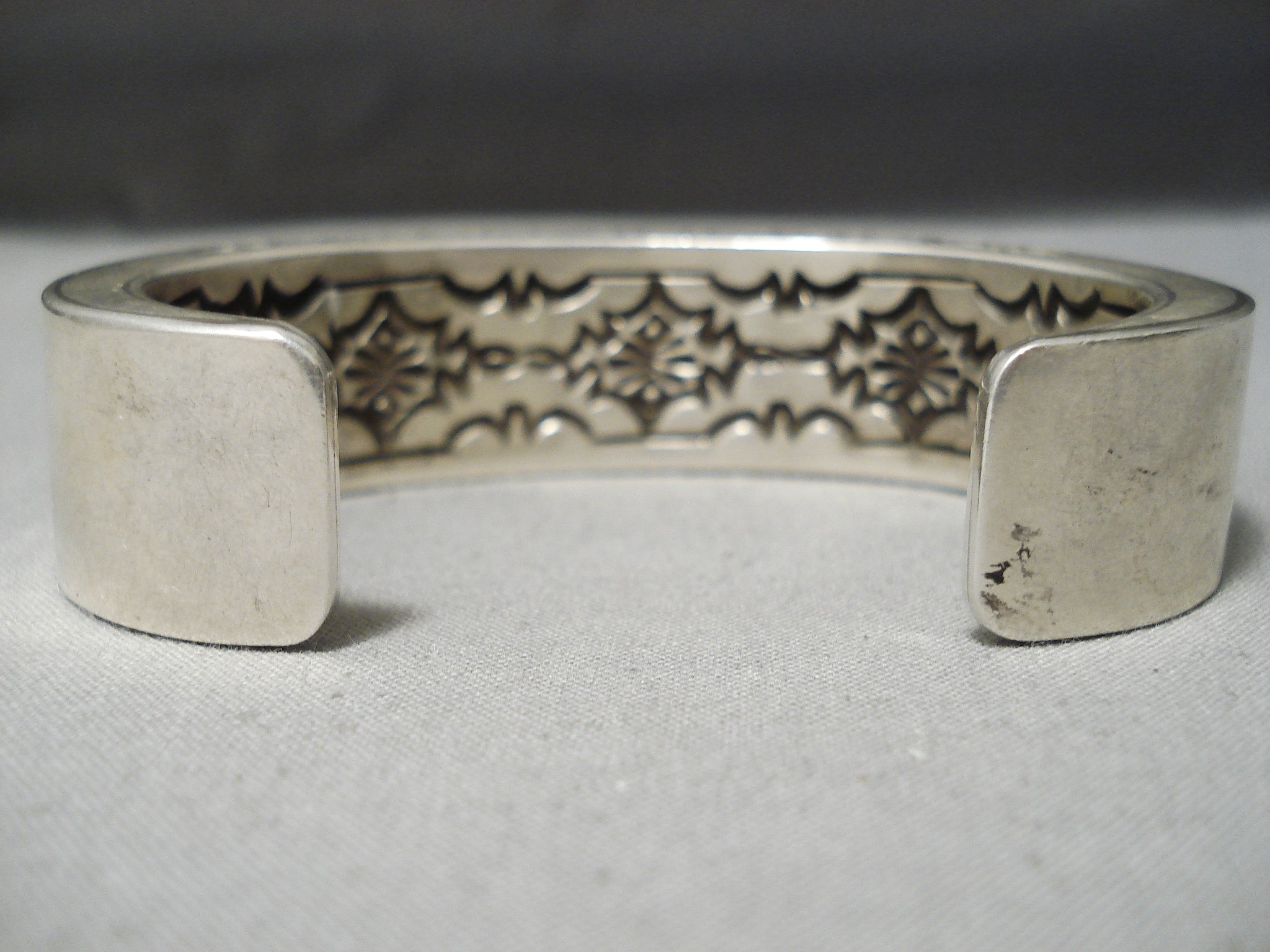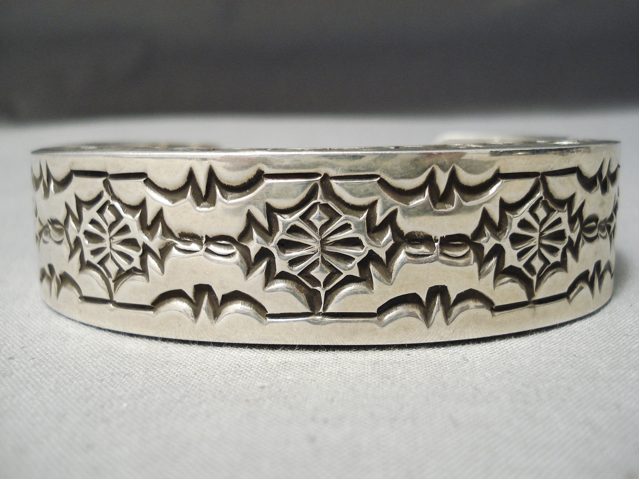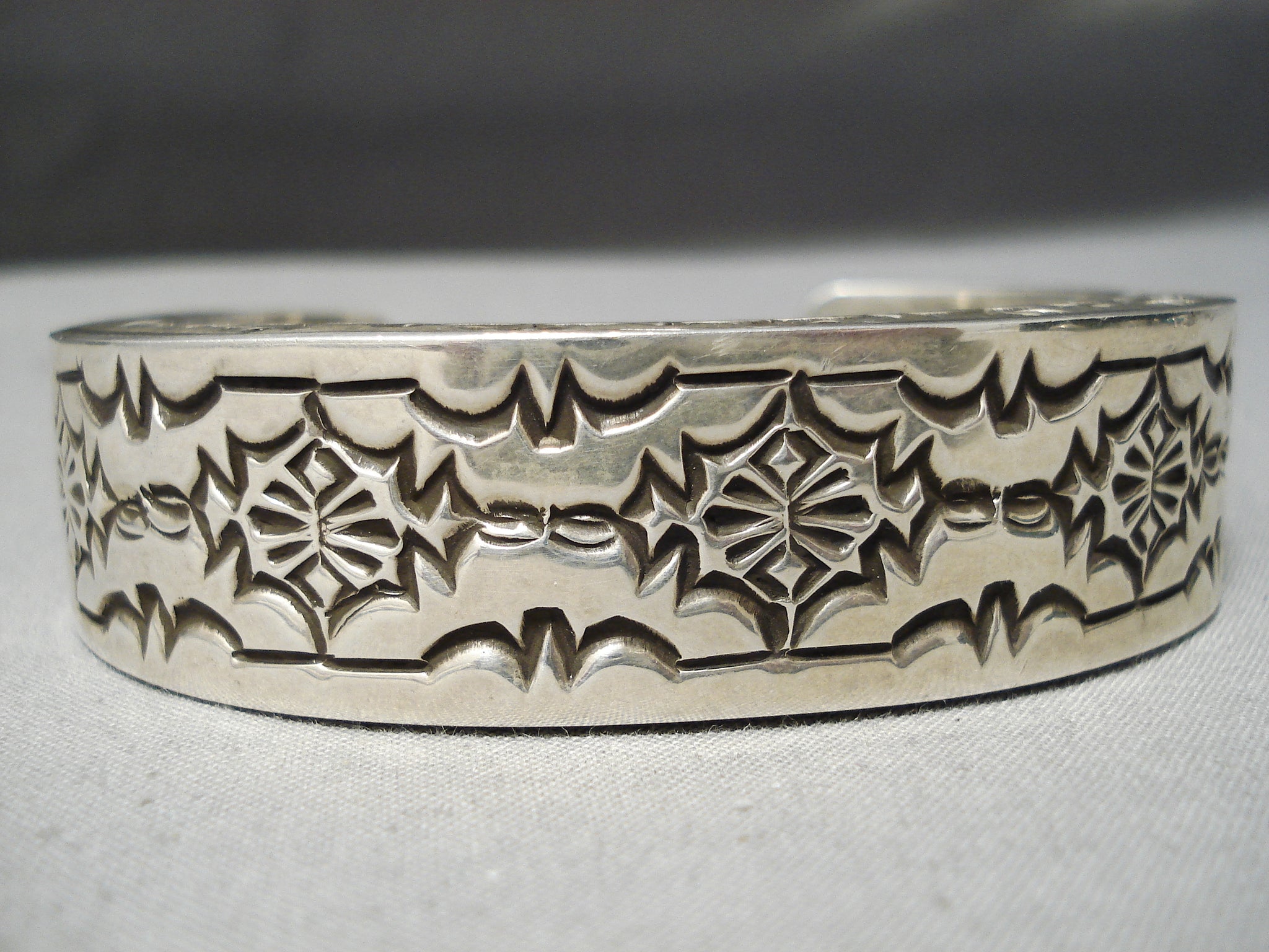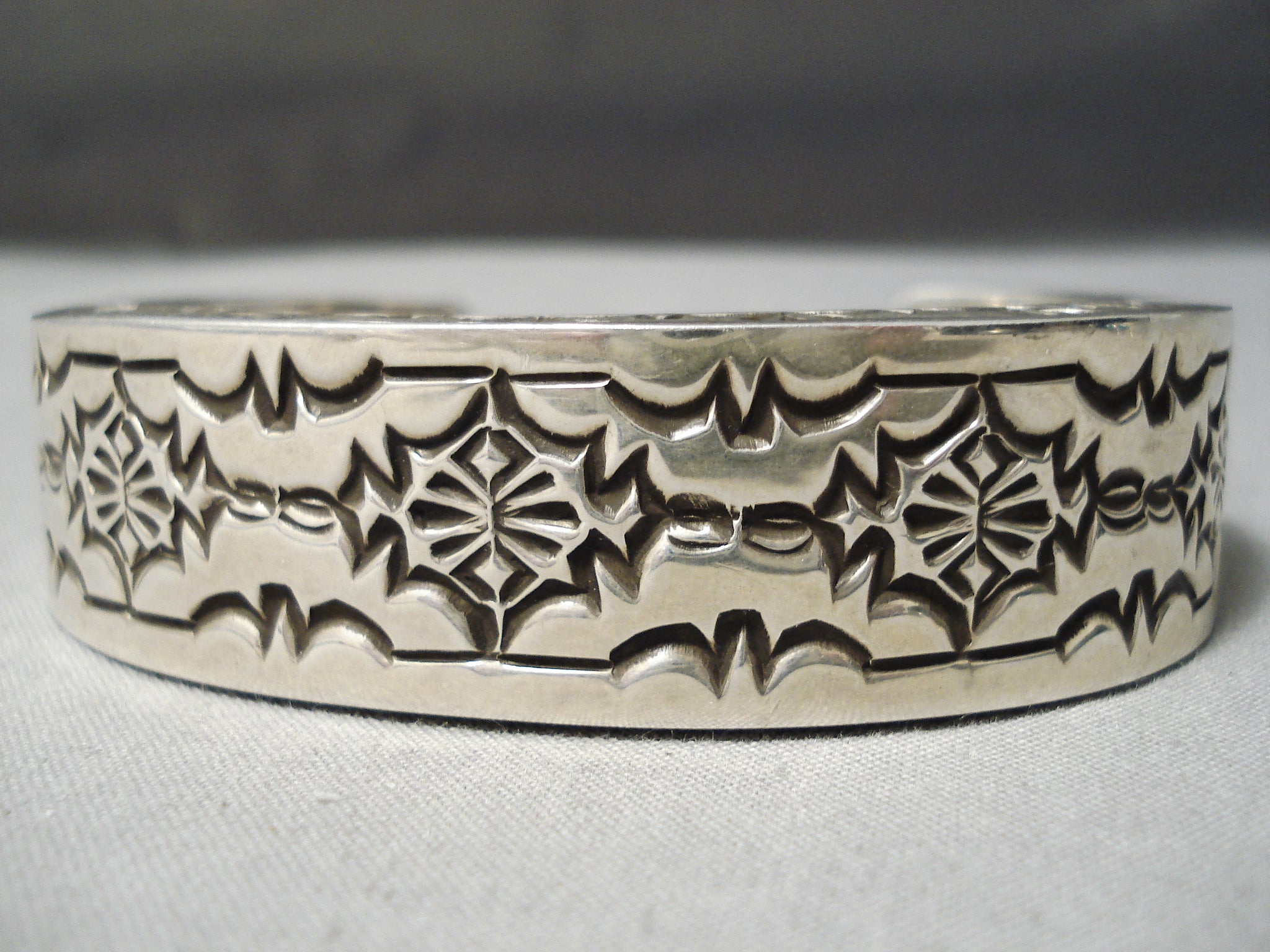 Thick Heavy Sturdy Navajo Stamp Genius Sterling Silver Native American Bracelet