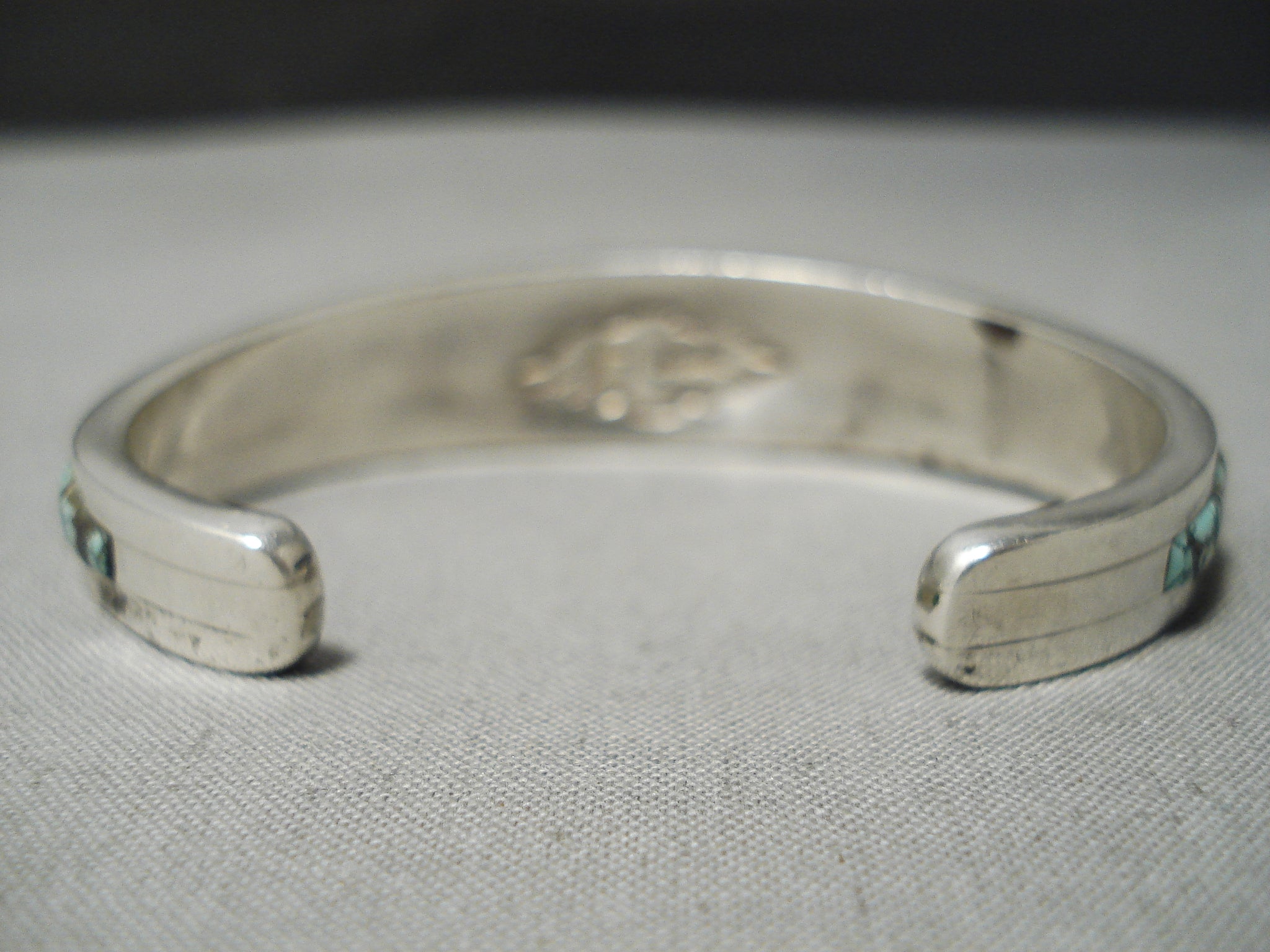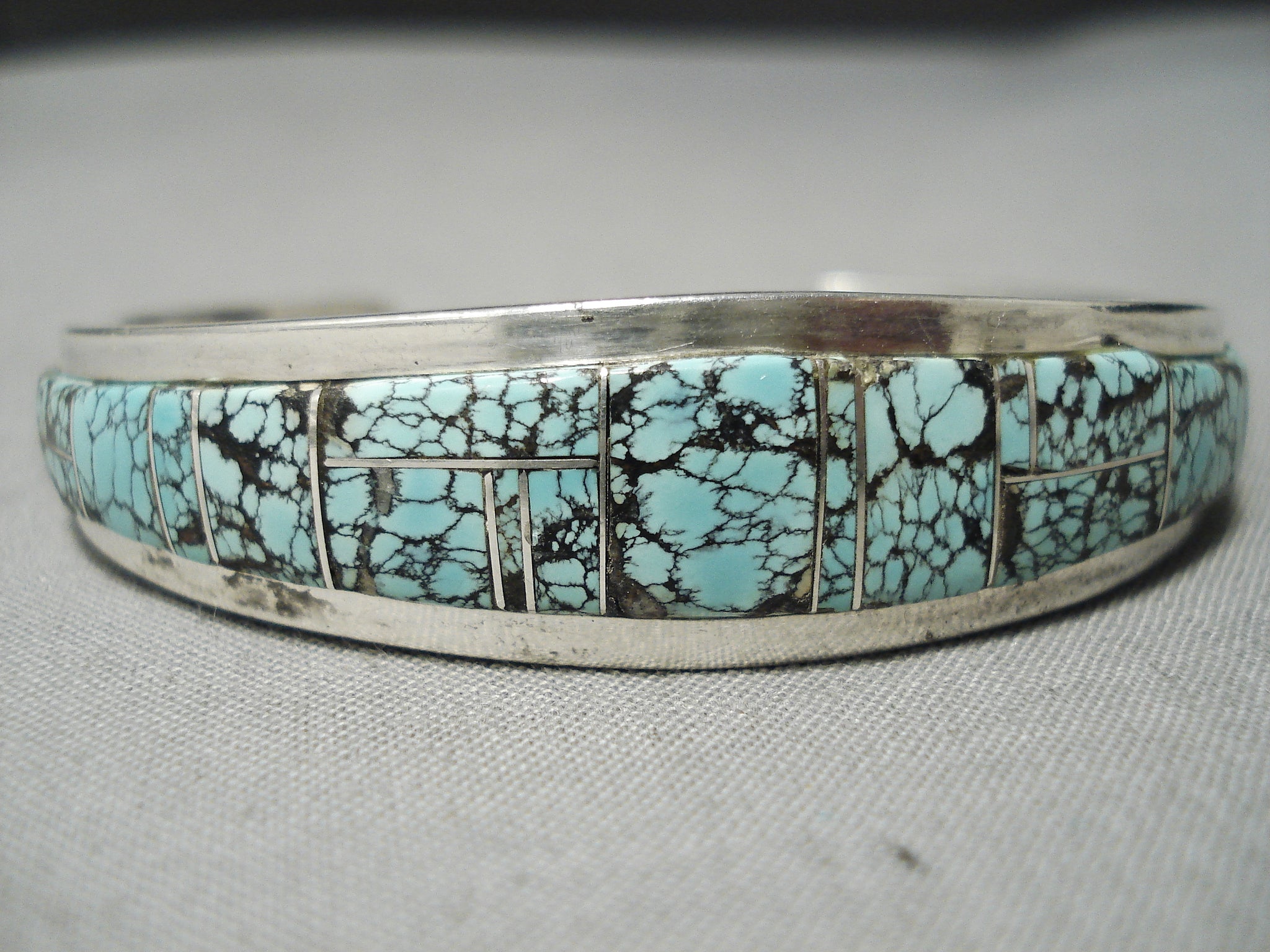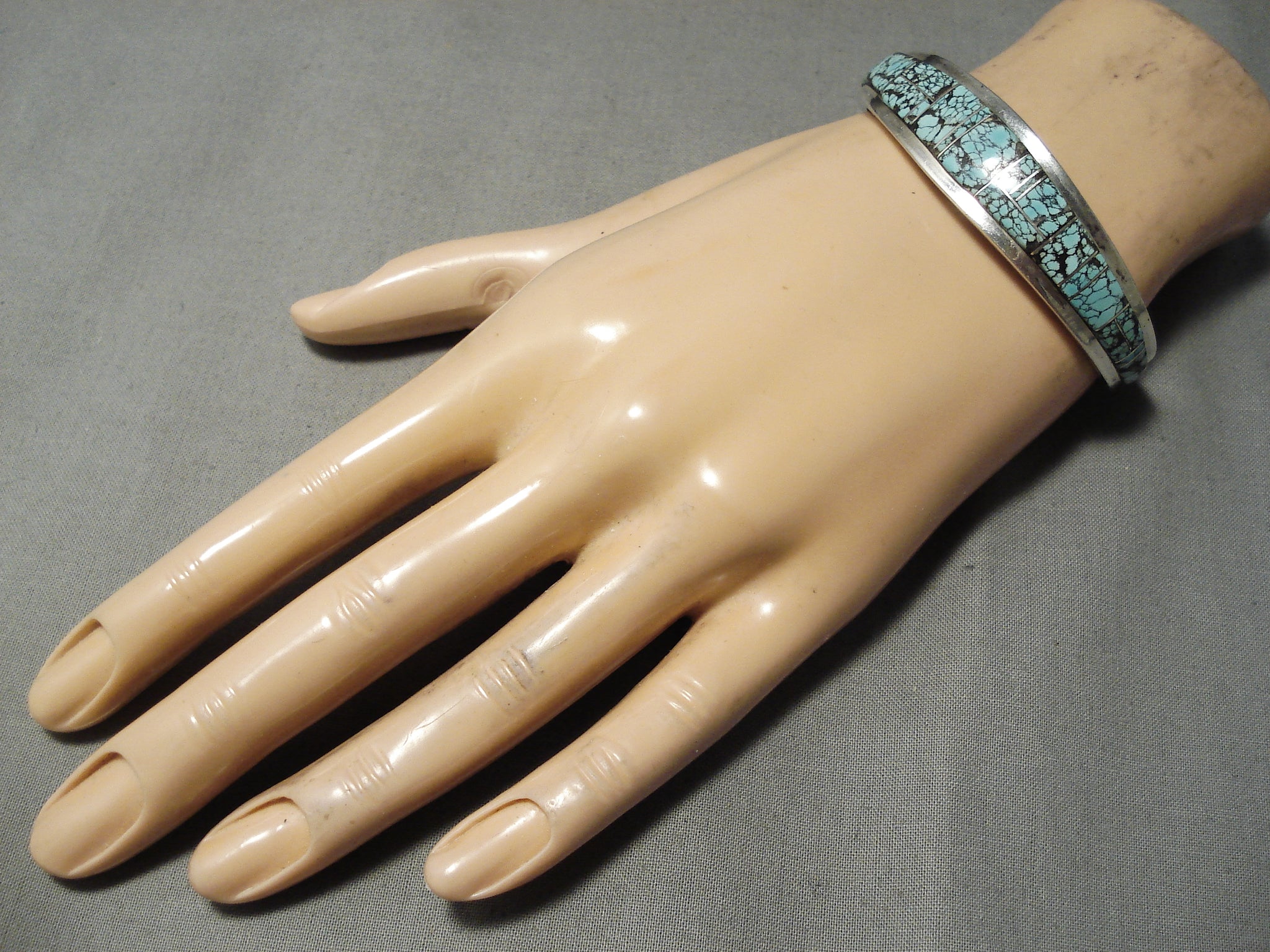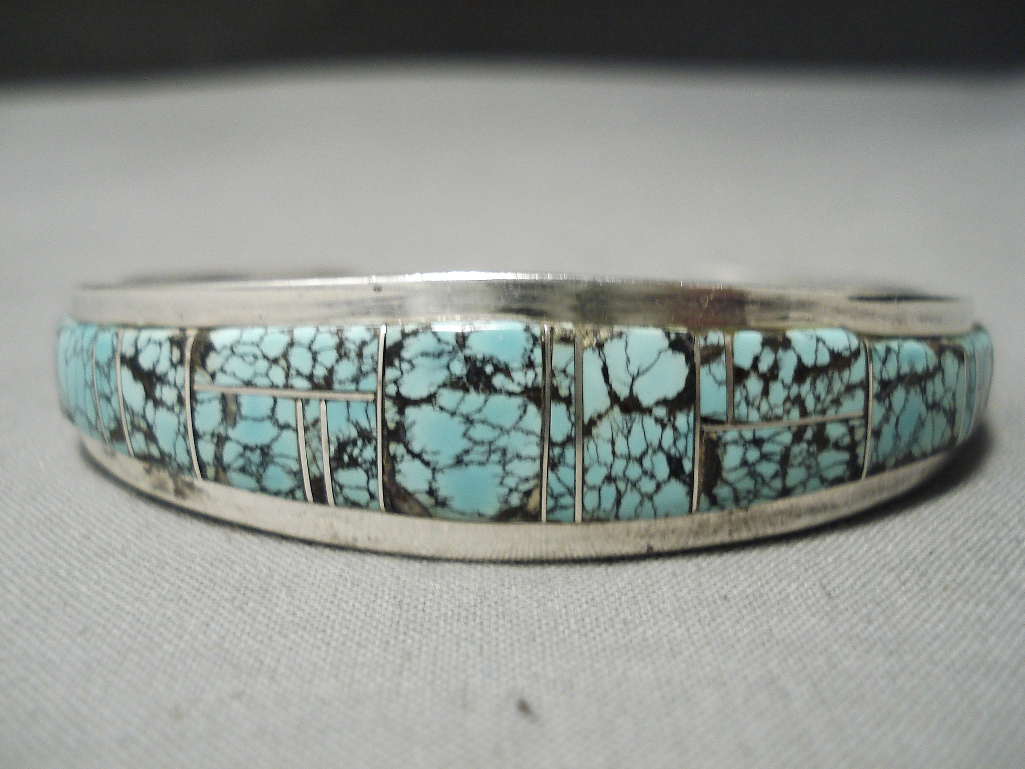 Thick Heavy!! Vintage Native American Navajo #8 Turquoise Sterling Silver Bracelet Old