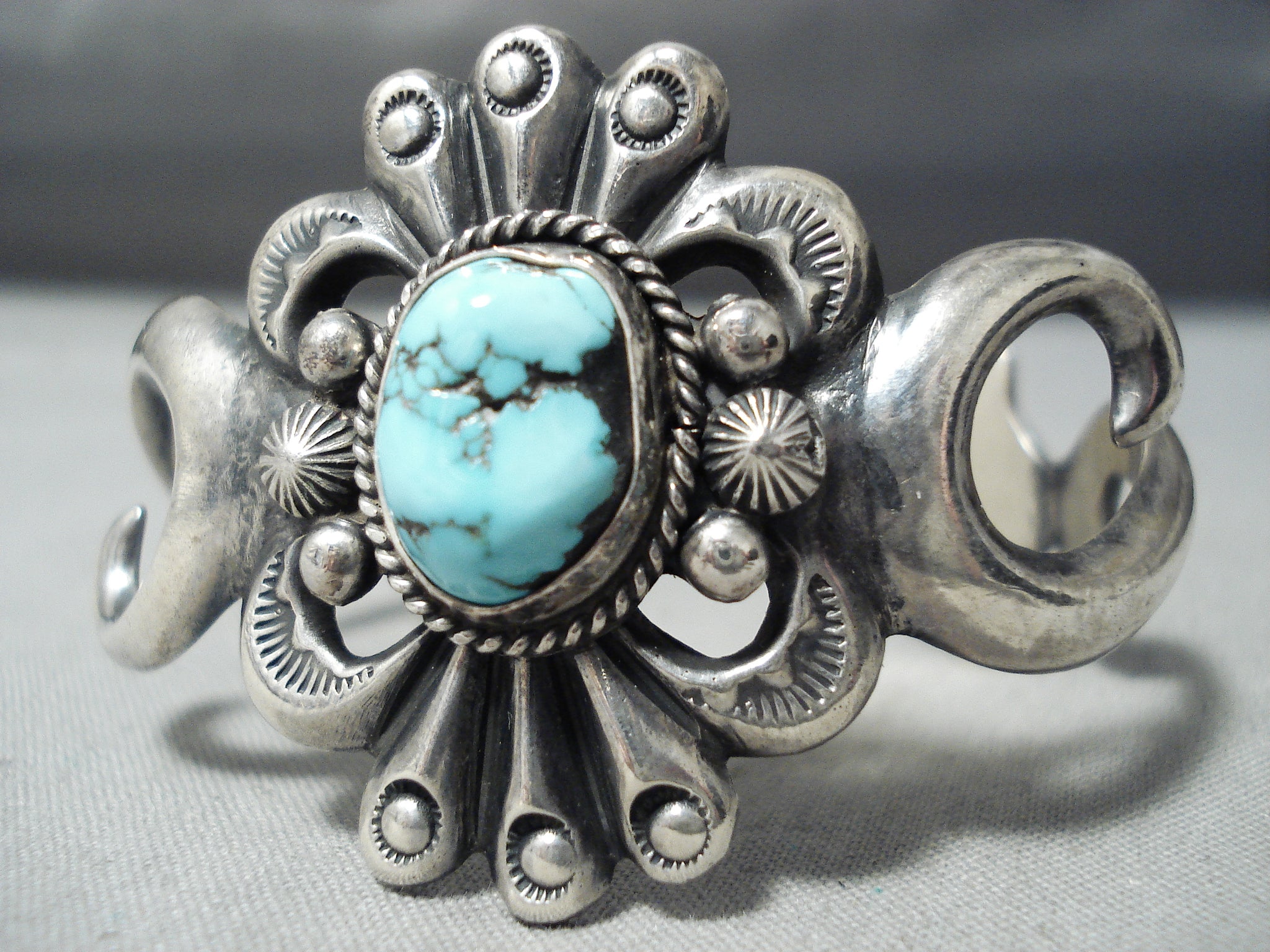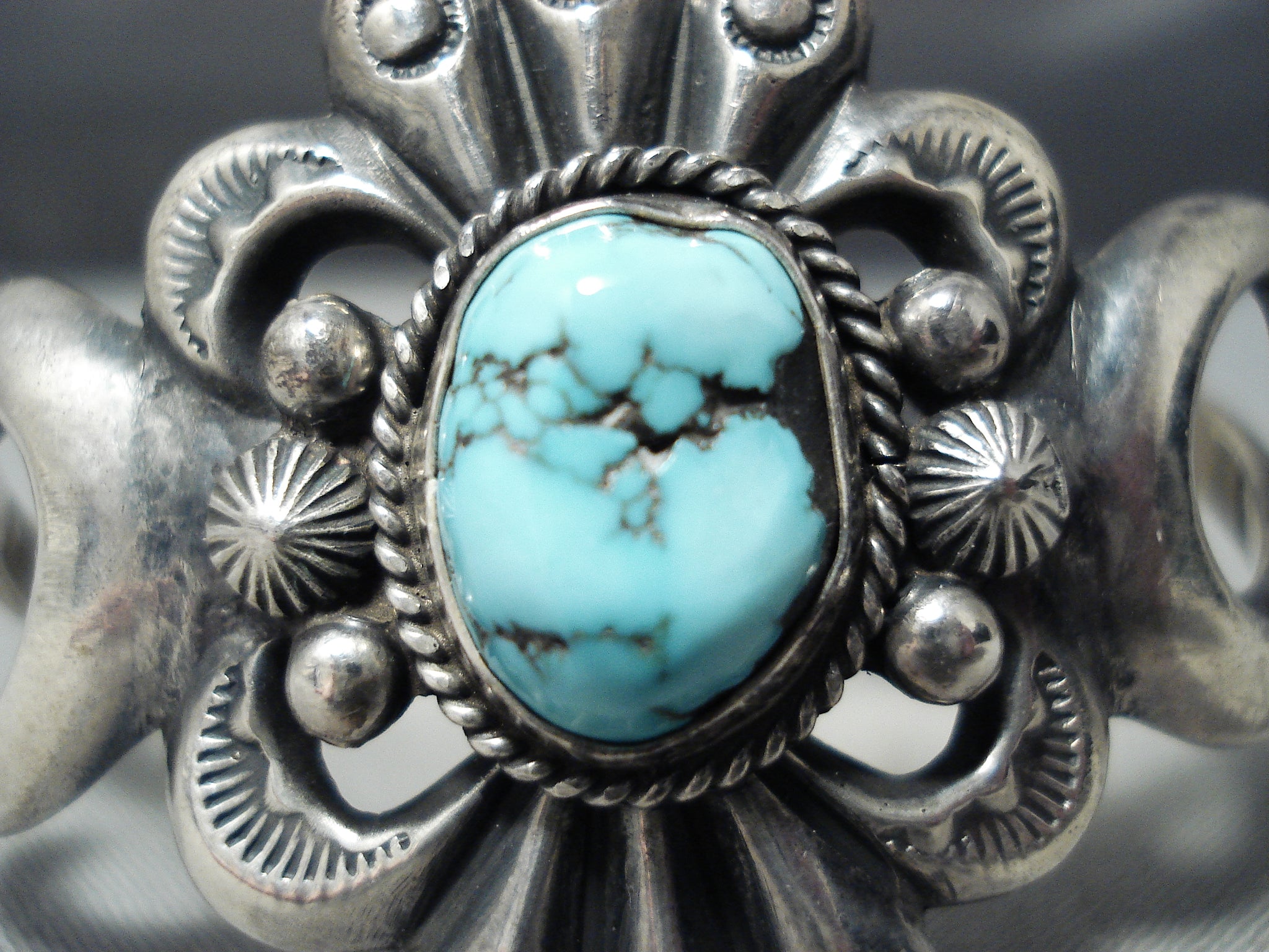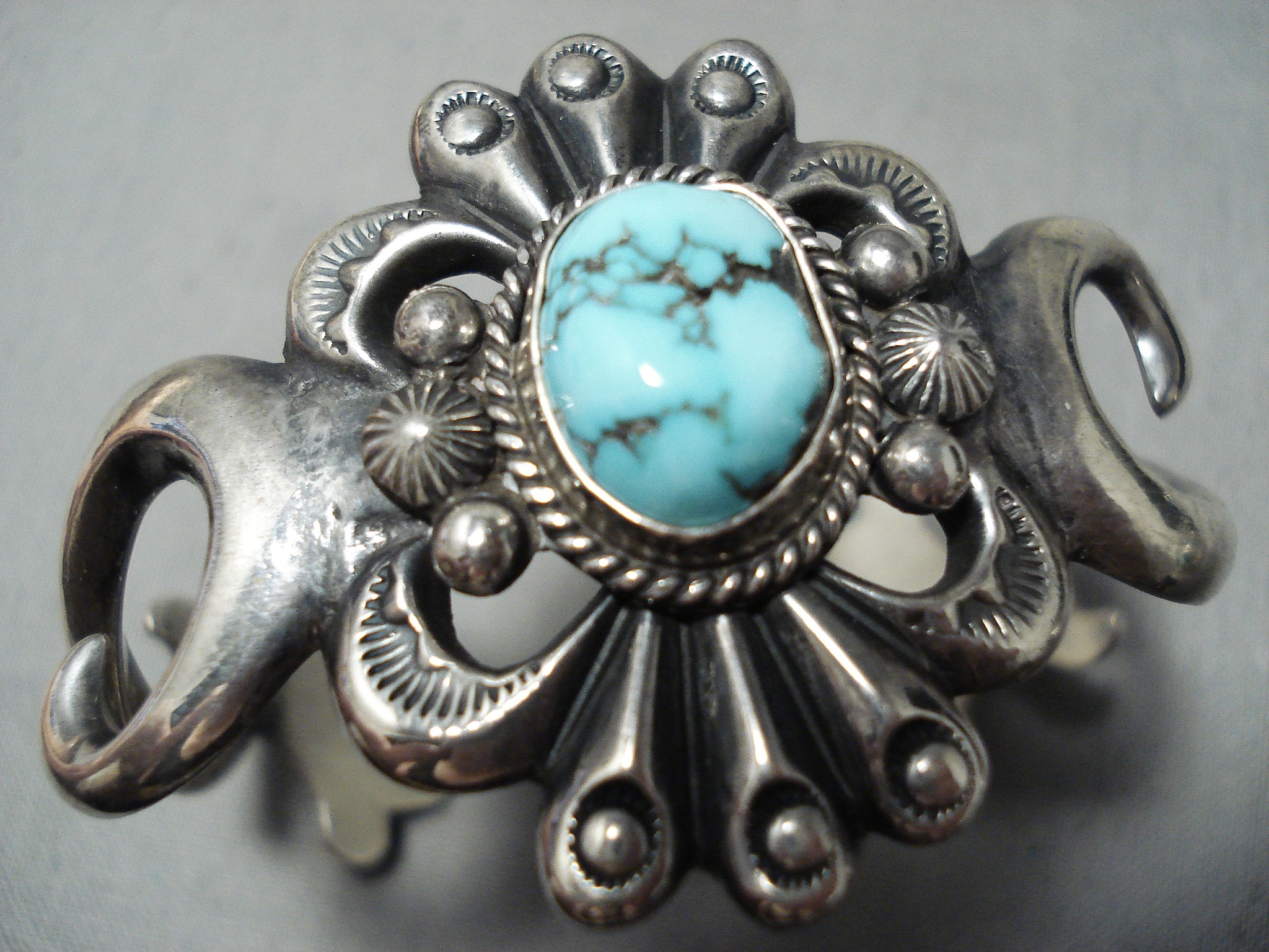 Thick Vintage Native American Navajo Carico Lake Turquoise Sterling Silver Bracelet Cuff