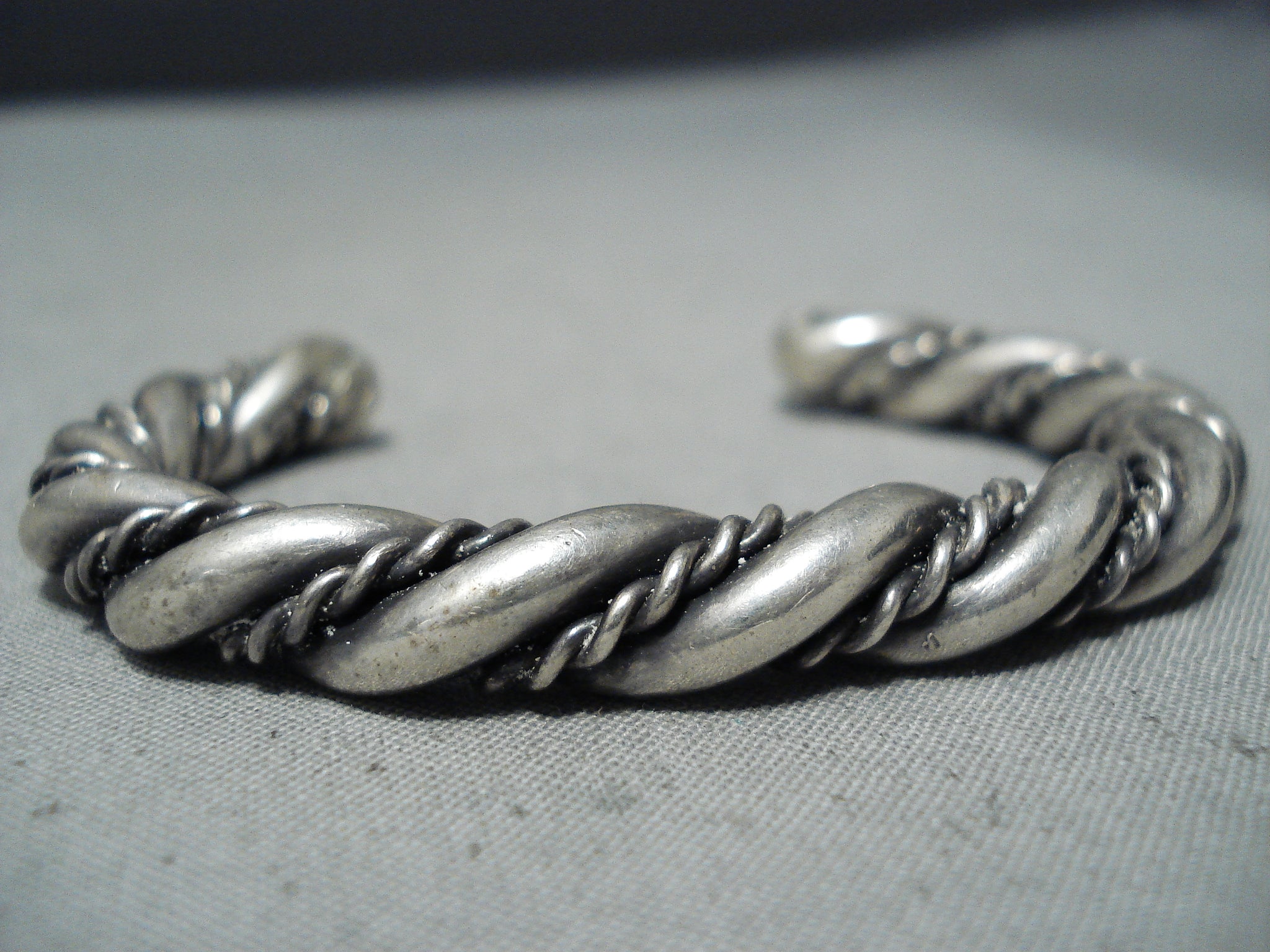 Thick Vintage Native American Navajo Sterling Silver Rope Twist Bracelet
