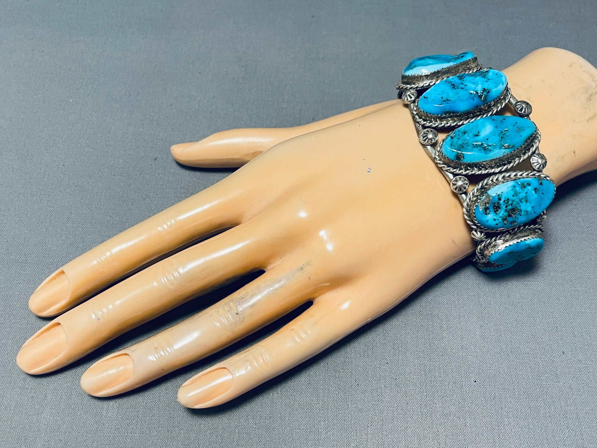 Thicker Authentic Vintage Native American Navajo Turquoise Sterling Silver Bracelet