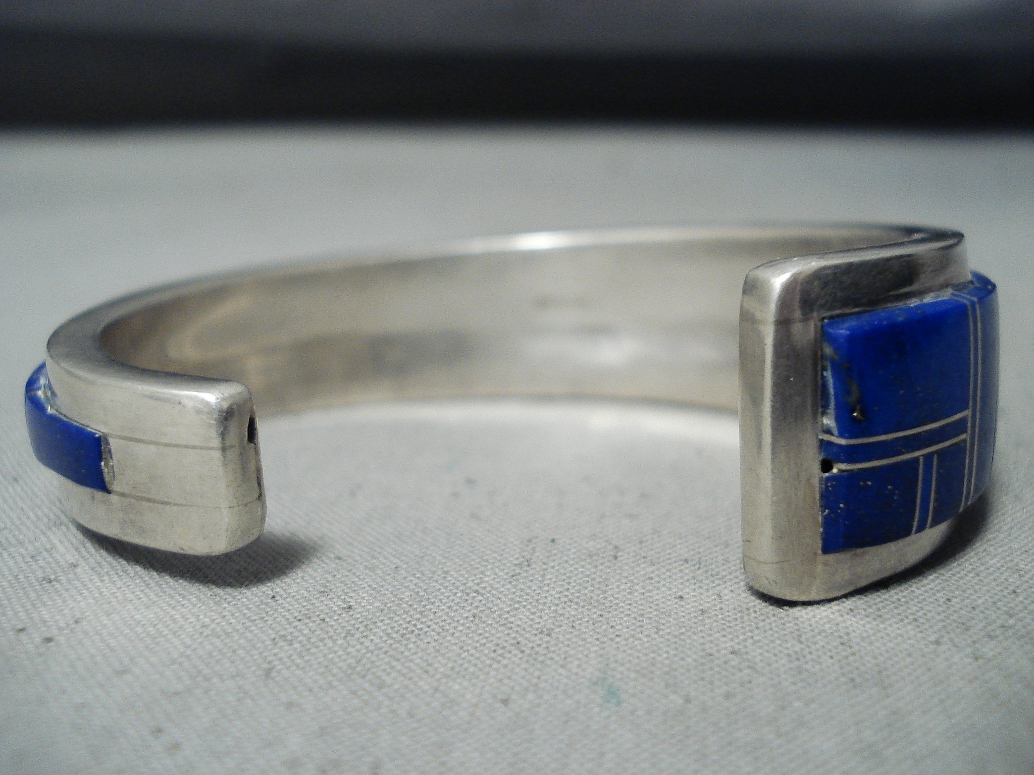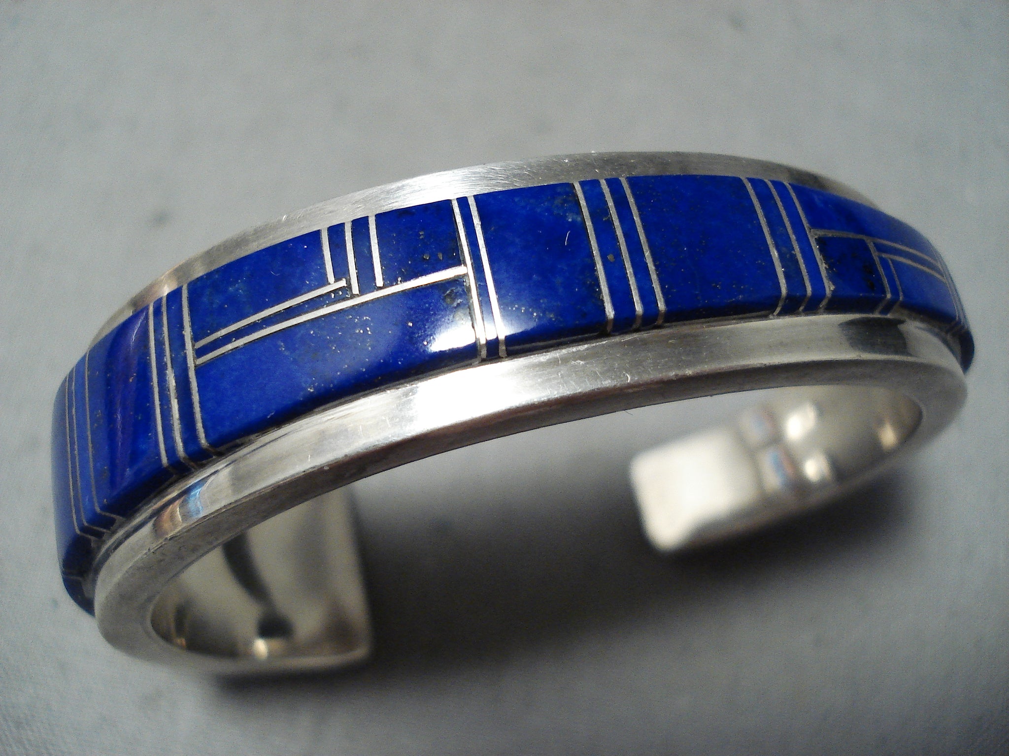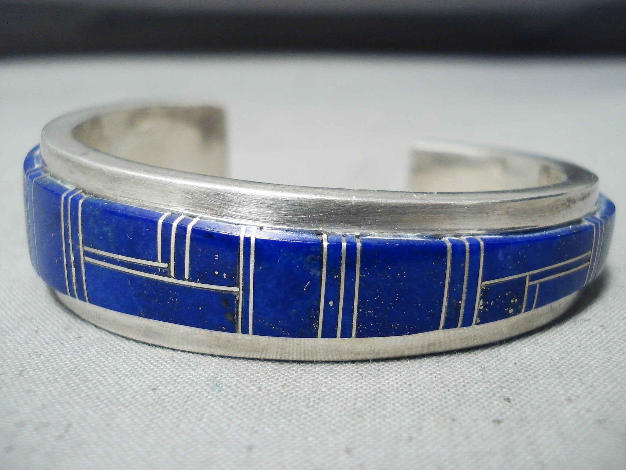 Thicker Heavy Vintage Native American Navajo Lapis Sterling Silver Inlay Bracelet