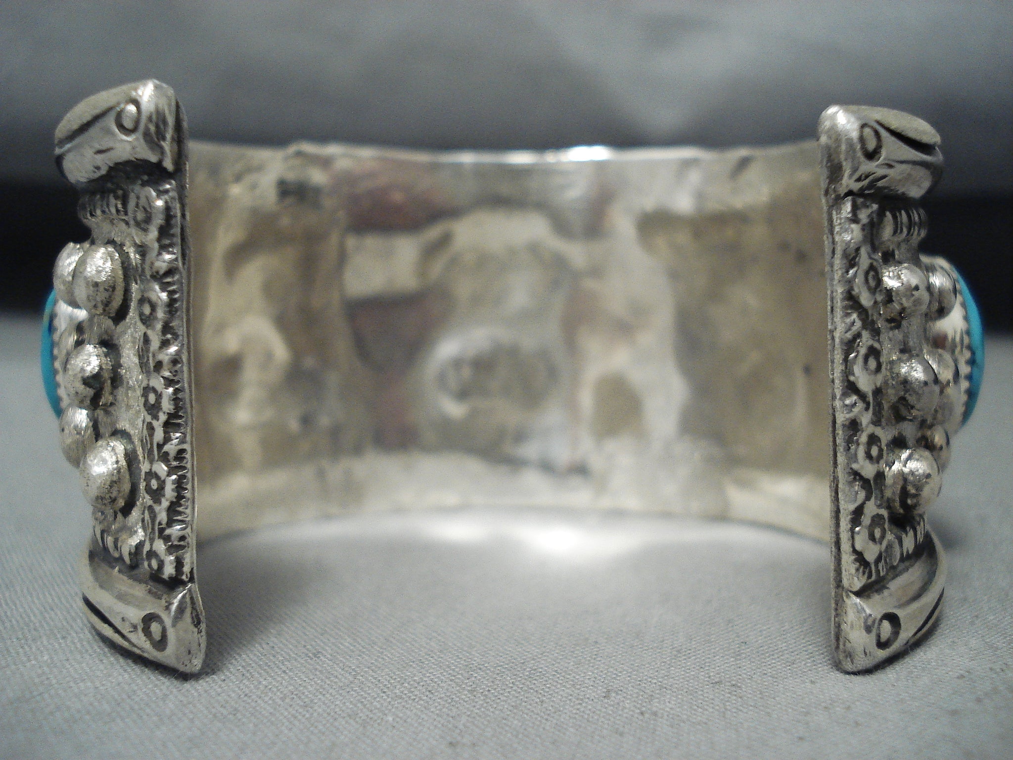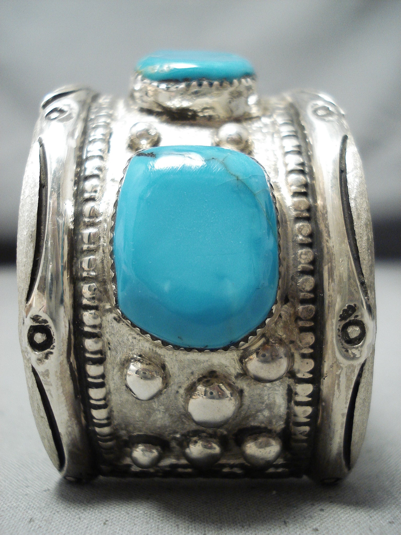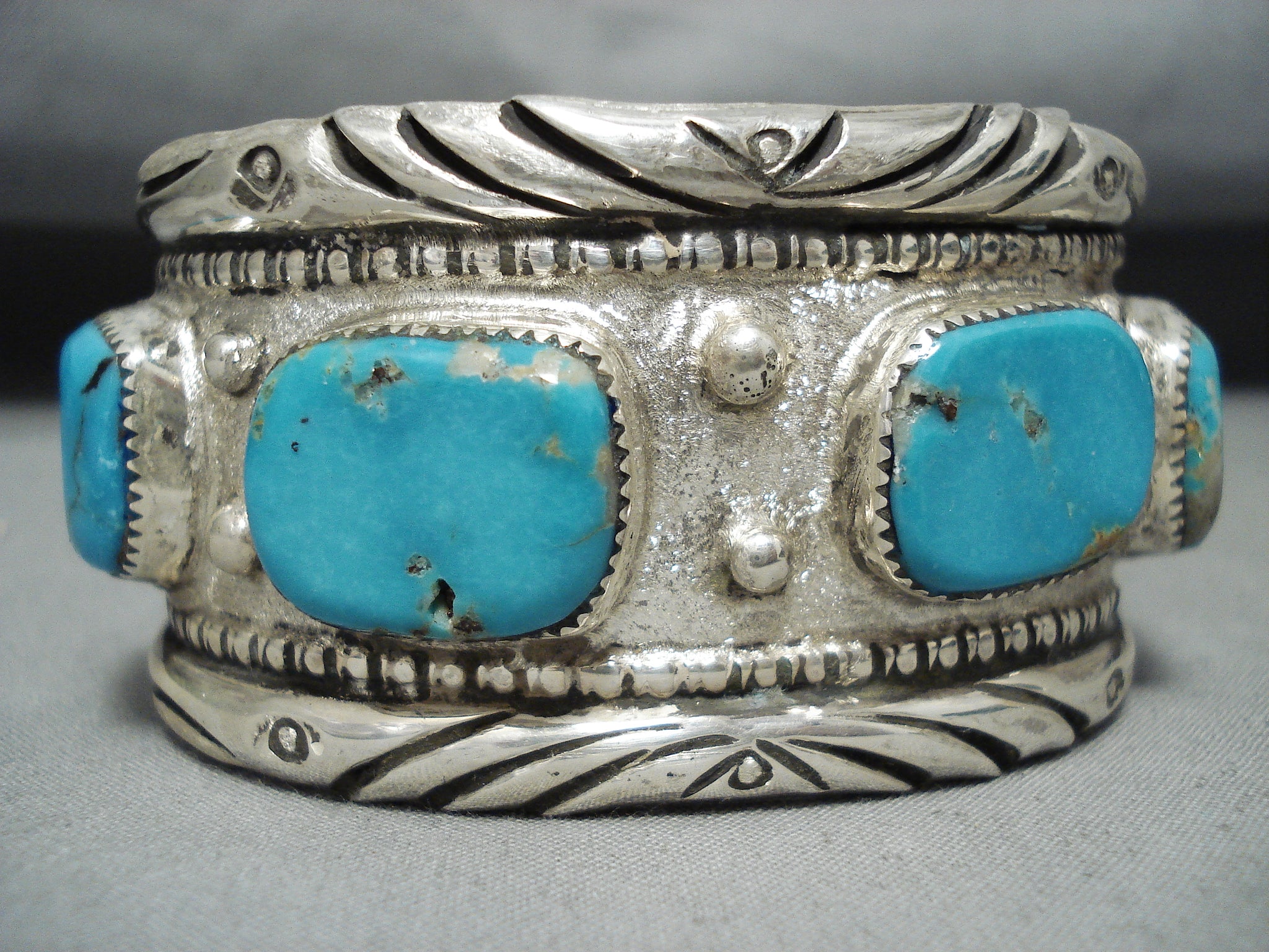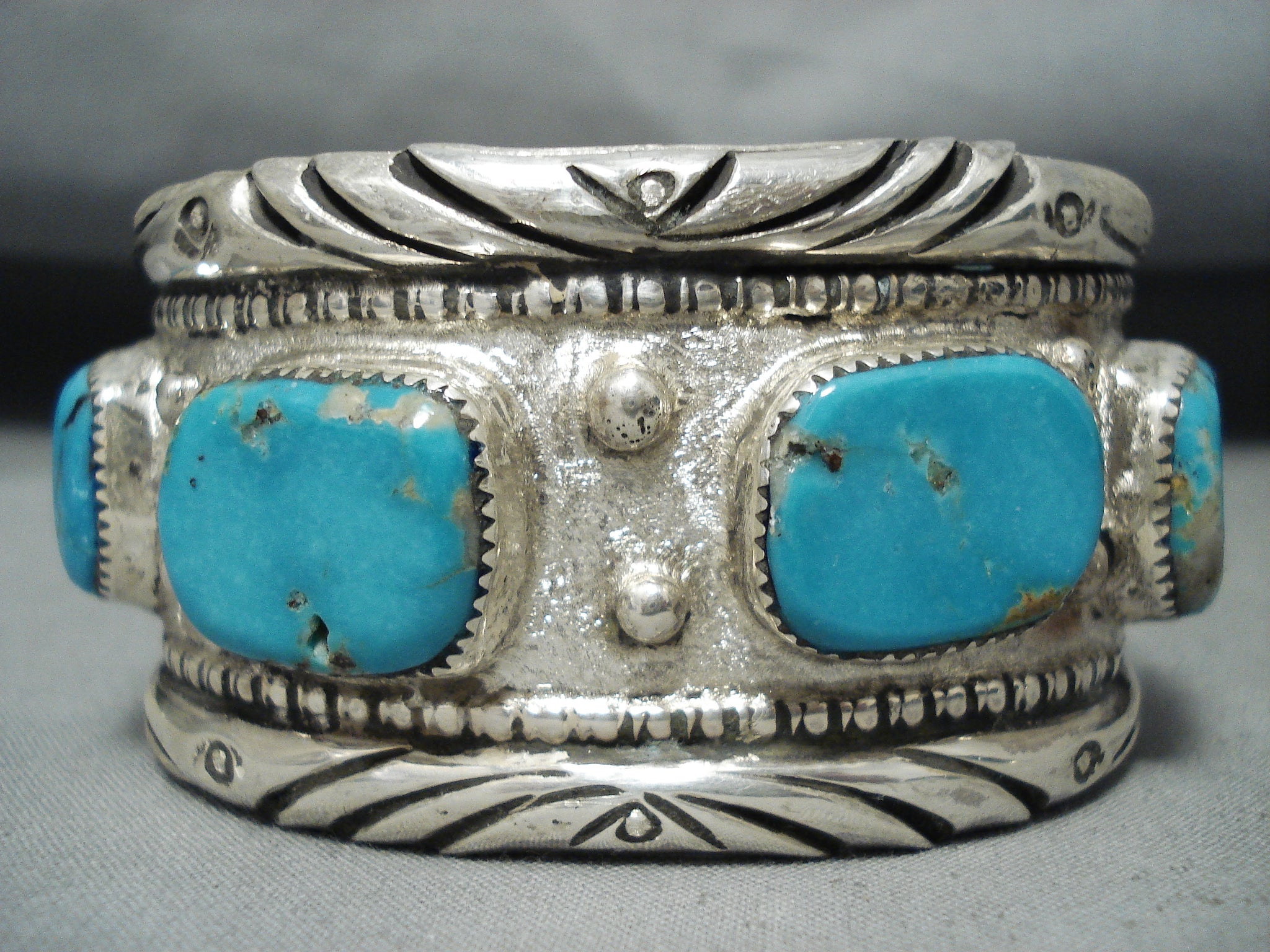 Thicker Vintage Native American Navajo Turquoise Sterling Silver Heavy Bracelet