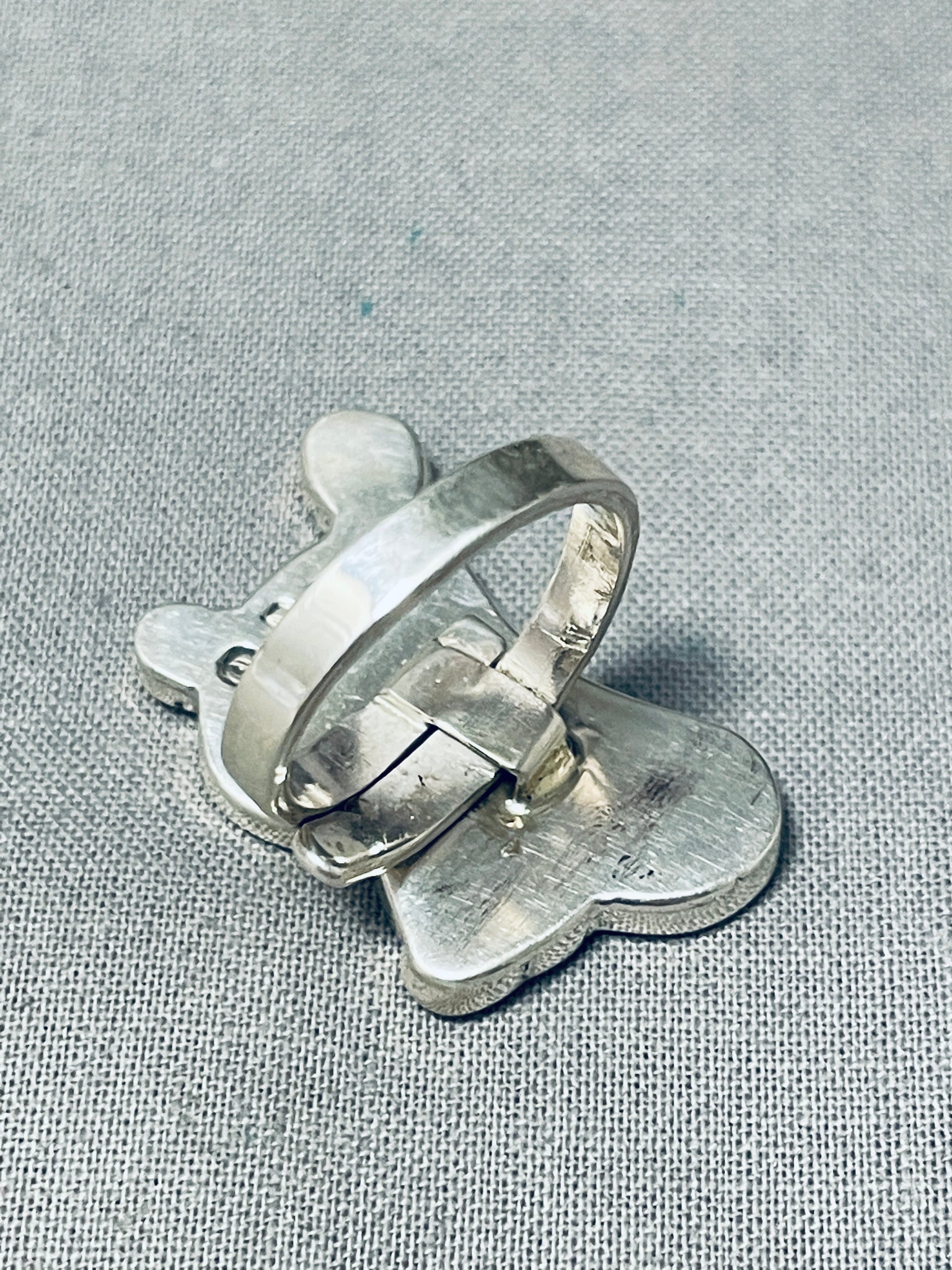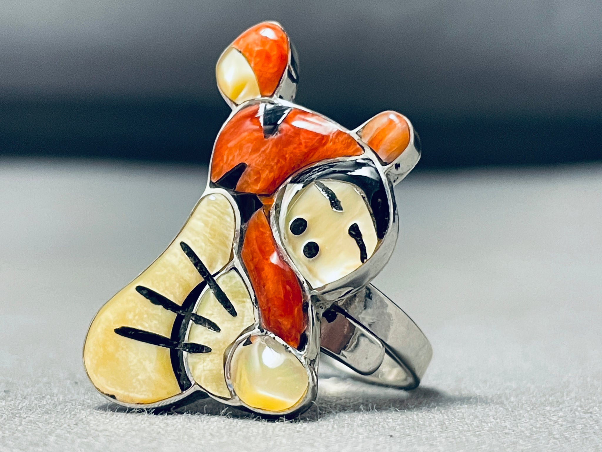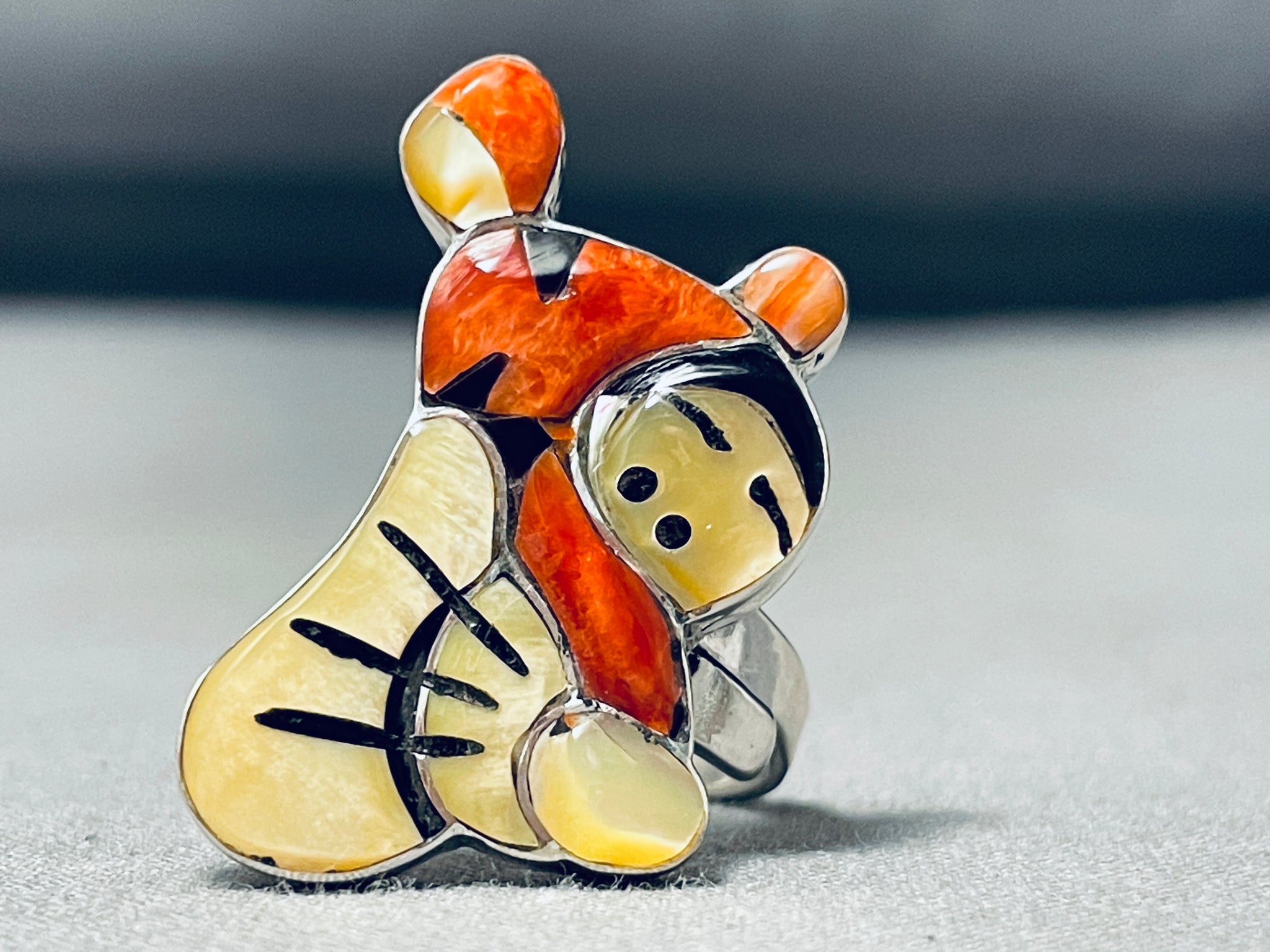 Tigger Native American Zuni Completely Hand Made Sterling Silver Inlay Ring