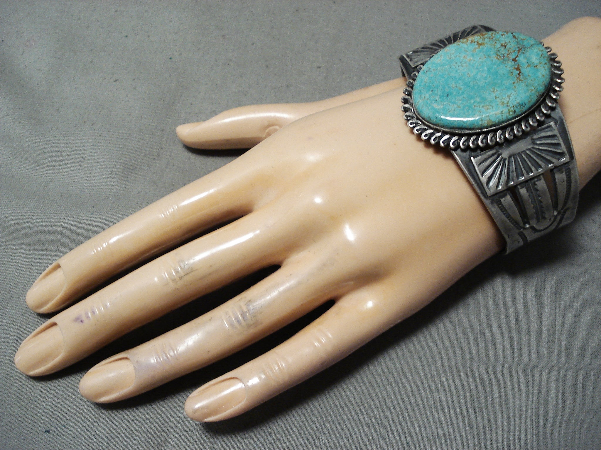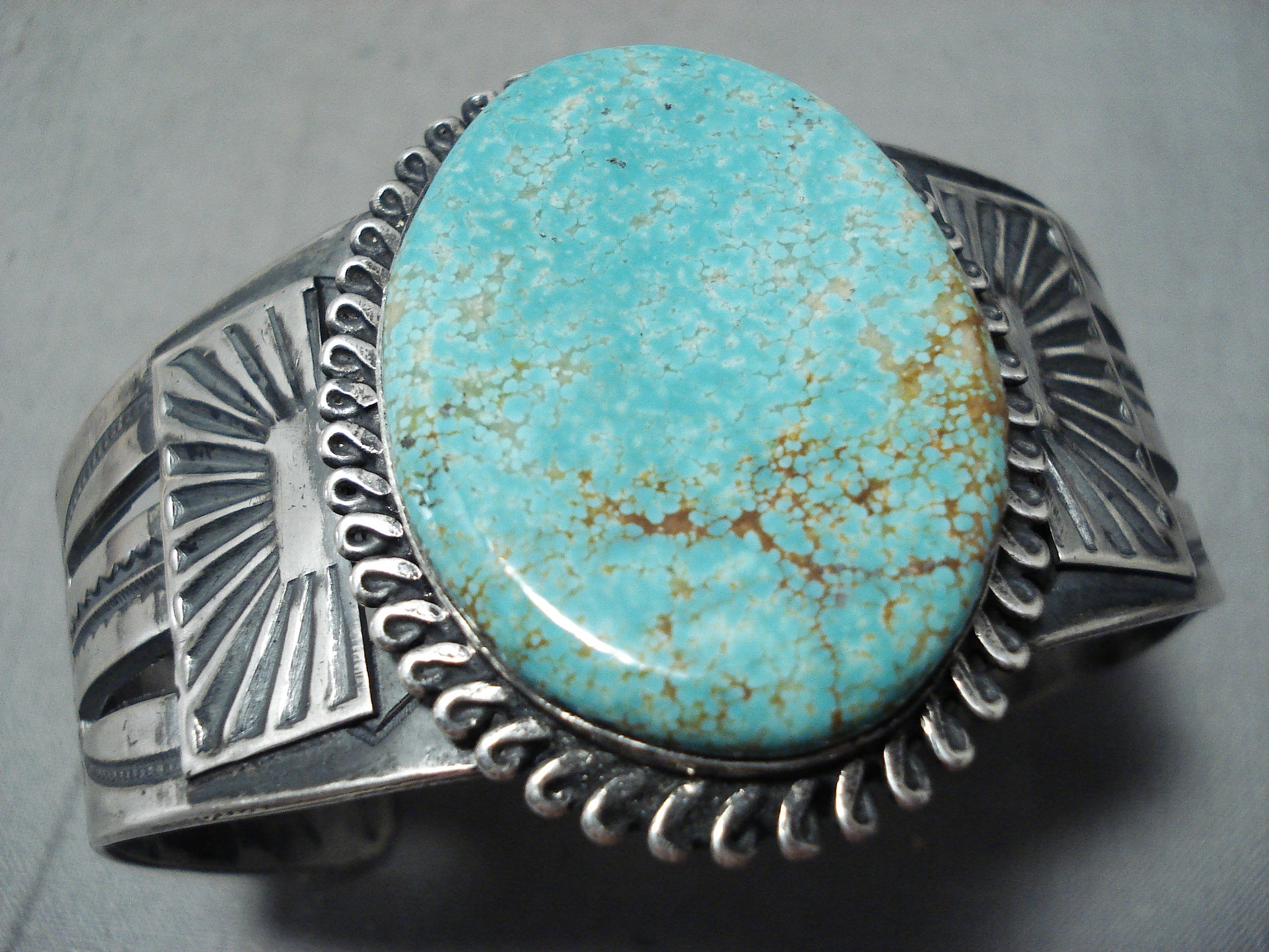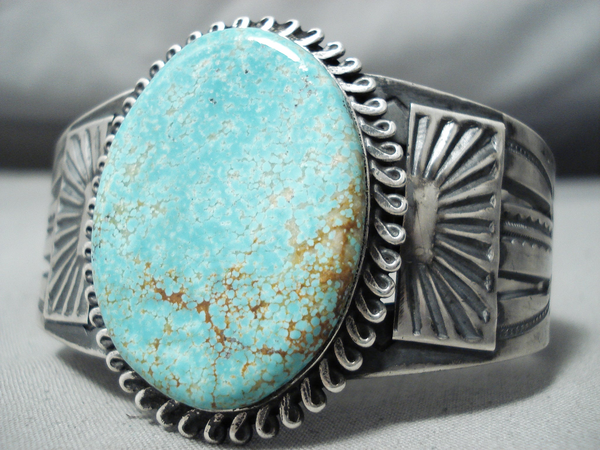 Tight #8 Turquoise Vintage Native American Navajo Sterling Silver Bracelet