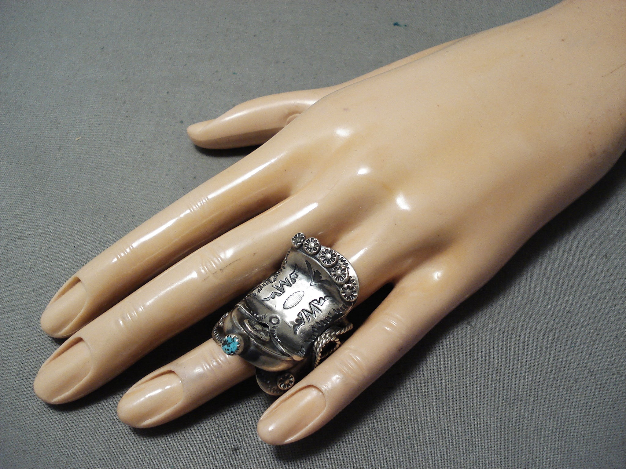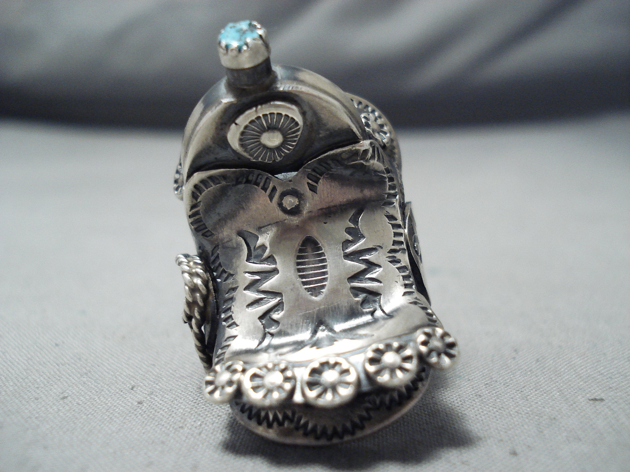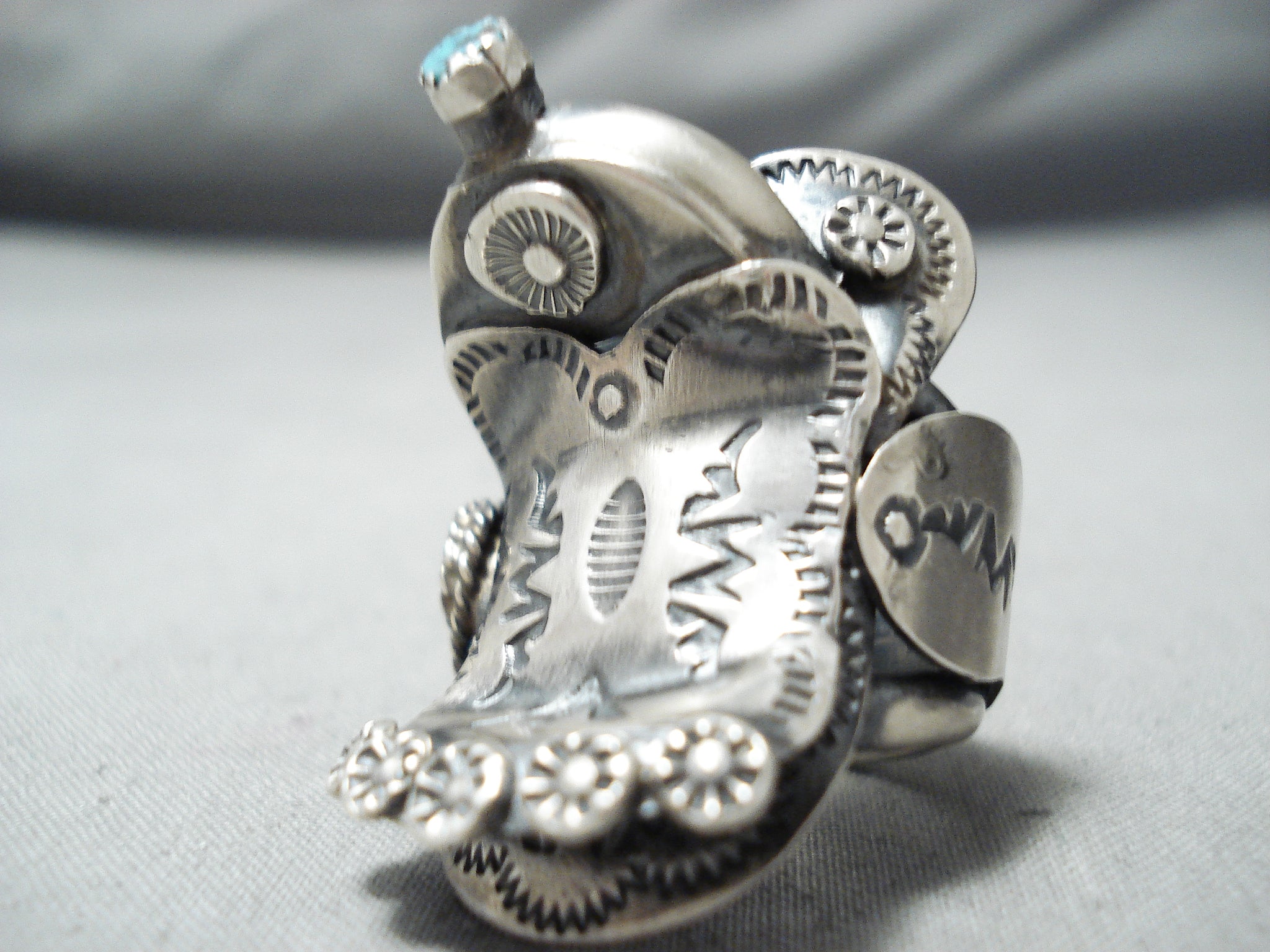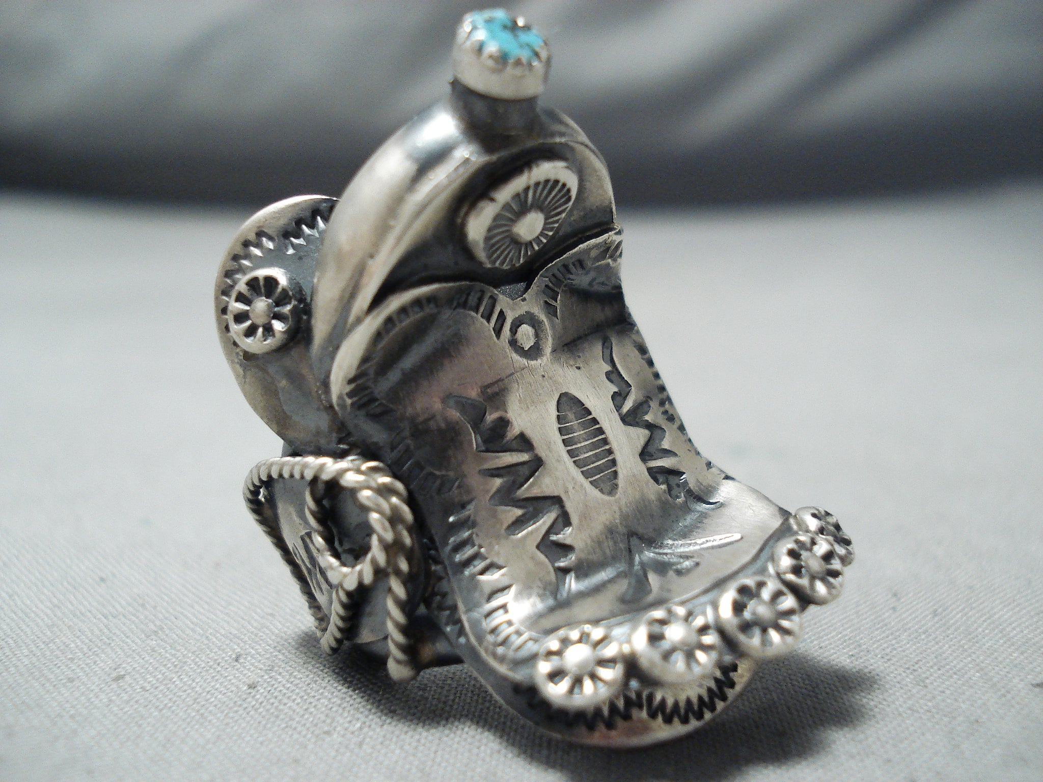 Tim Yazzie Navajo Sleeping Beauty Sterling Silver Saddle Ring Native American