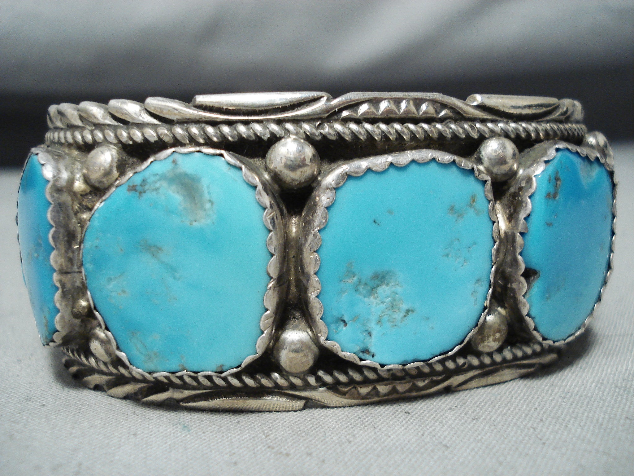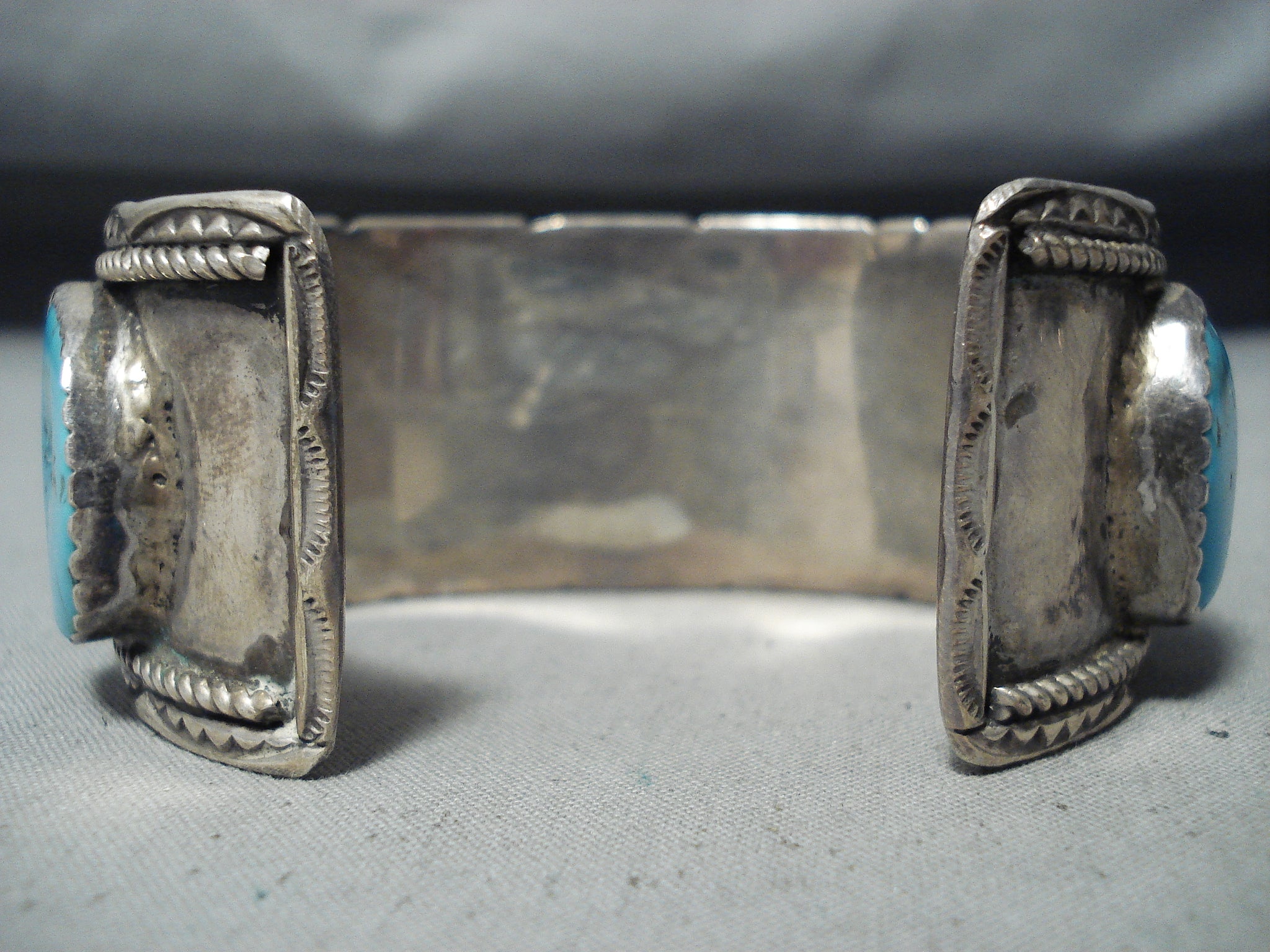 Tom Tso Vintage Native American Navajo Blue Gem Turquoise Sterling Silver Bracelet Old