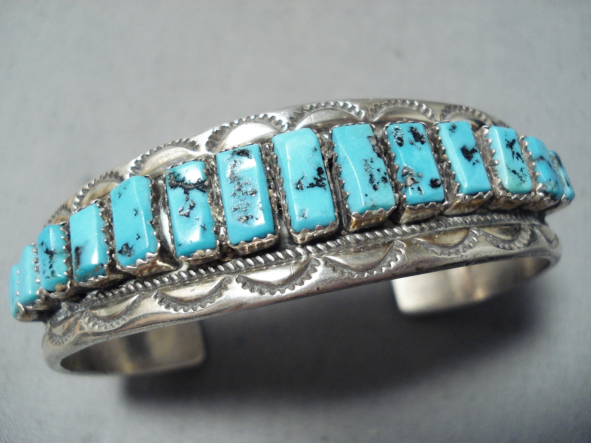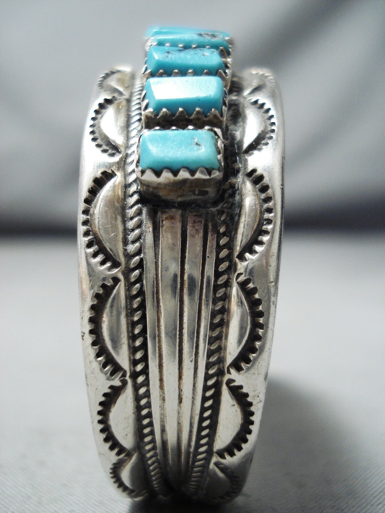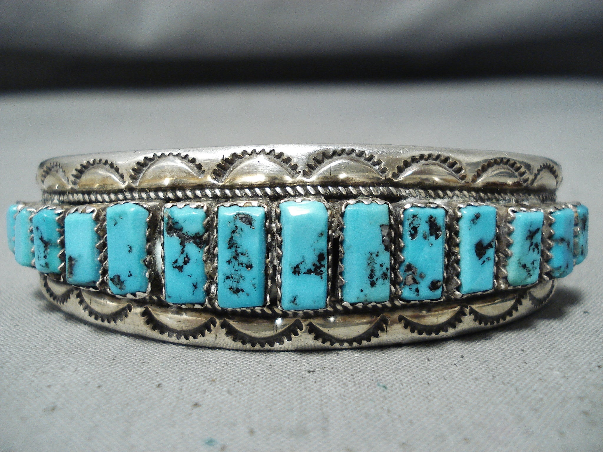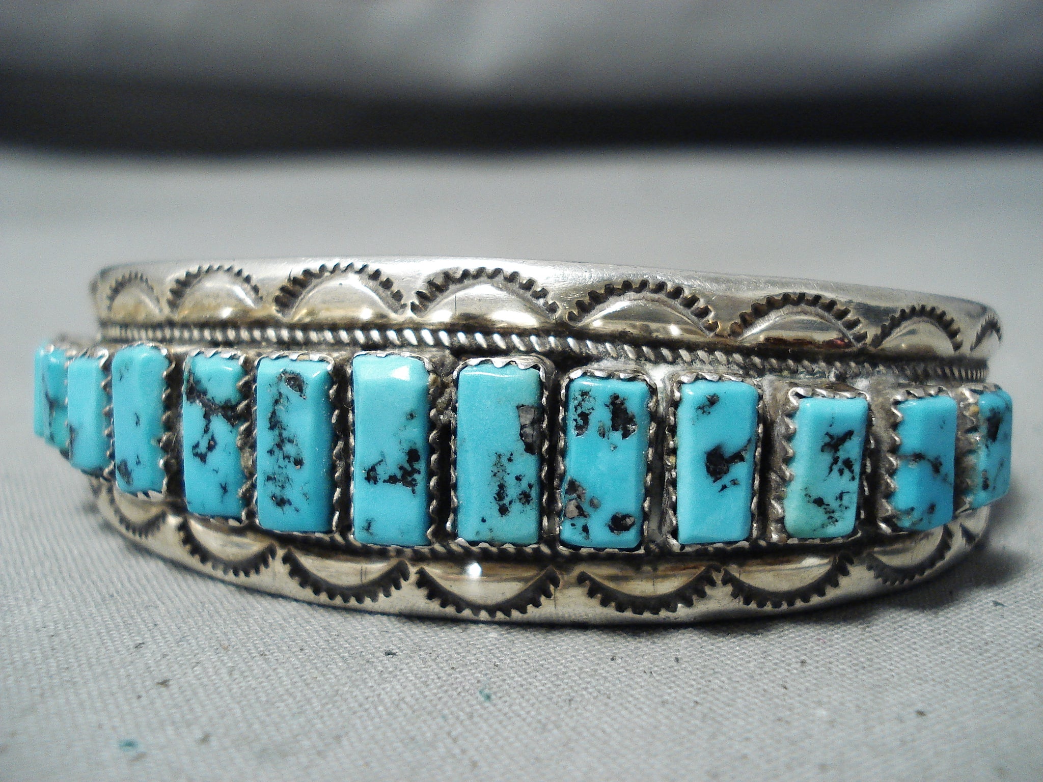 Tom Tso Vintage Native American Navajo Kingman Turquoise Sterling Silver Bracelet Old
