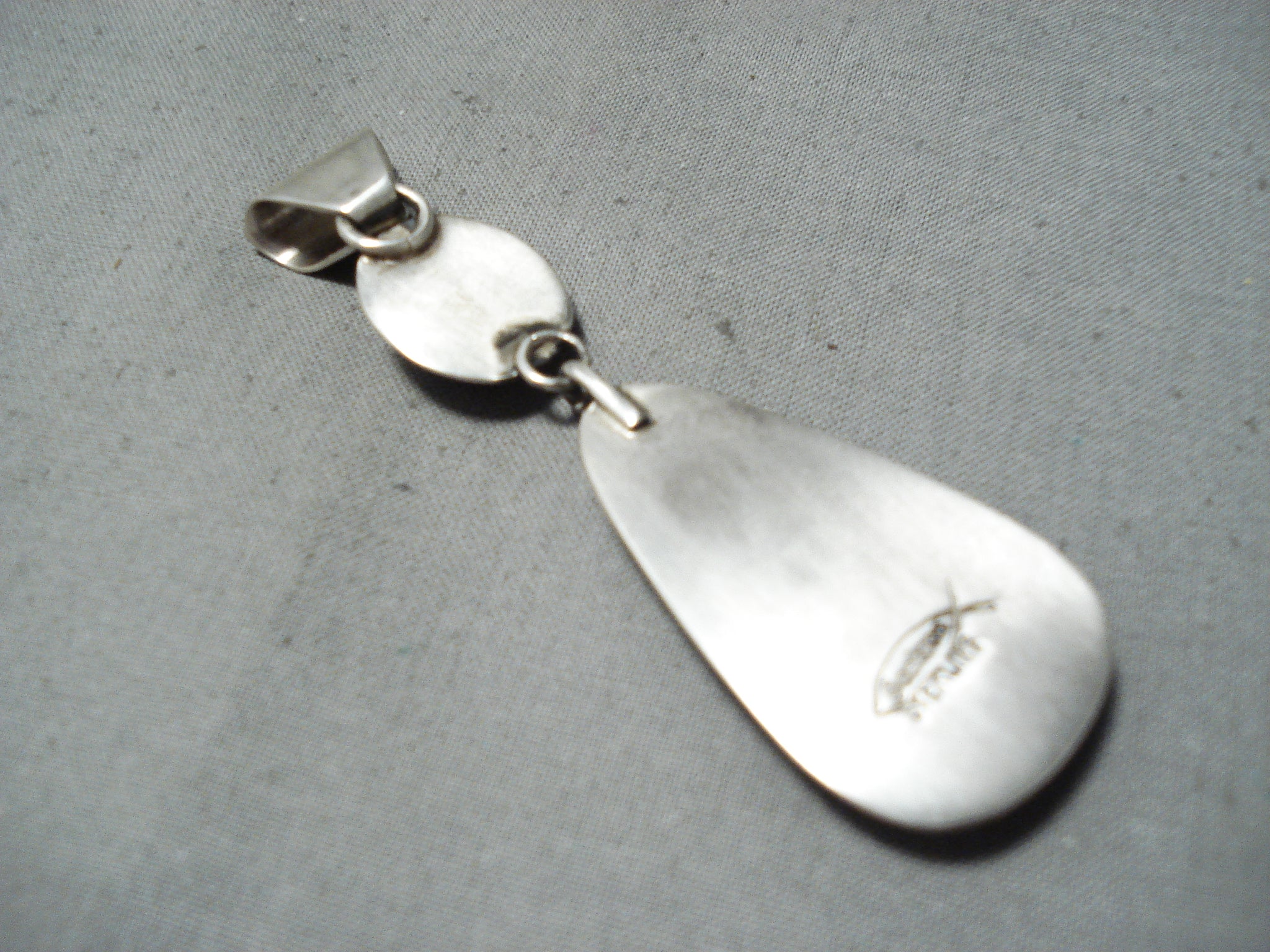 Tommy Jackson Vintage Native American Navajo Damale Turquoise Sterling Silver Pendant Old