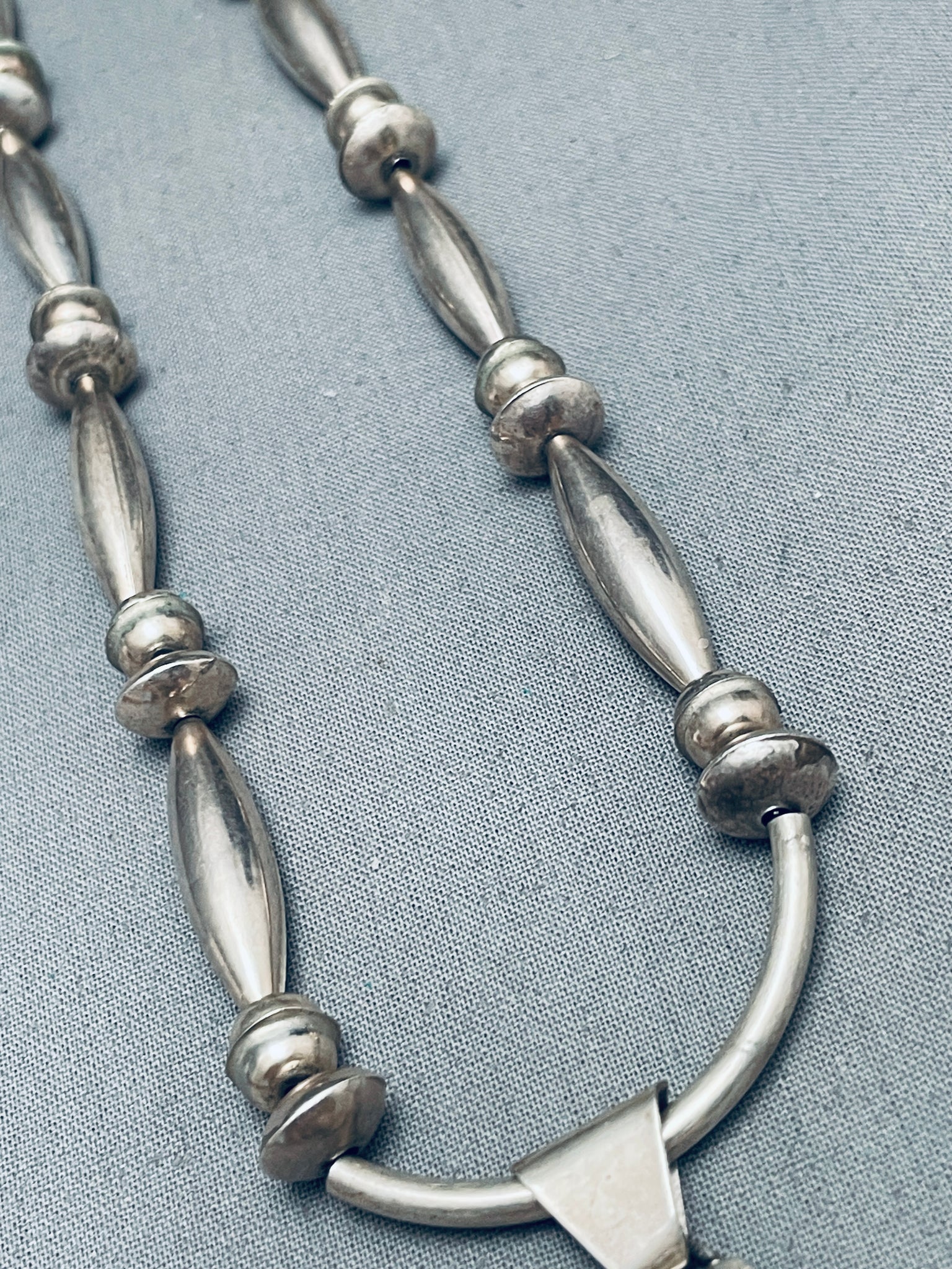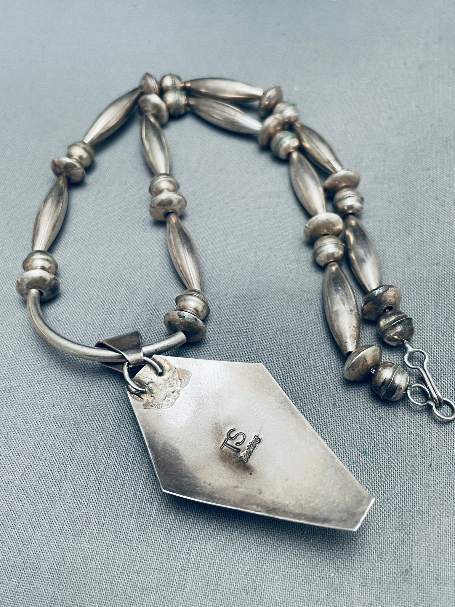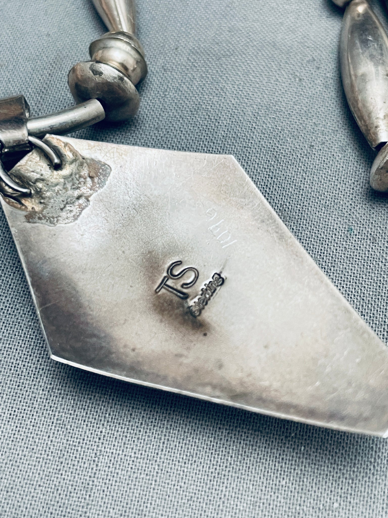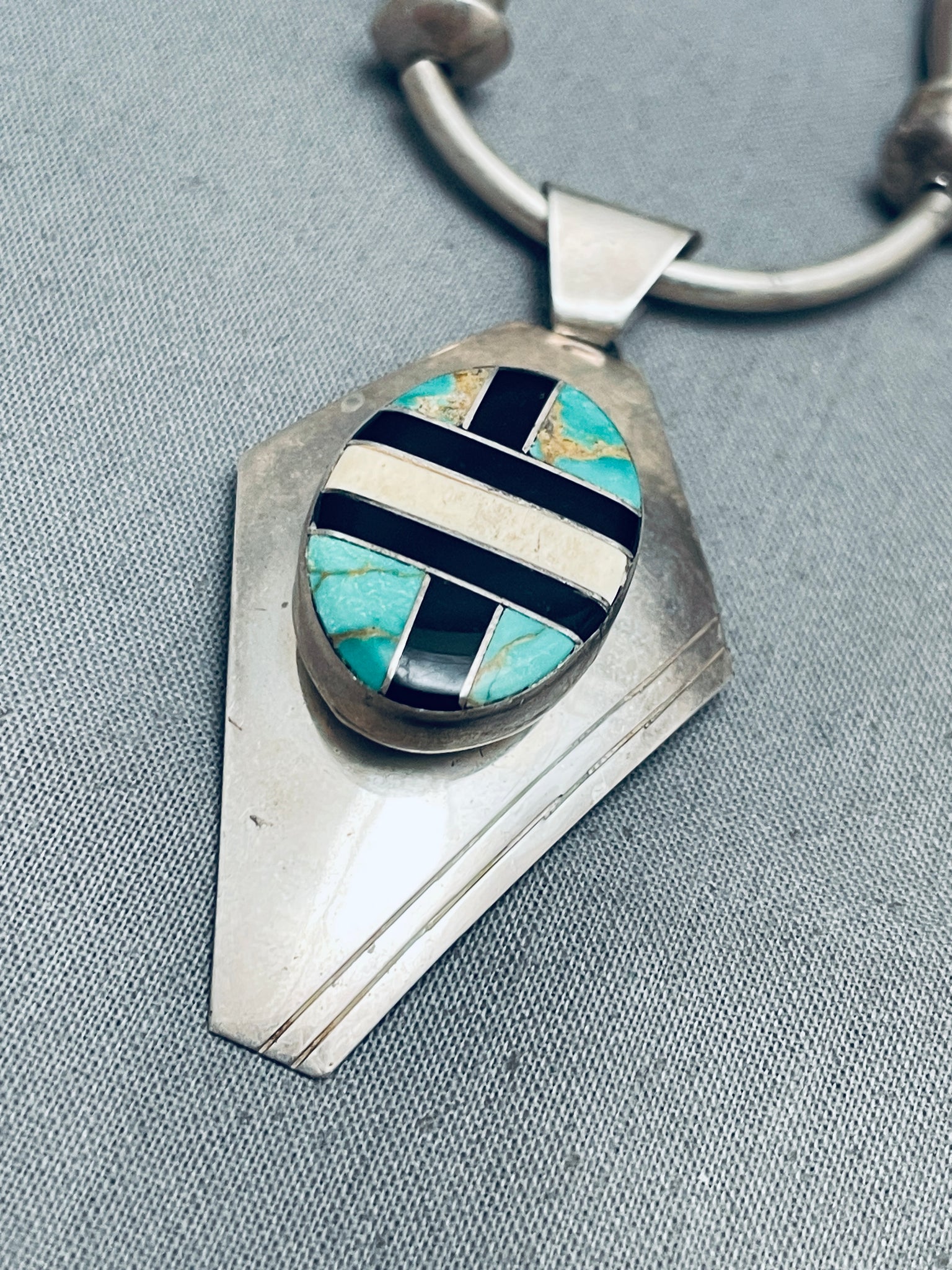 Tommy Sam Vintage Native American Navajo Turquoise Inlay Sterling Silver Necklace