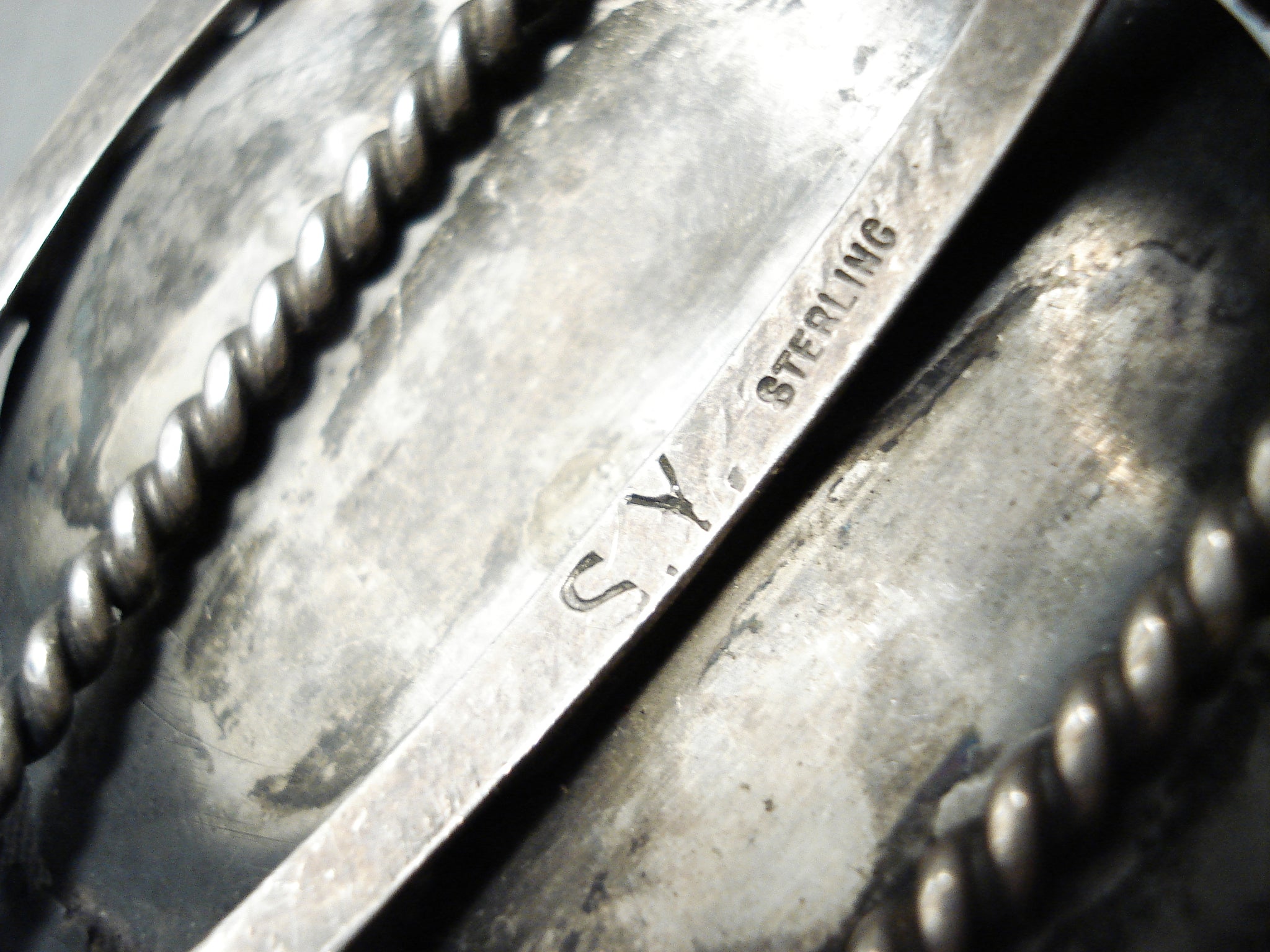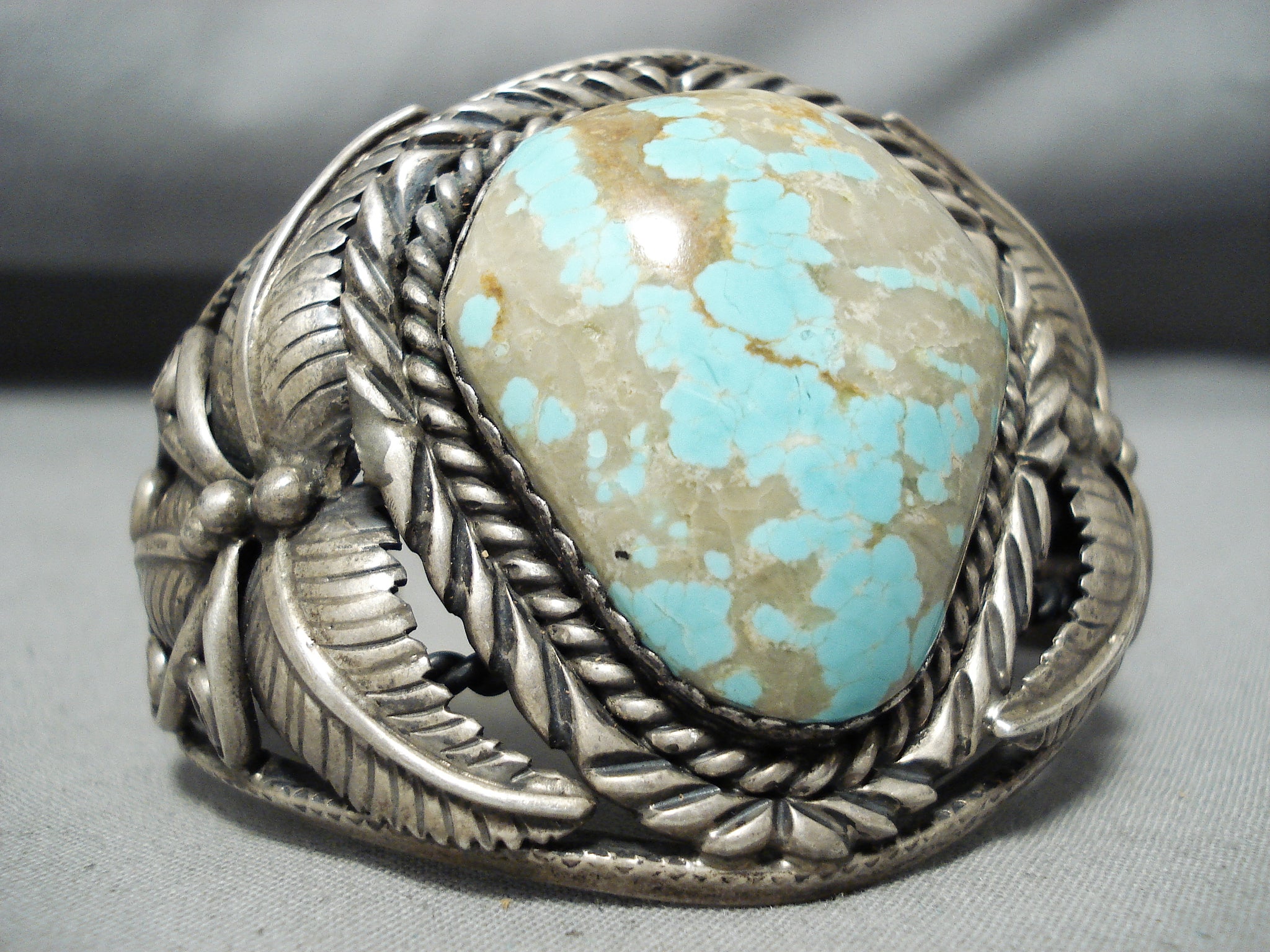 Tony Skeets Vintage Native American Navajo #8 Turquoise Sterling Silver Leaf Bracelet