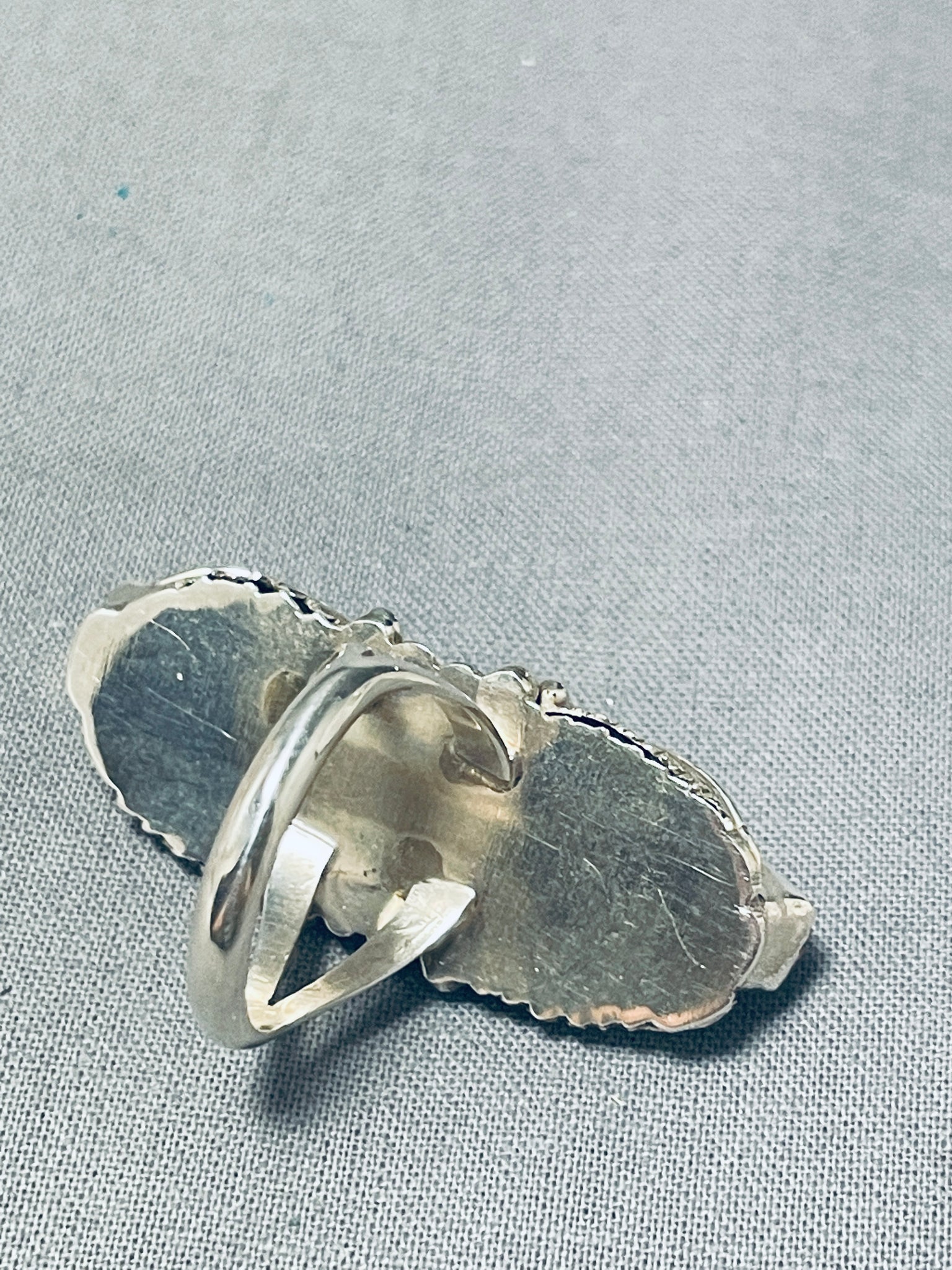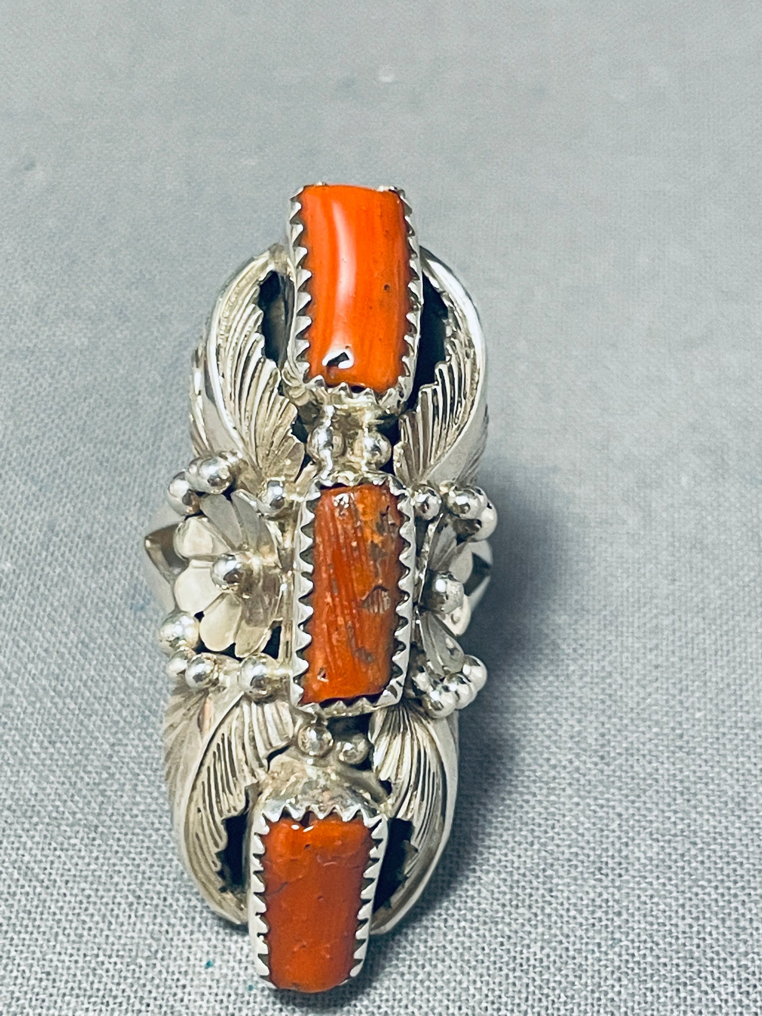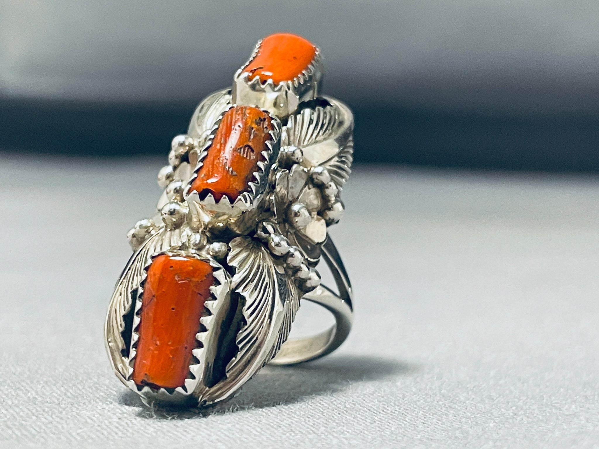 Towering Native American Navajo Coral Sterling Silver Leaf Ring