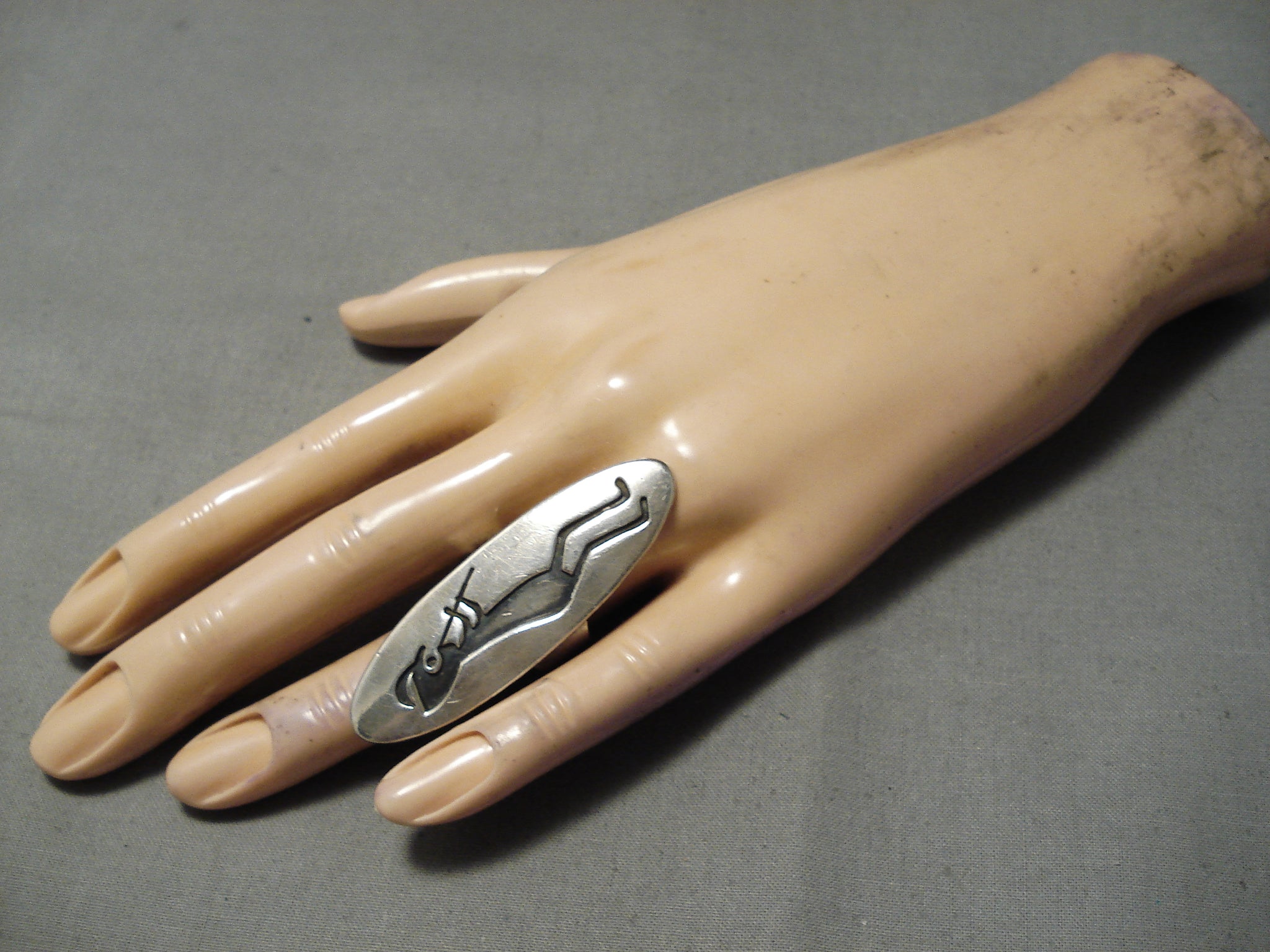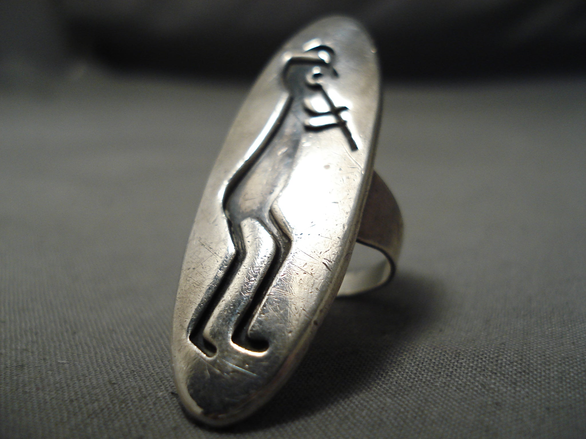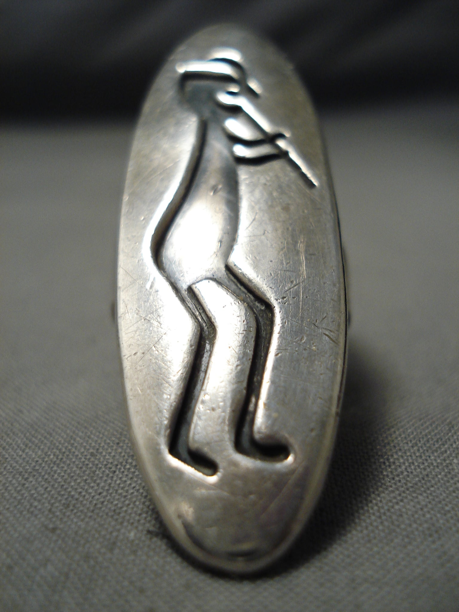 Towering Vintage Hopi Native American Navajo Flute Man Sterling Silver Ring Old