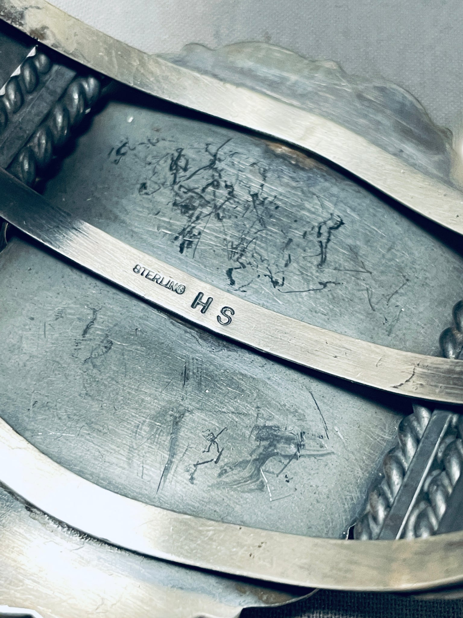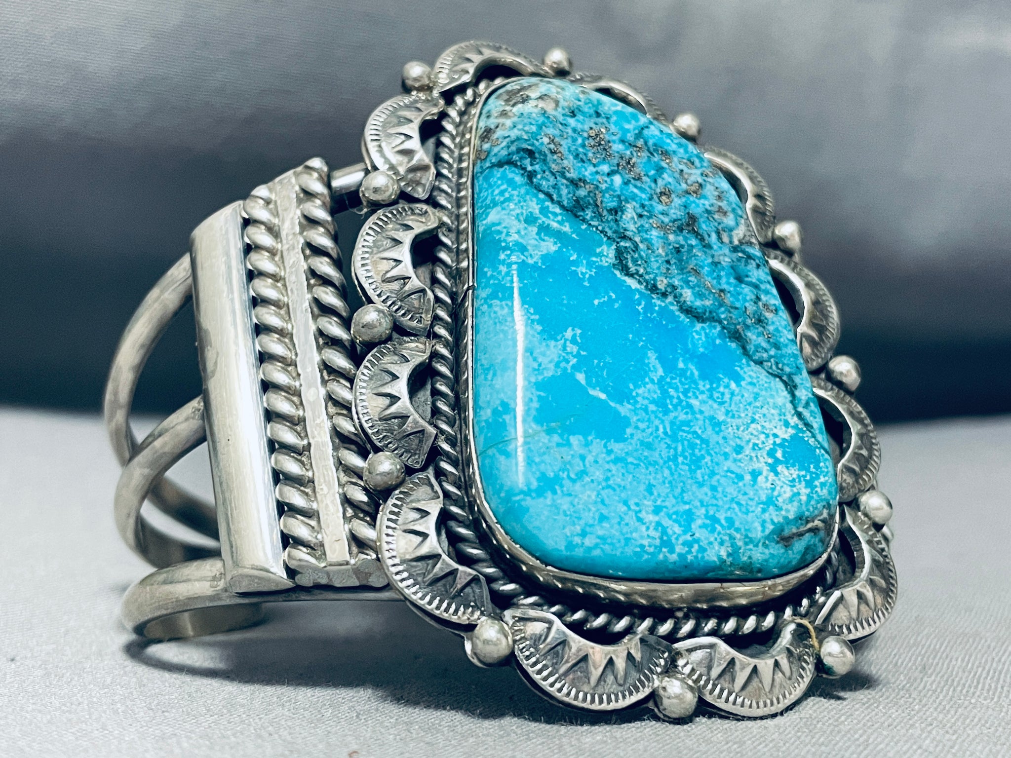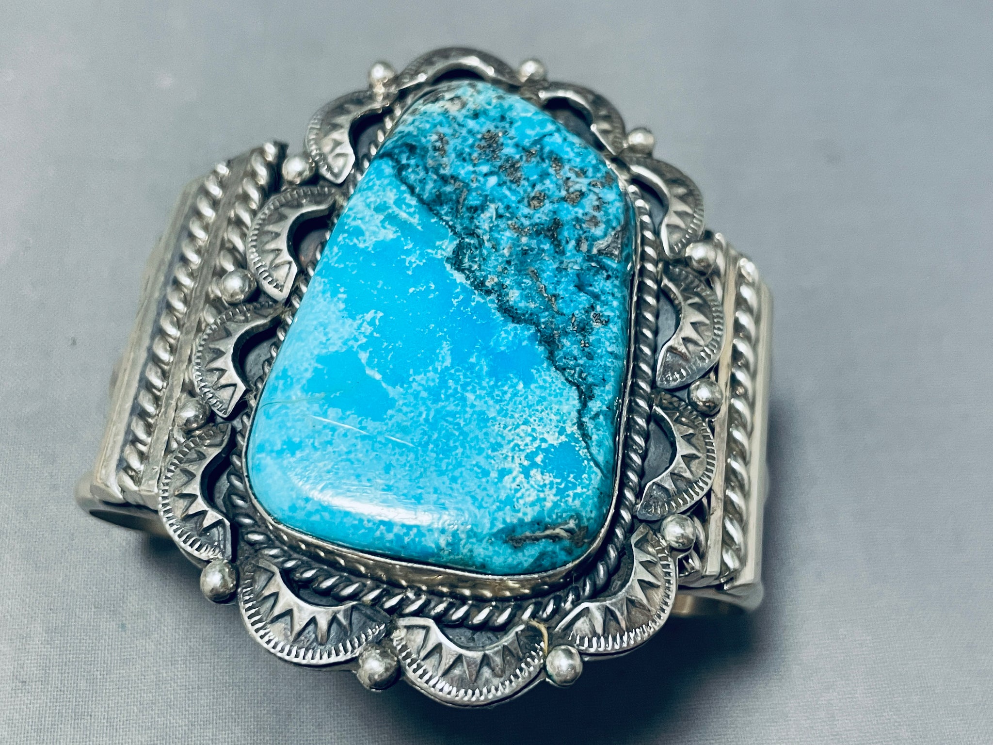 Towering Vintage Native American Navajo Blue Diamond Turquoise Sterling Silver Bracelet