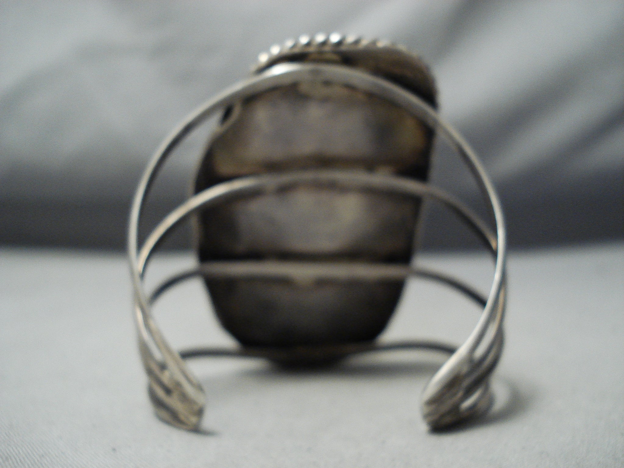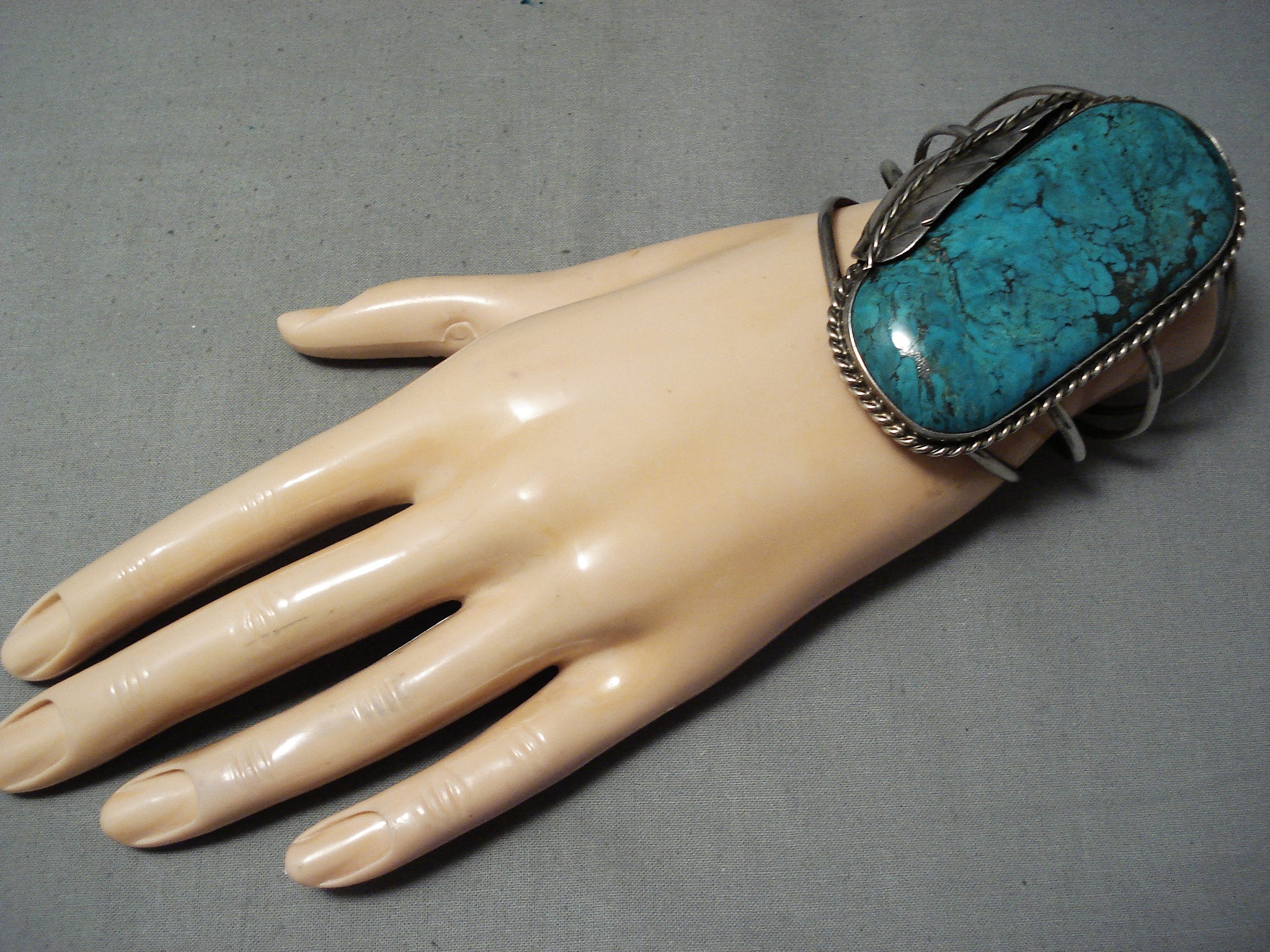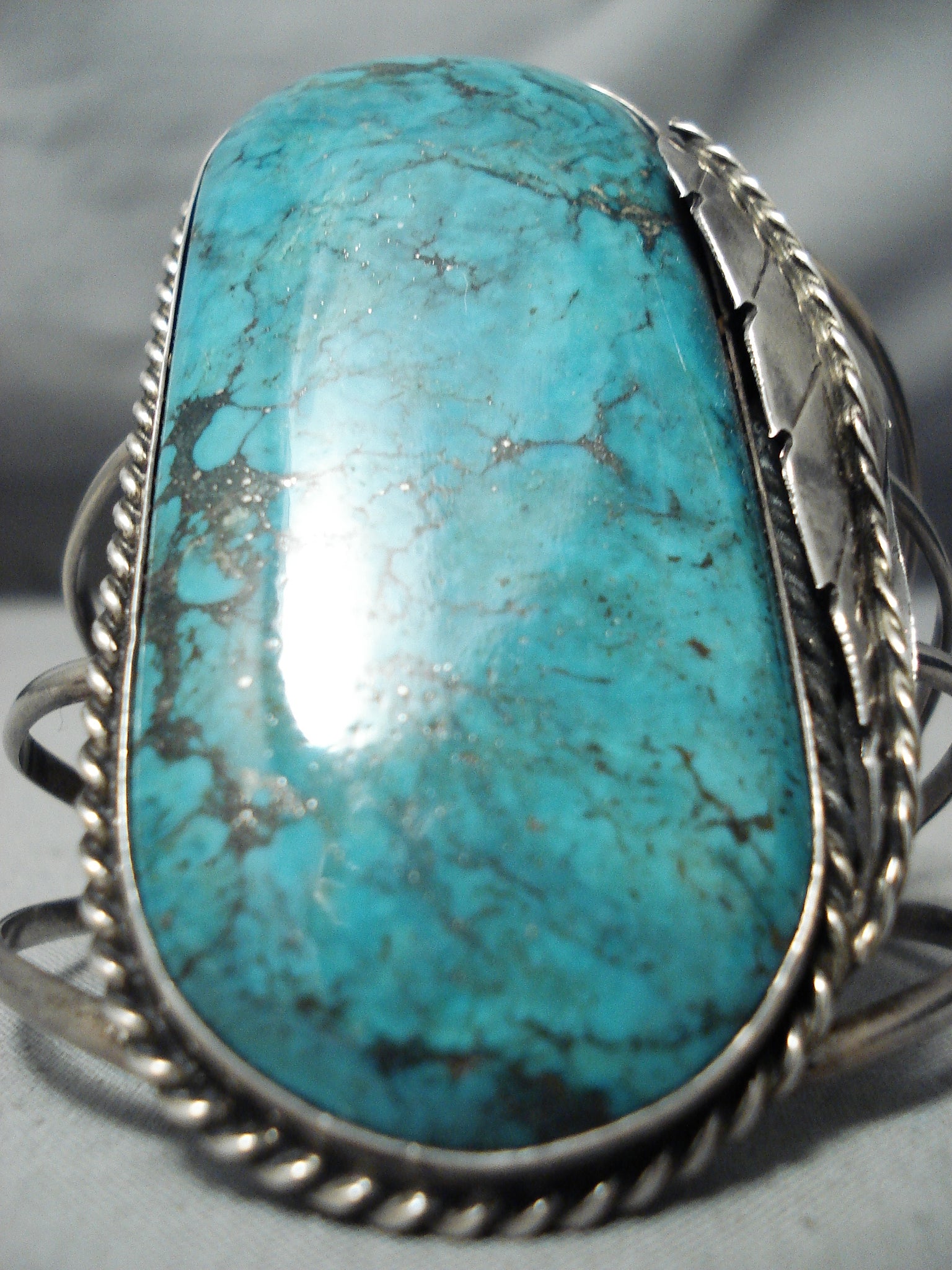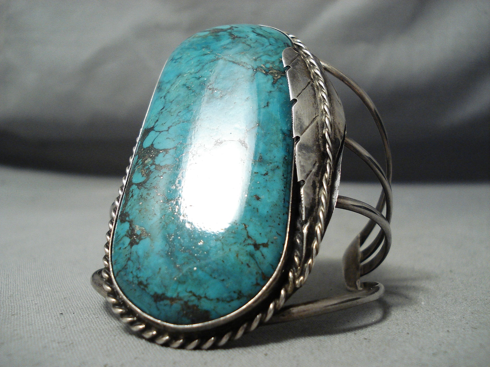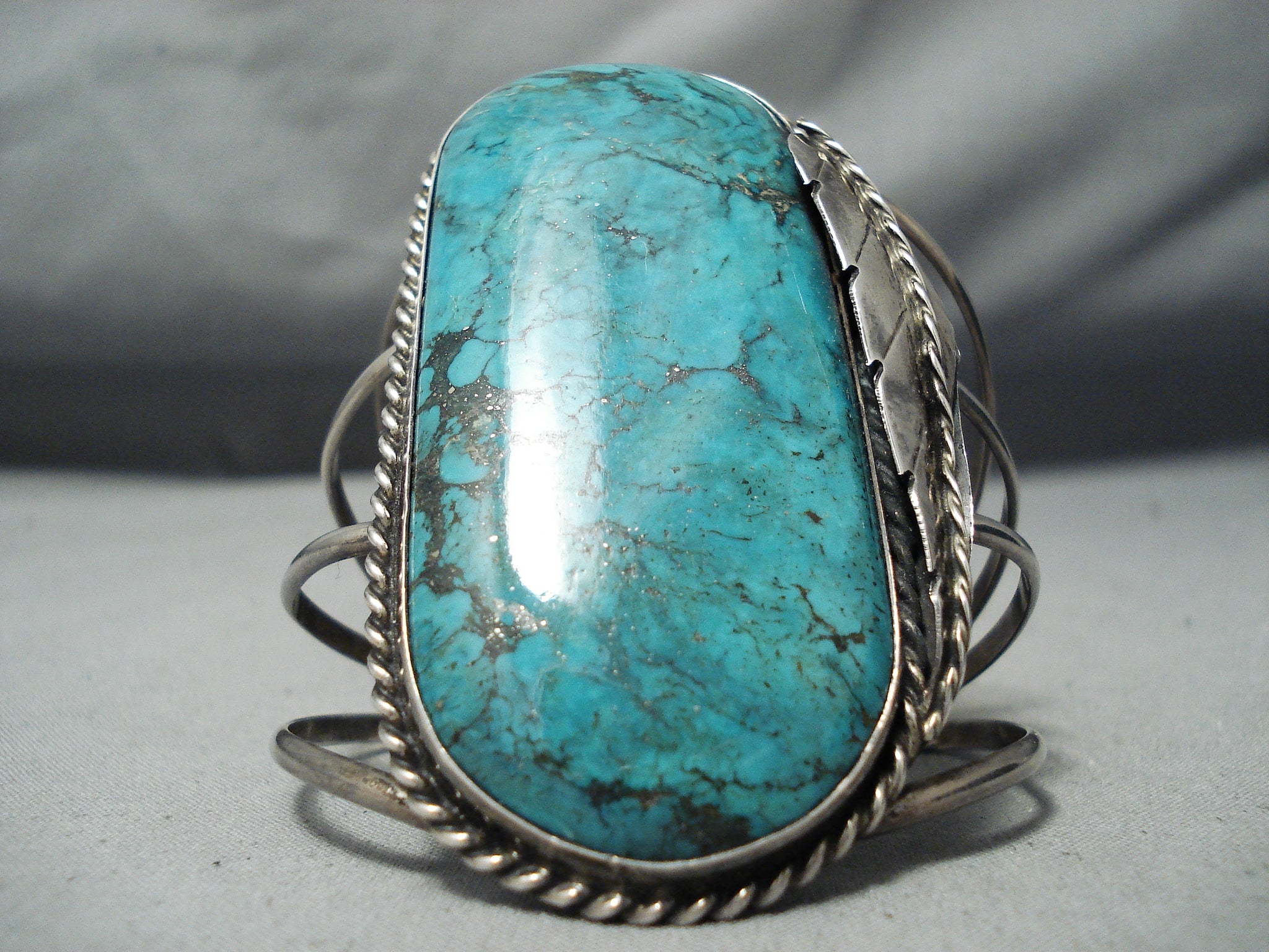 Towering Vintage Native American Navajo Blue Diamond Turquoise Sterling Silver Bracelet Old