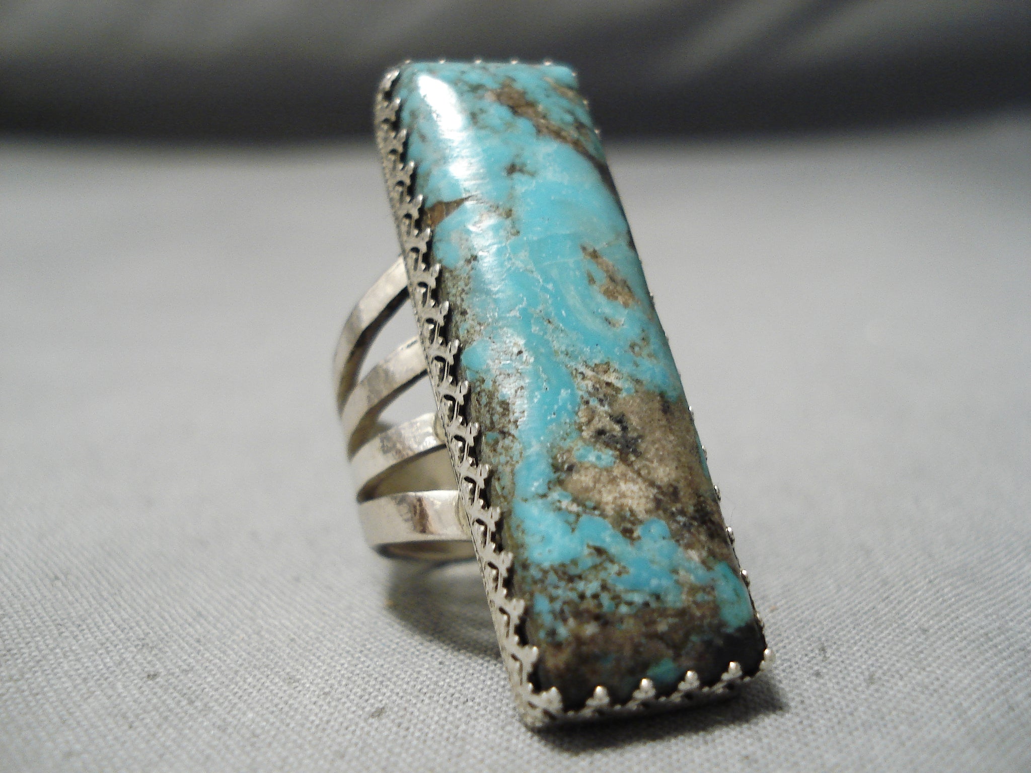 Towering Vintage San Felipe Turquoise Sterling Silver Ring