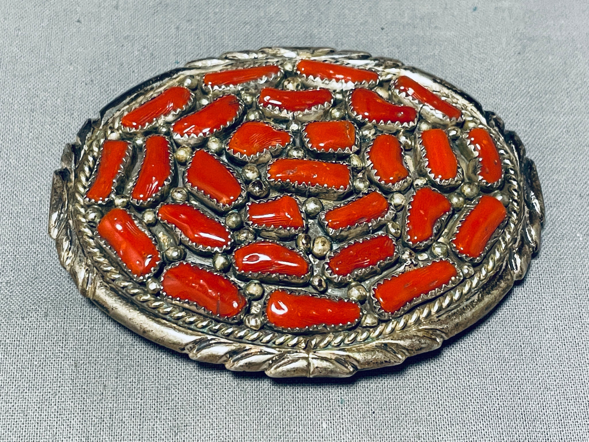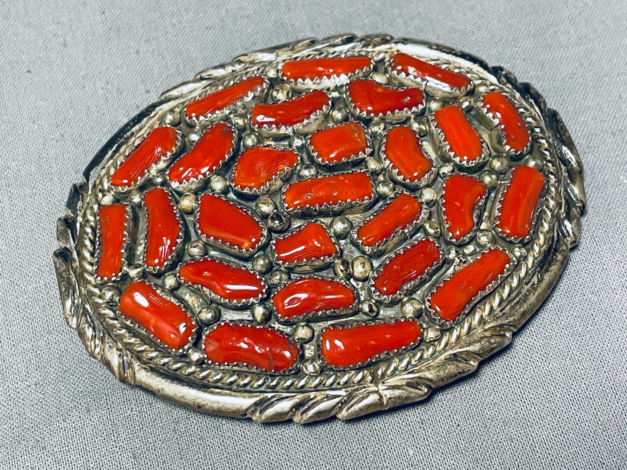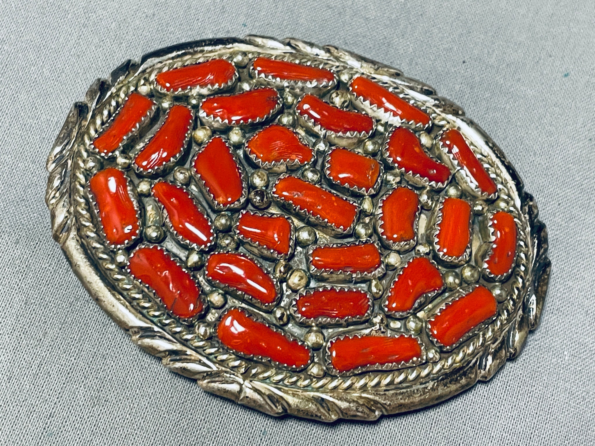 Traditional Native American Navajo Coral Sterling Silver Buckle