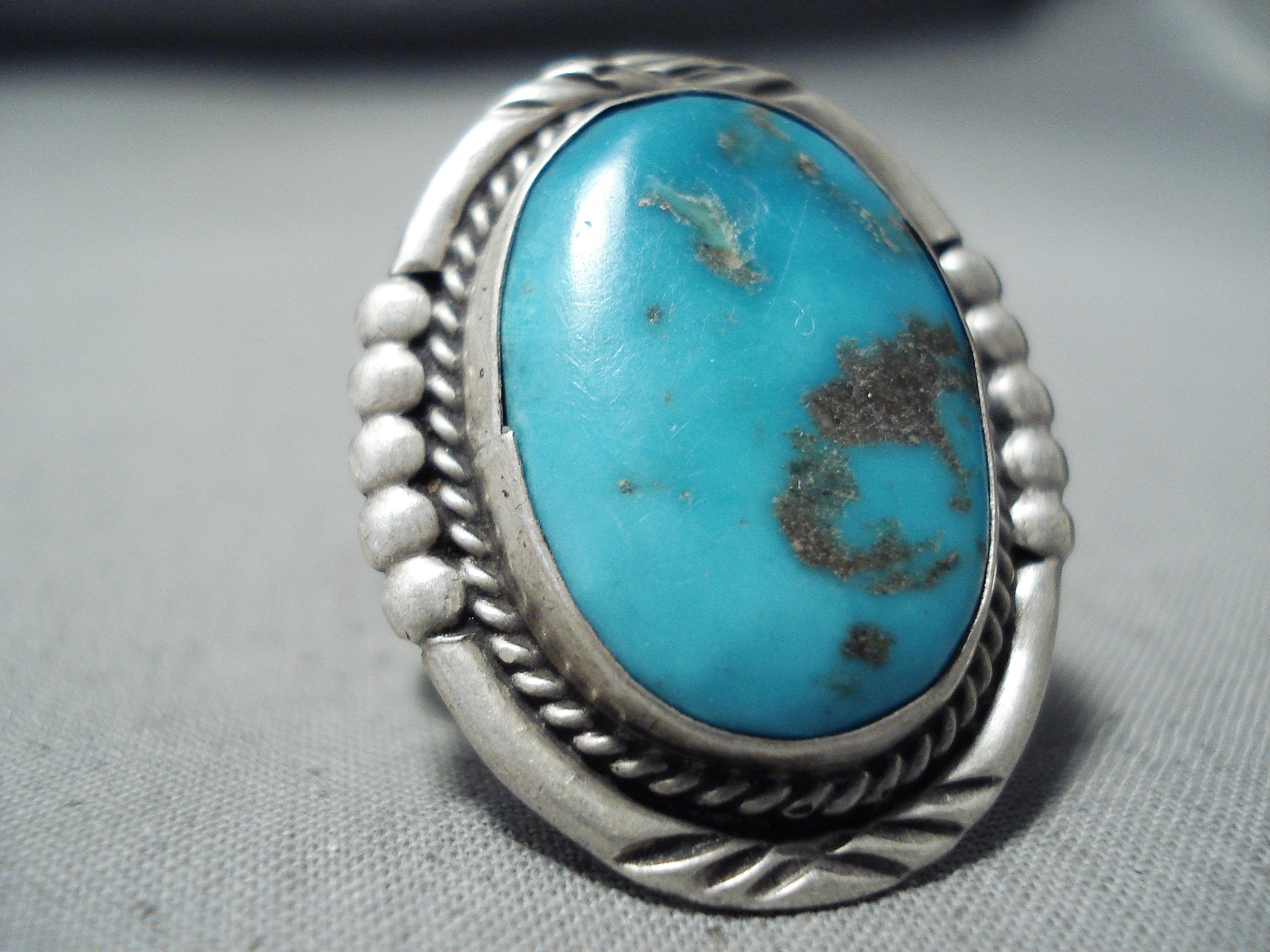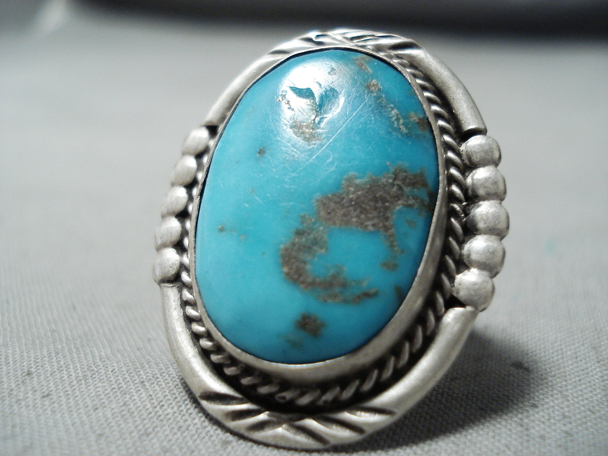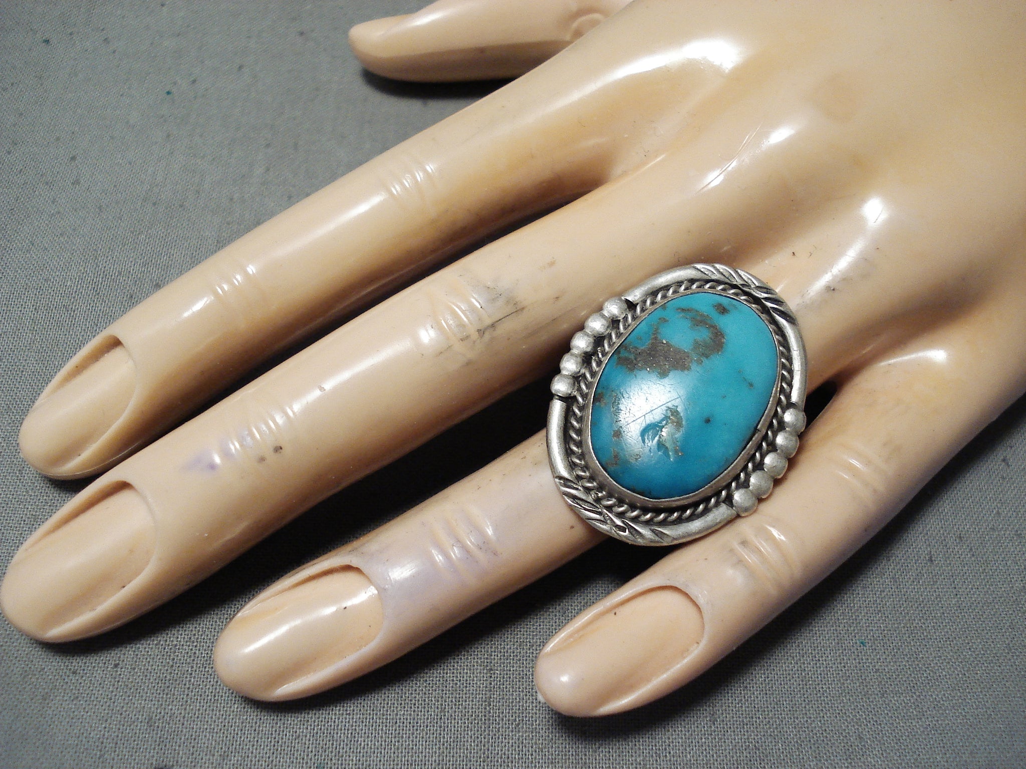 Traditional Vintage Native American Navajo Old Kingman Turquoise Sterling Silver Ring Old