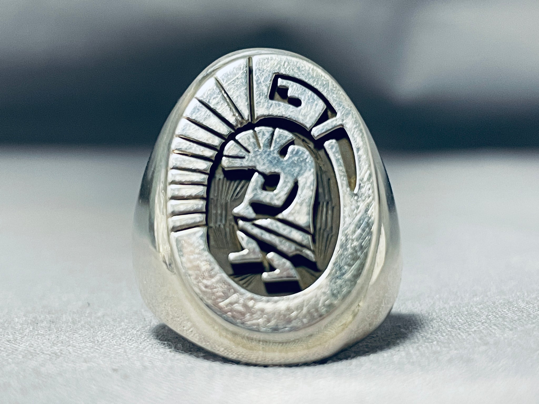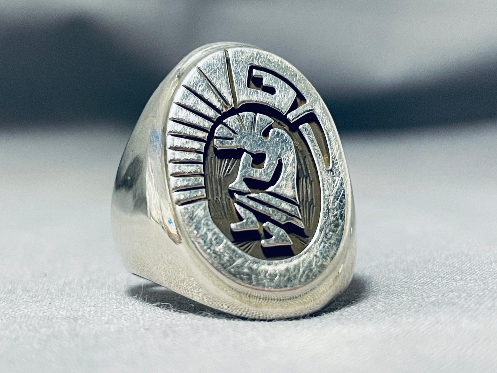 Tremendous C. Peterson Signed Native American Navajo Sterling Silver Kokopelli Ring