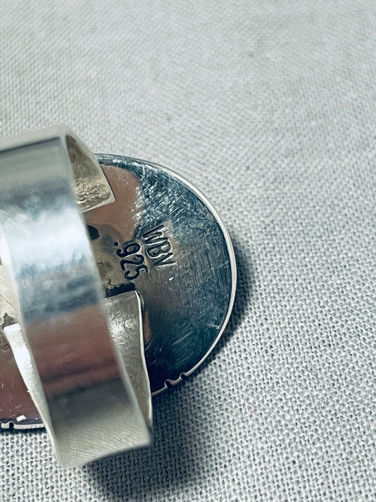 An incredible Navajo silver ring. Check out the silverwork that fabulously frames this remarkable Blue Diamond turquoise stone - the picket fence setting, the mini-coils, and then the handcarved outer border! It's got a nice, wide band that's unattached at one side, allowing for a little size adjustment. Located in central Nevada, the Blue Diamond turquoise mine hosts some of the hardest turquoise produced. The turquoise from this mine, like diamonds, is both hard and beautiful - hence, the Name! This turquoise features a dark smokey matrix encompassed by a brilliant blue. The center stone measures around 5/8" x 3/8". The ring face measures around 1" x 7/8". Signed by Navajo artist, Walter Vandever. The ring size is around 9. Sterling silver, marked. Sturdy 12 grams.