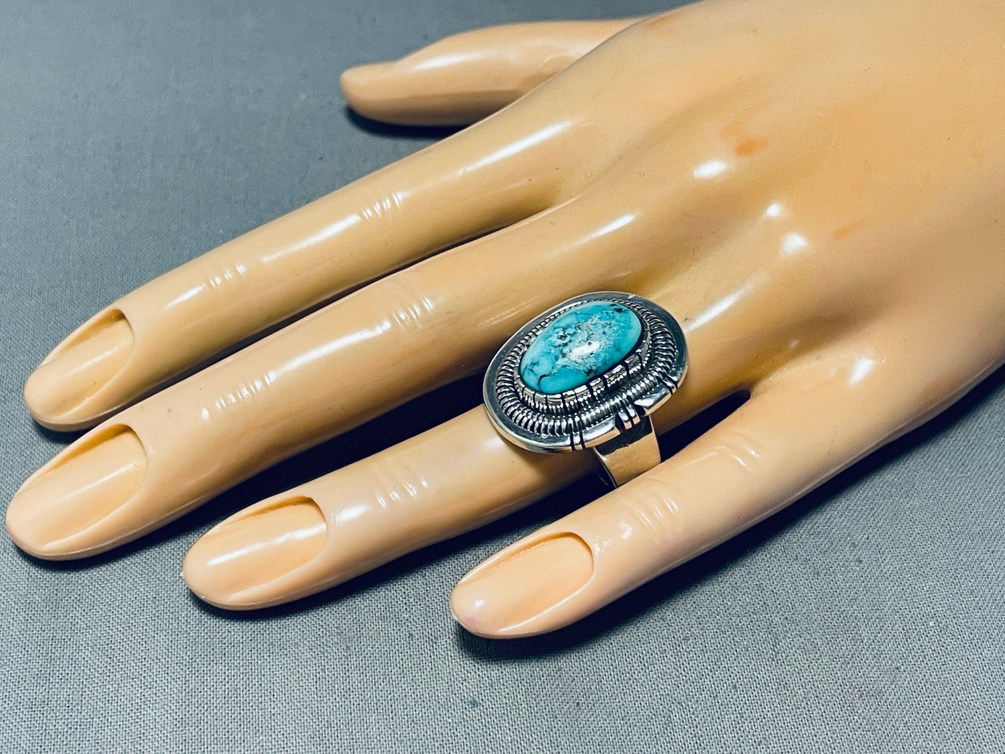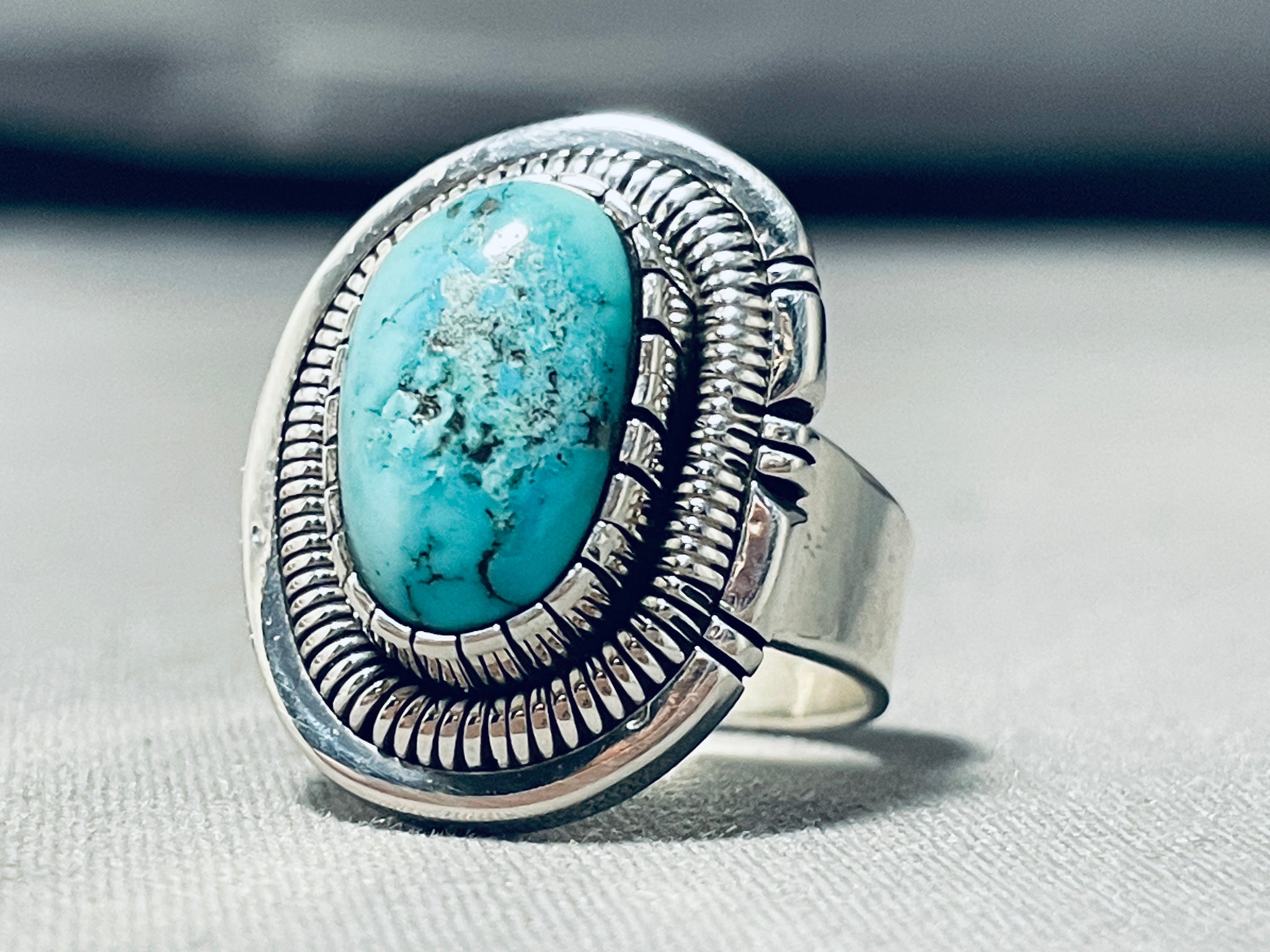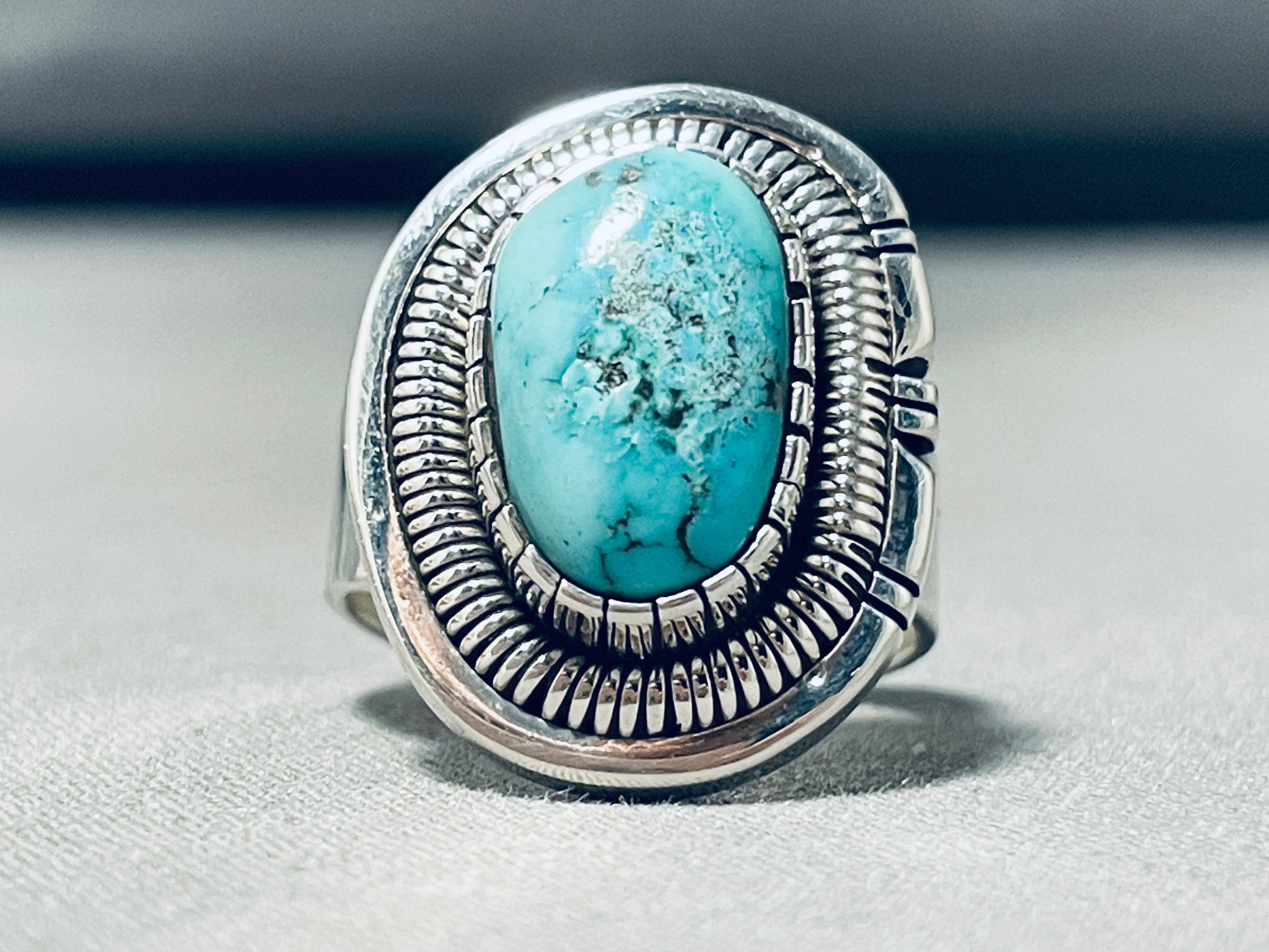 Tremendous Native American Navajo Blue Diamond Turquoise Sterling Silver Ring