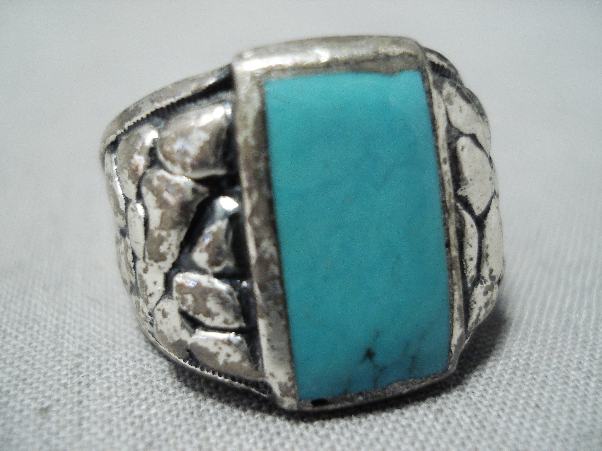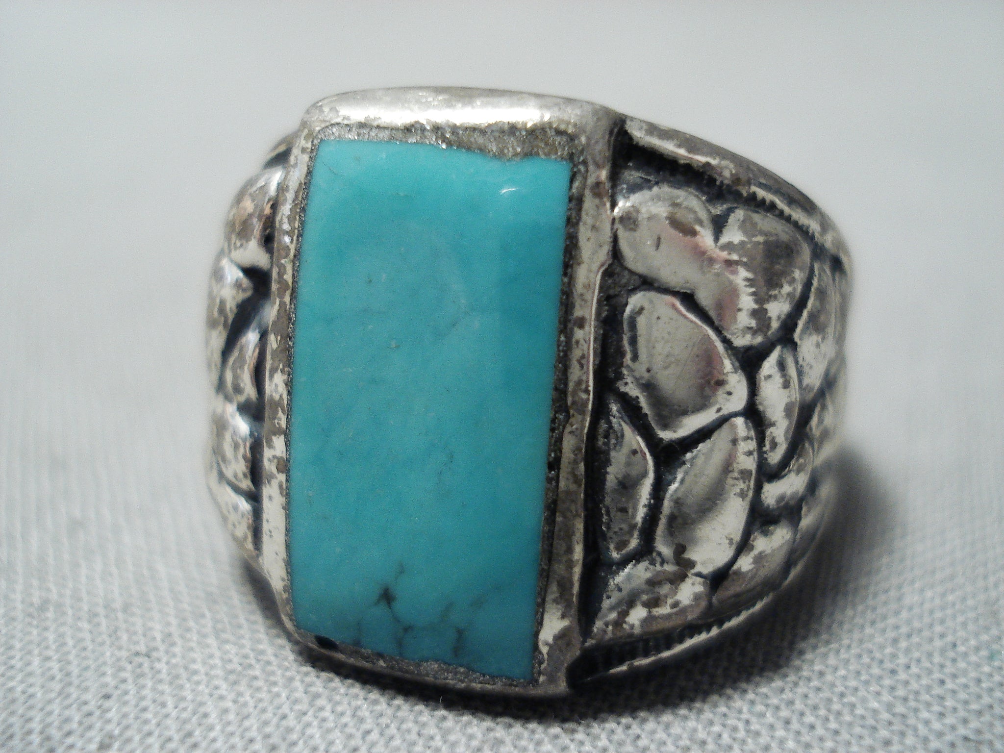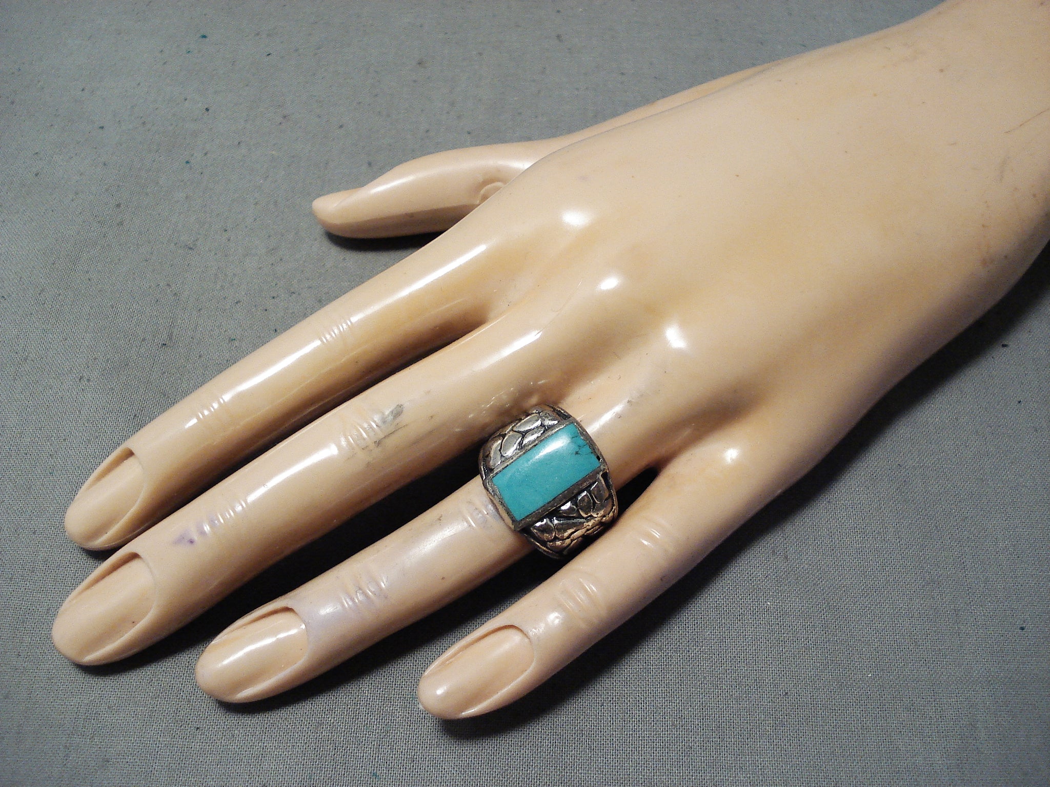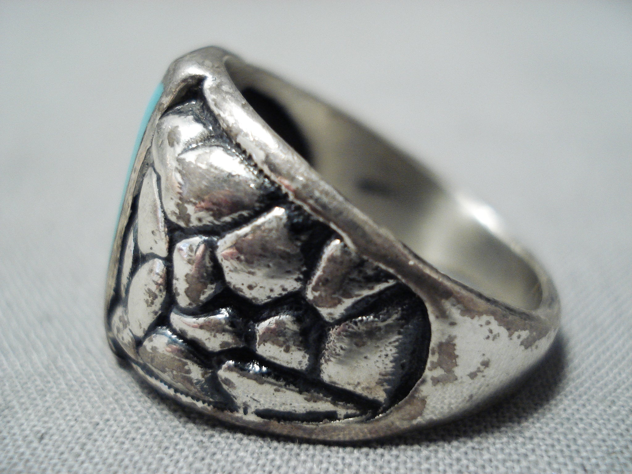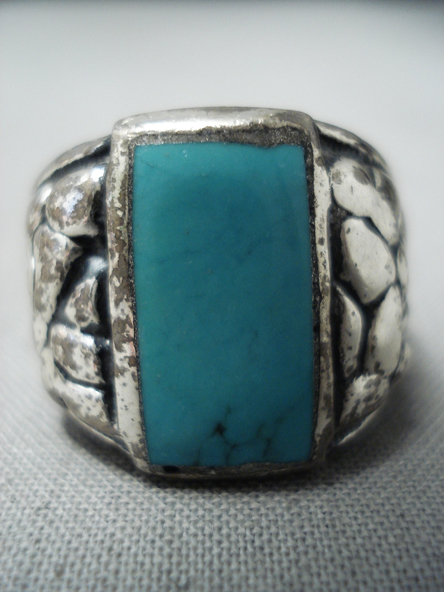 Tremendous Native American Navajo Kingman Turquoise Sterling Silver Huge Ring