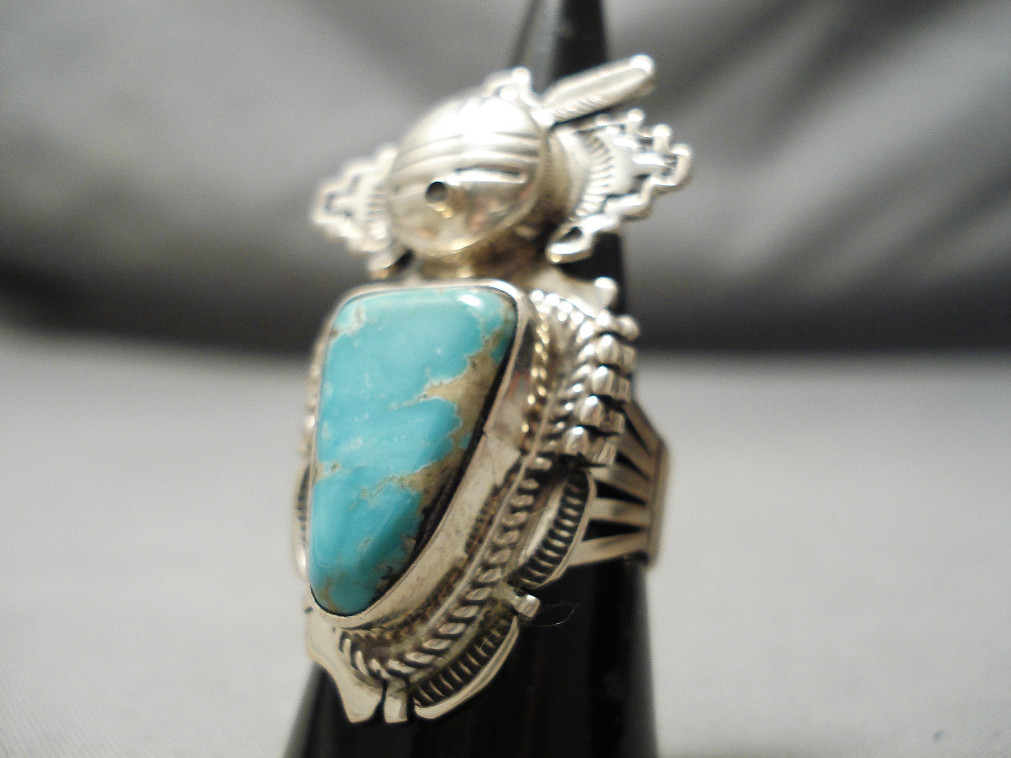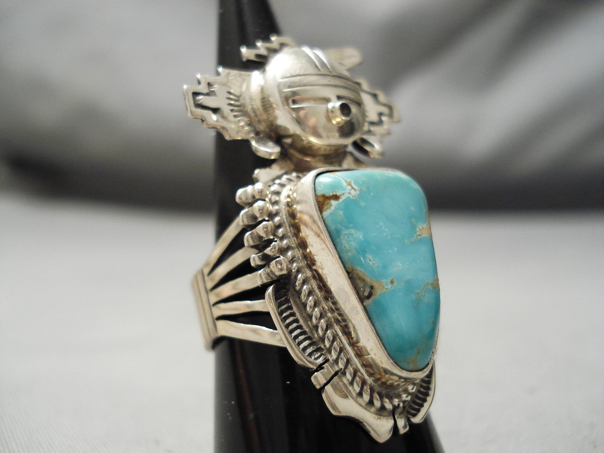Tremendous Vintage Native American Navajo Kachina Turquoise Sterling Silver Ring