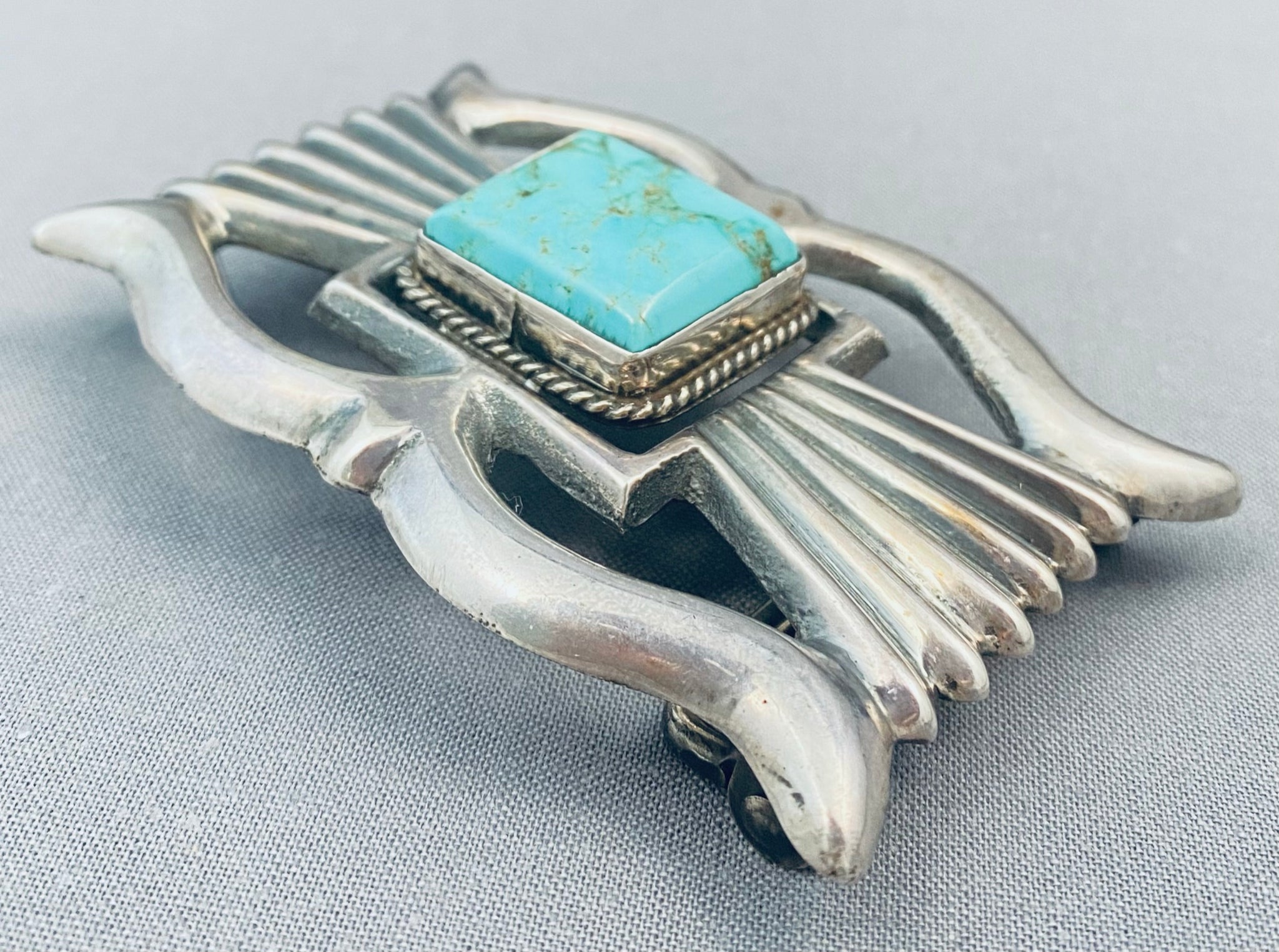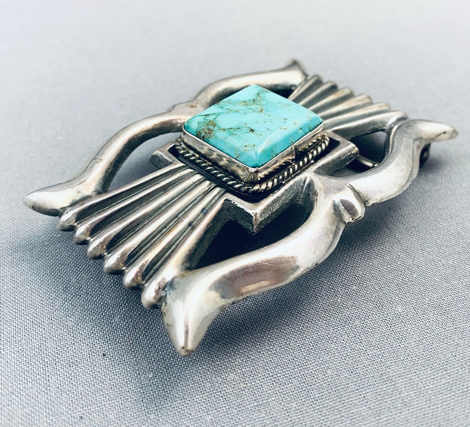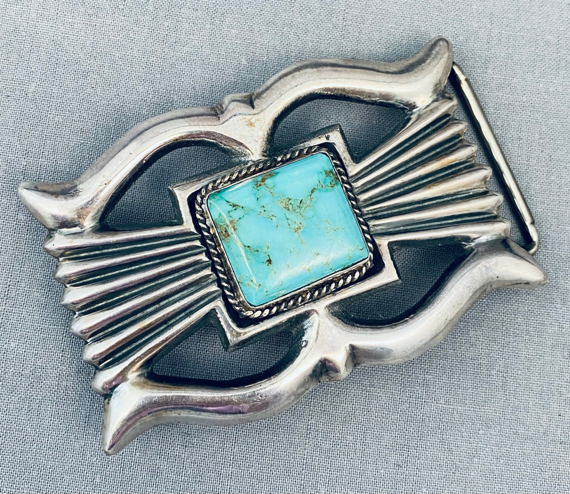 Tremendous Vintage Native American Navajo Royston Turquoise Sterling Silver Buckle