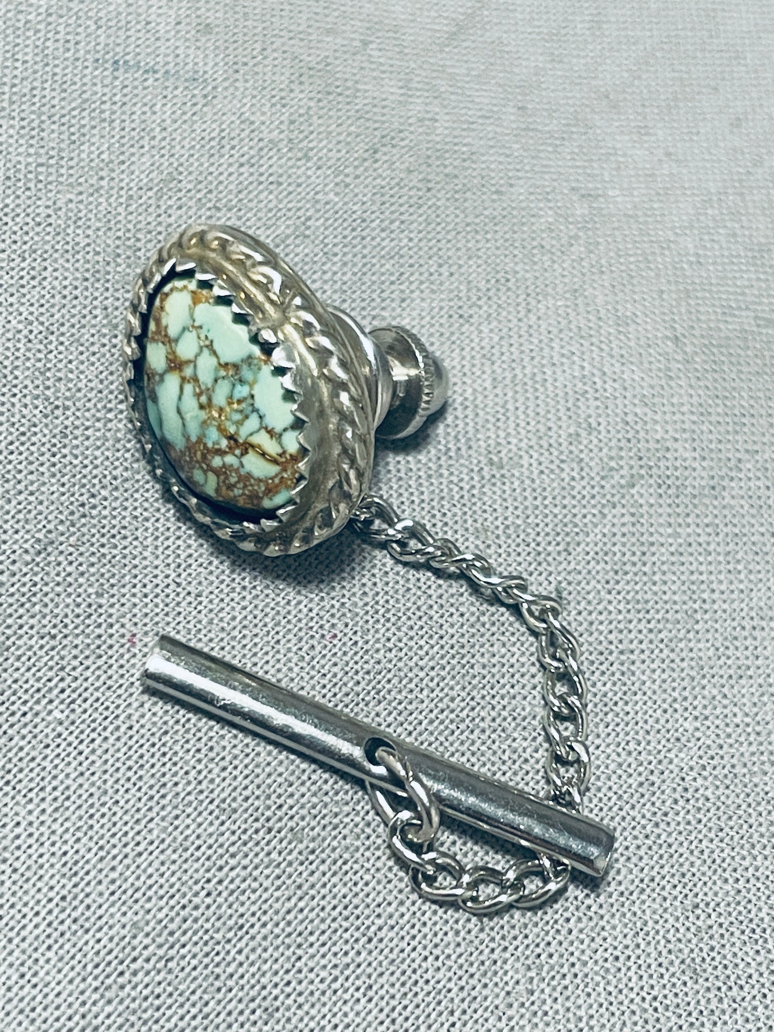 Tremendous Vintage Native American Navajo Spiderweb Turquoise Stelring Silver Tie Tac