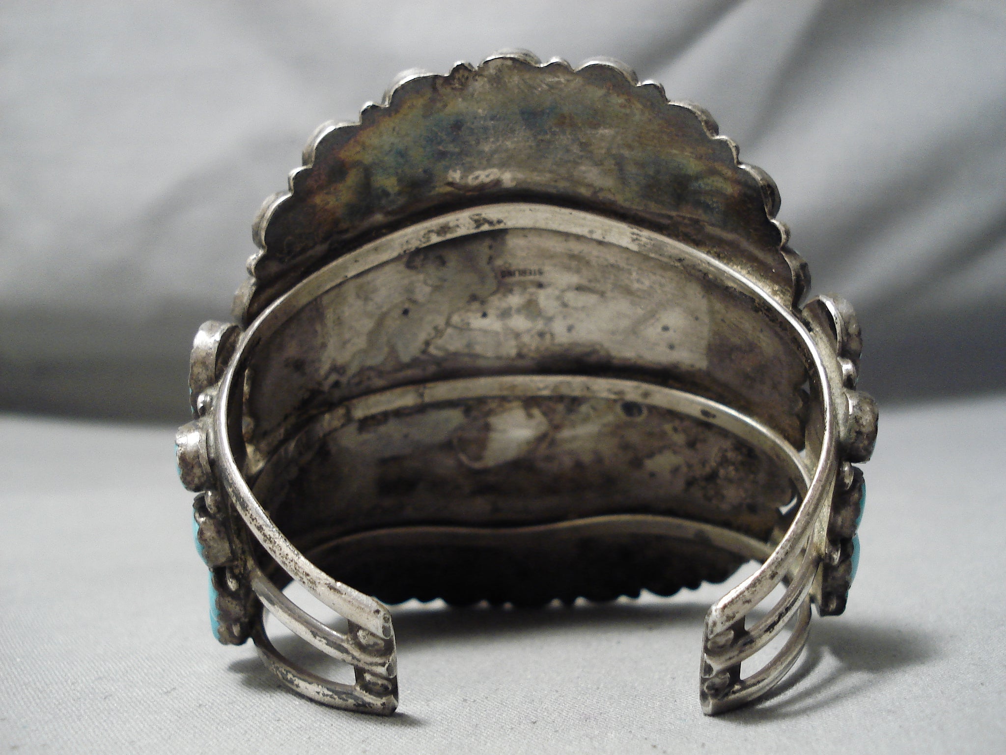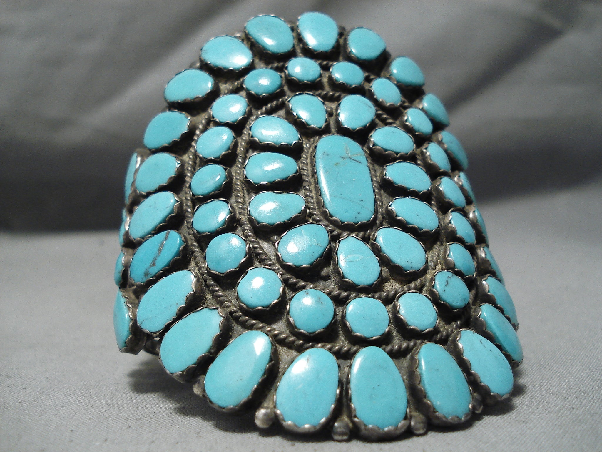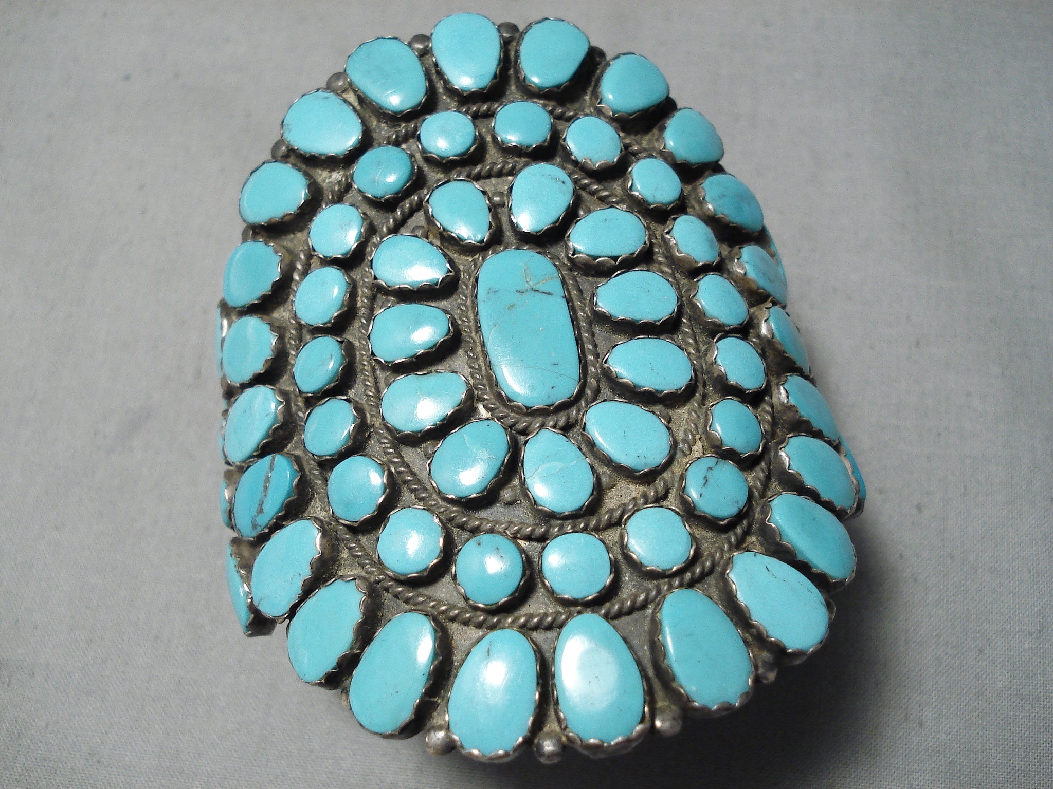 Tremendous Vintage Native American Navajo Turquoise Cluster Sterling Silver Bracelet