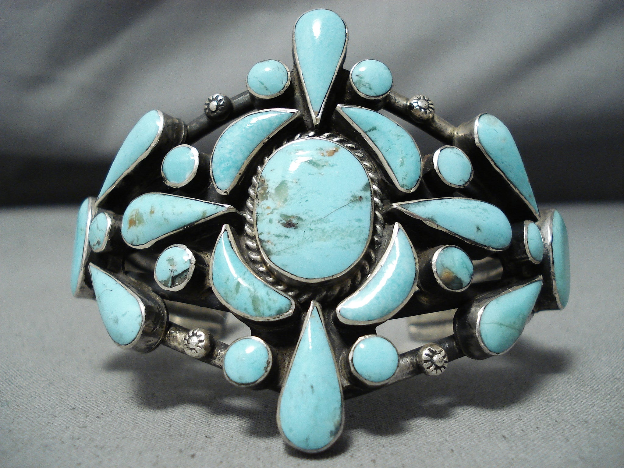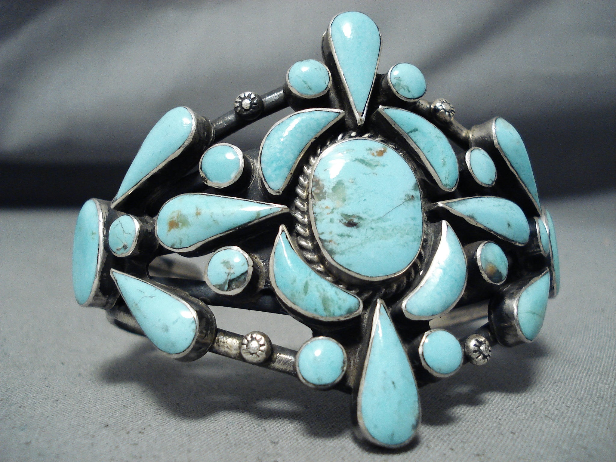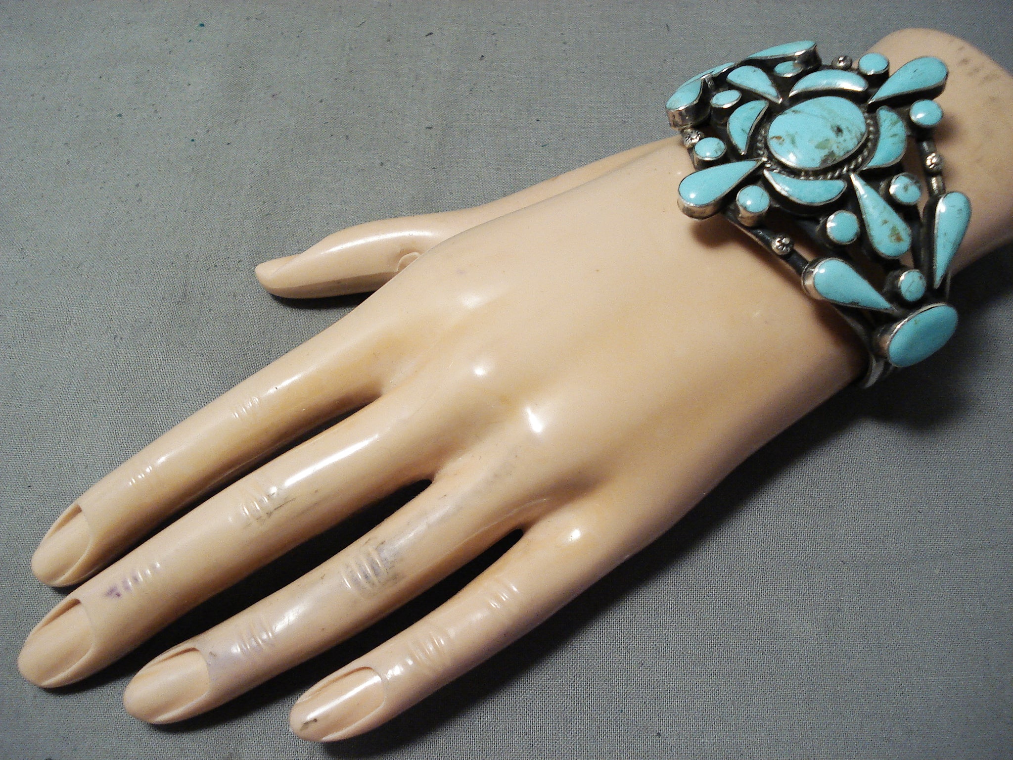 Tremendous Vintage Native American Navajo Turquoise Sterling Silver Bracelet Old