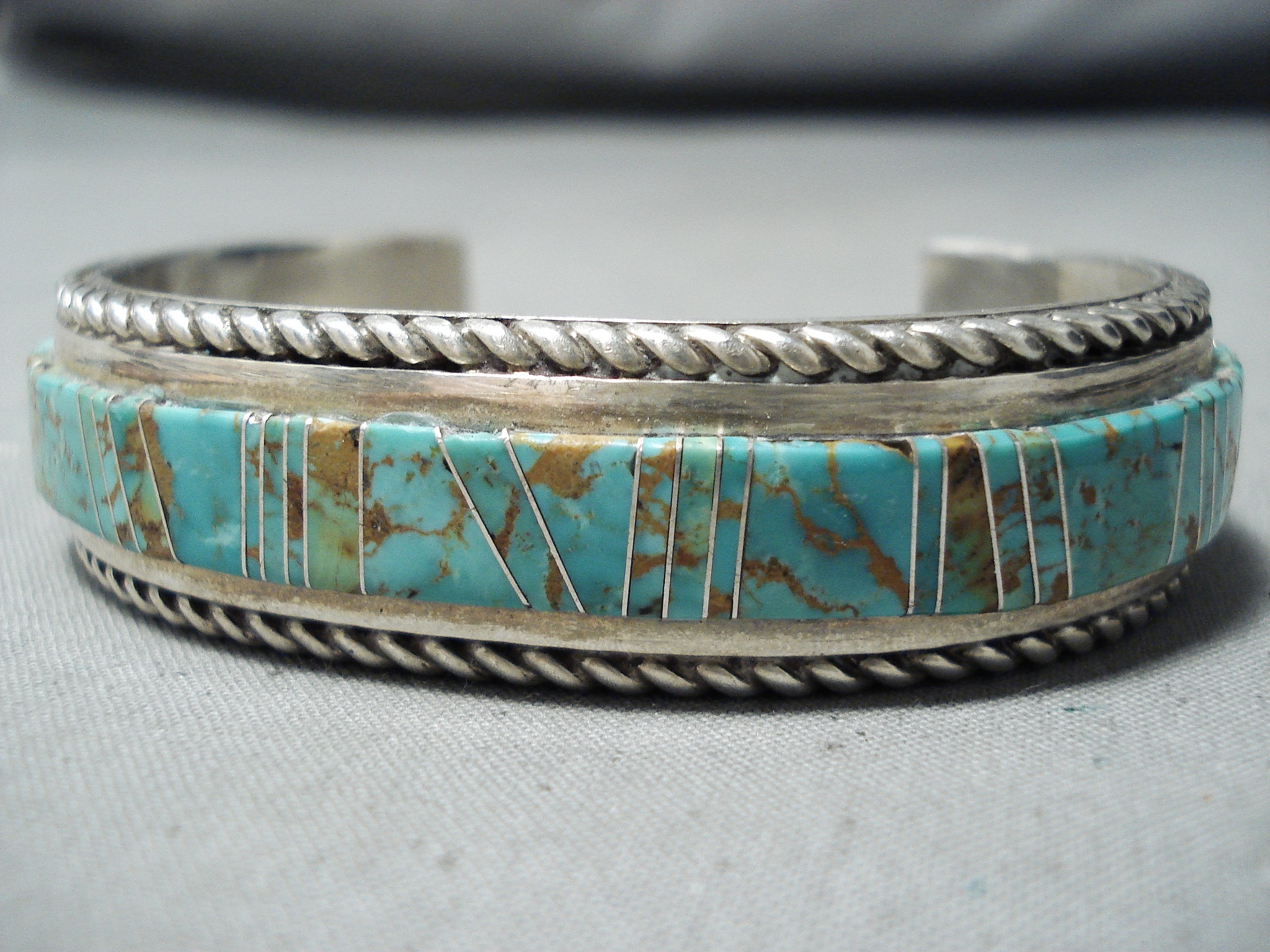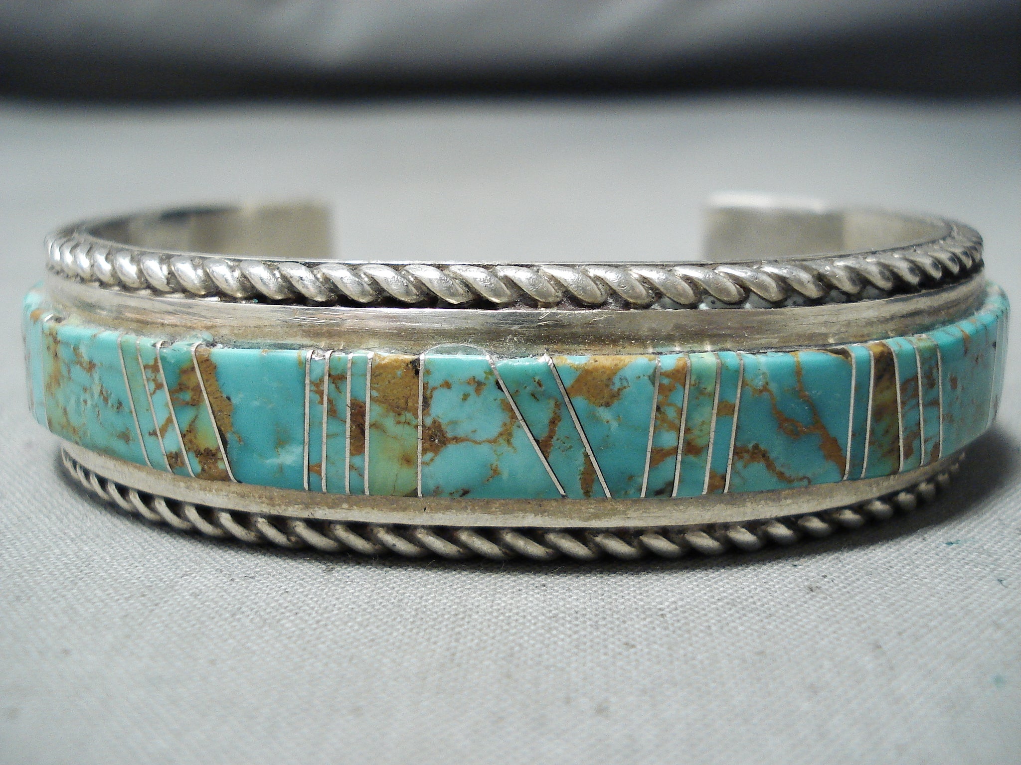 Tremendous Vintage Native American Navajo Turquoise Sterling Silver Bracelet Old