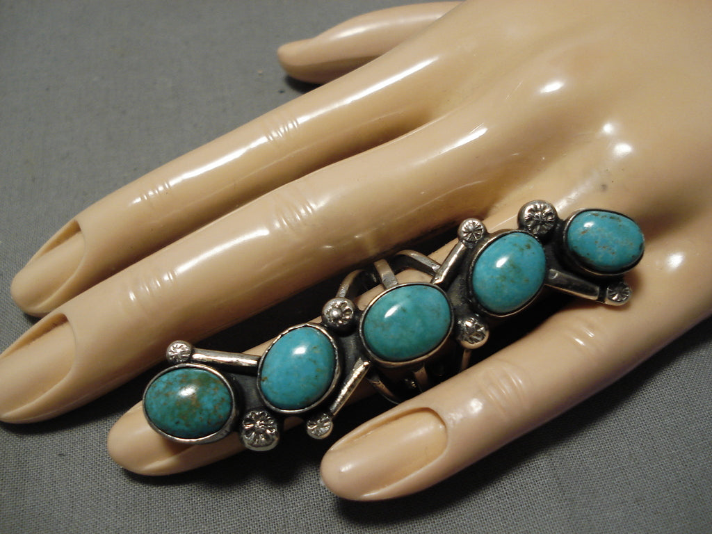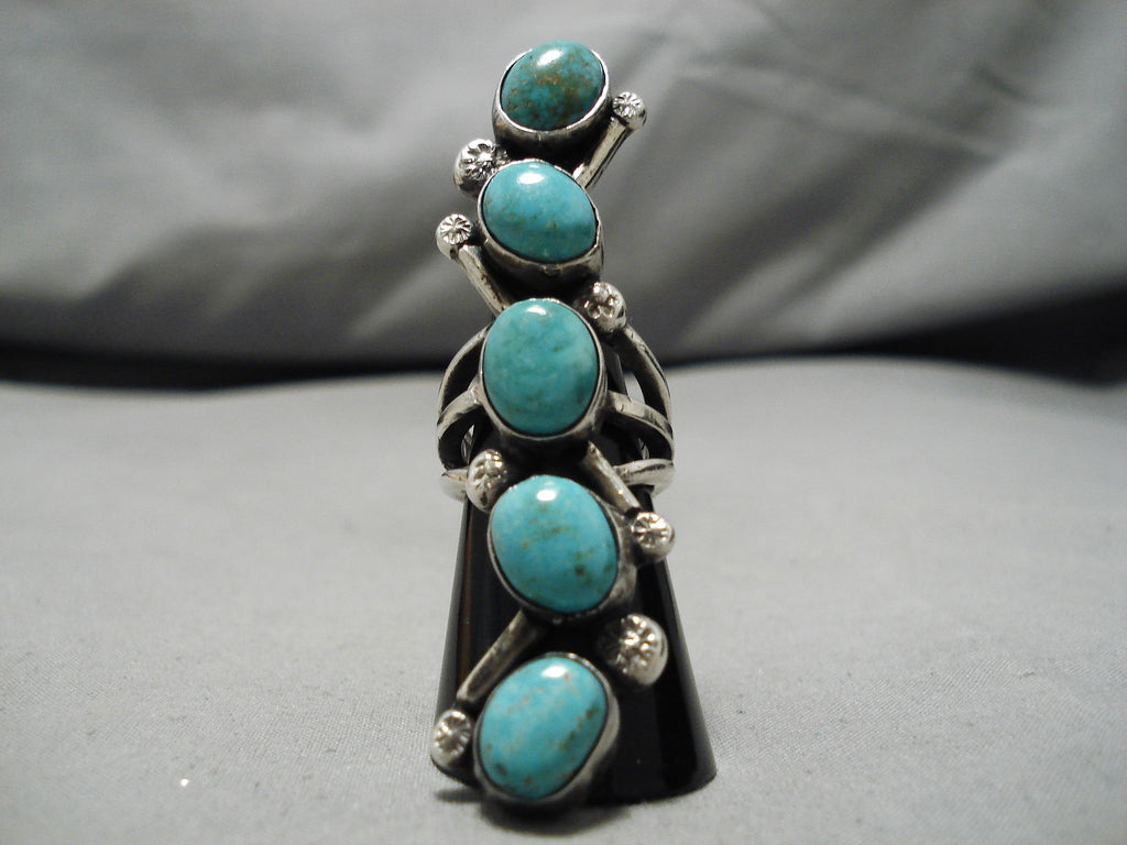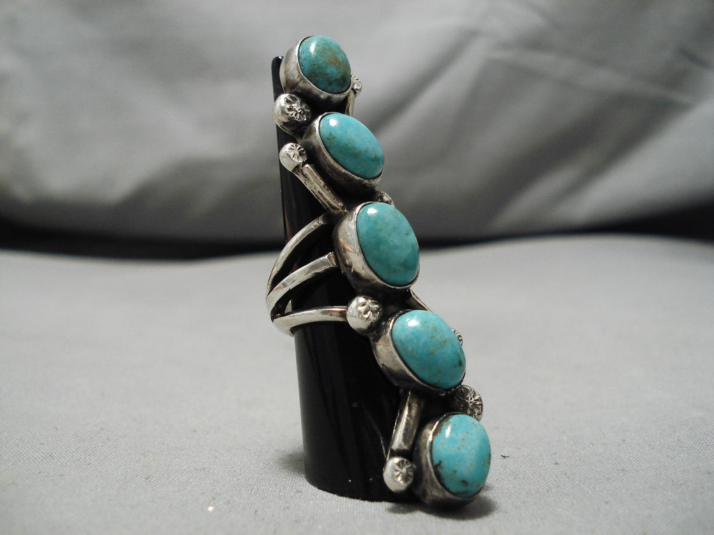Tremendous Vintage Navajo Deepset Turquoise Sterling Silver Native American Ring