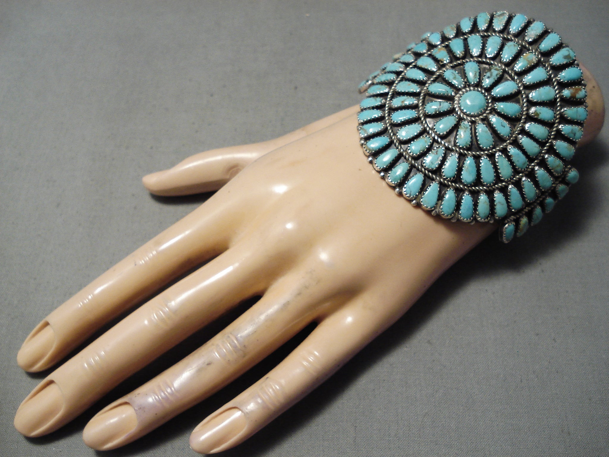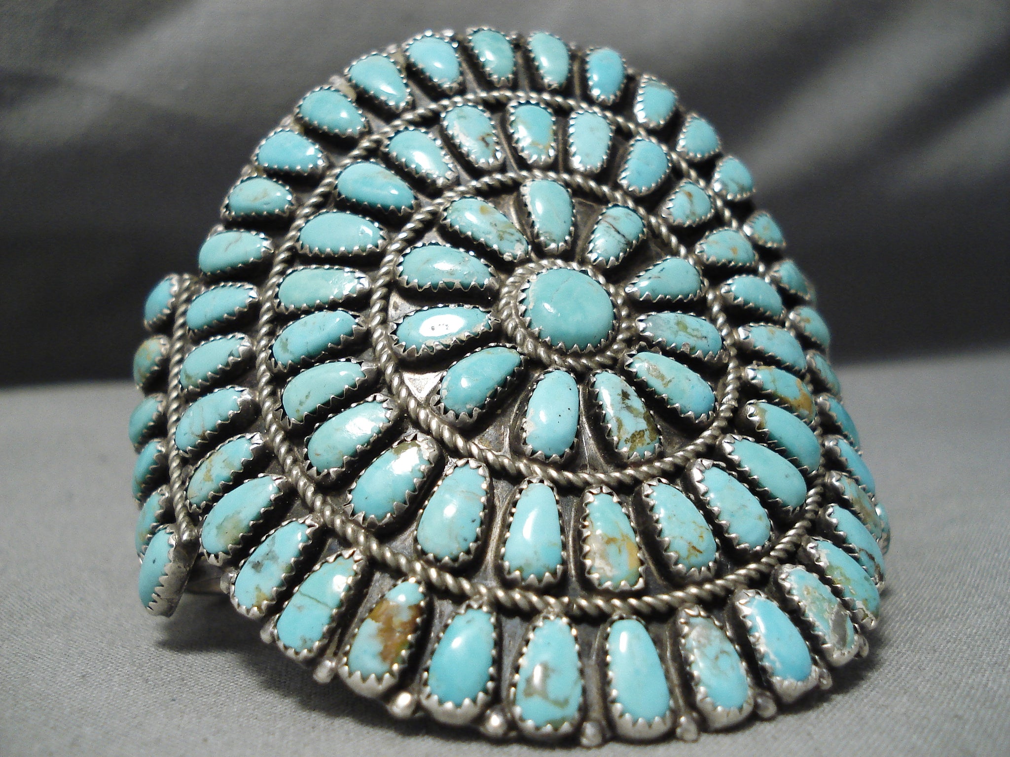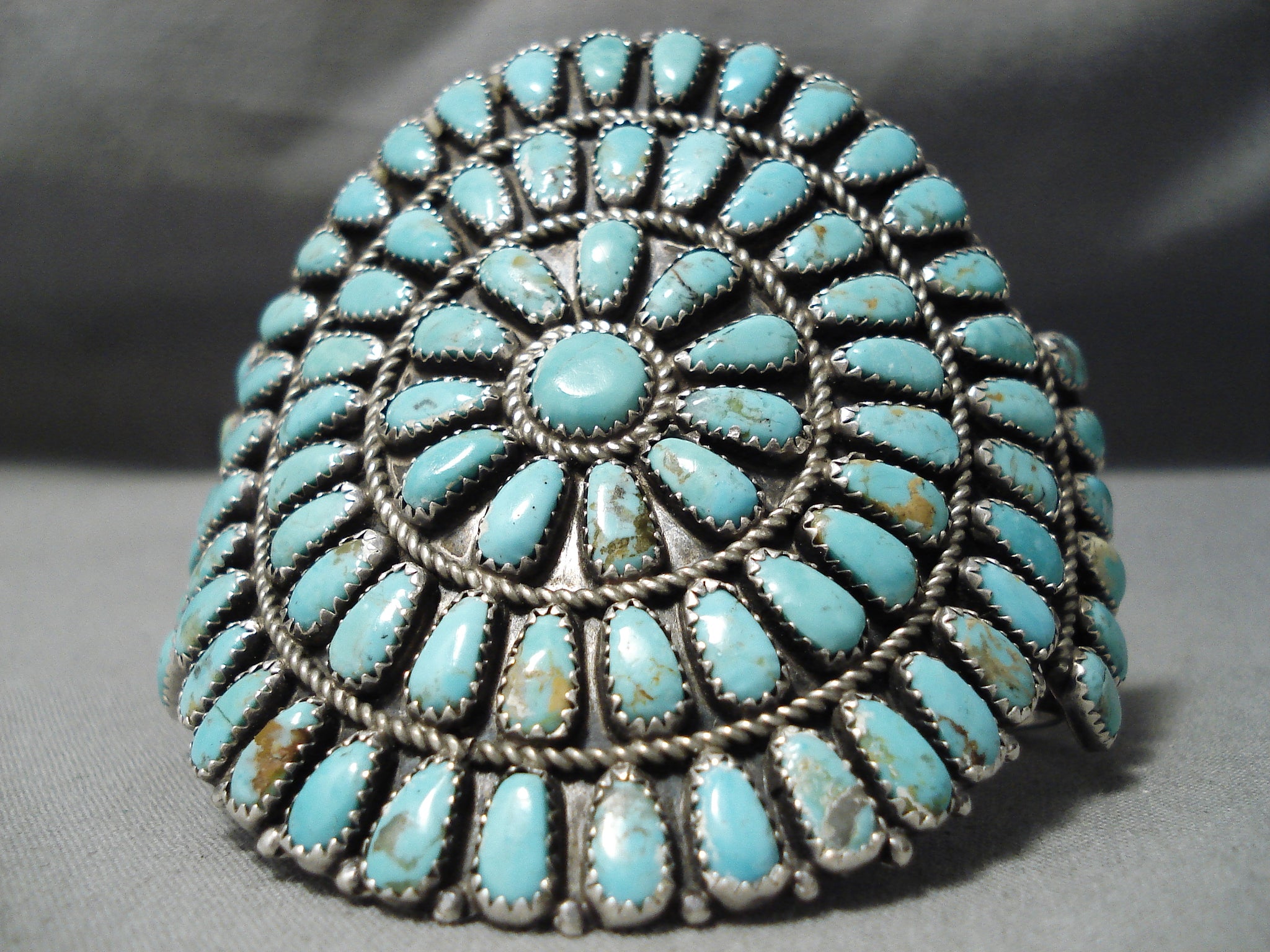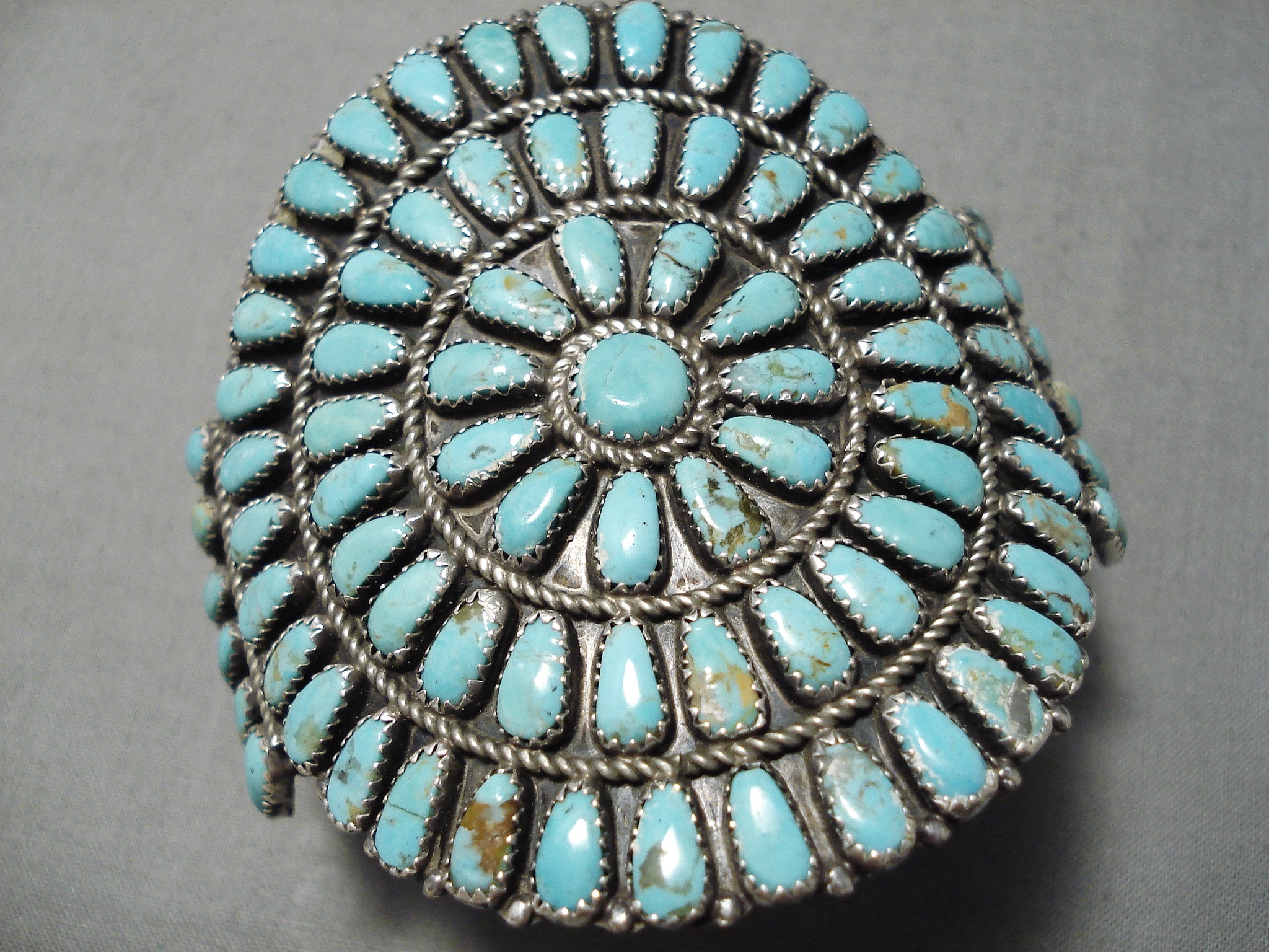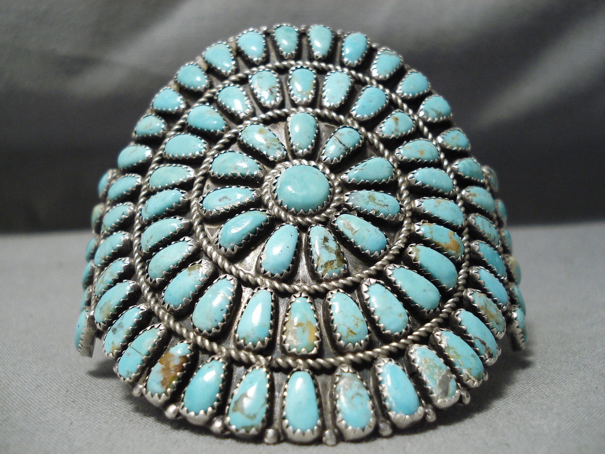 Tremendous Vintage Navajo Turquoise Sterling Silver Bracelet Native American Old