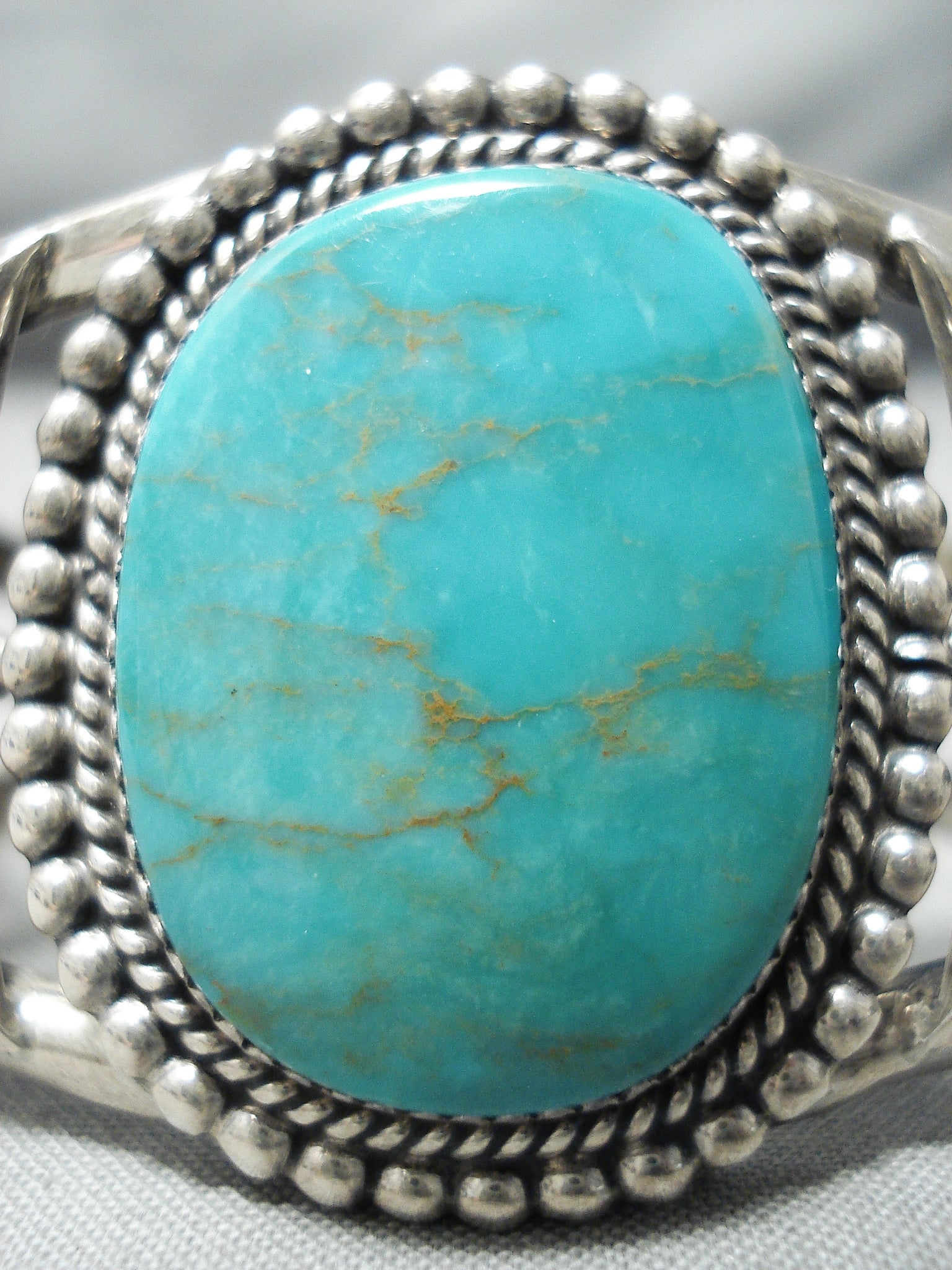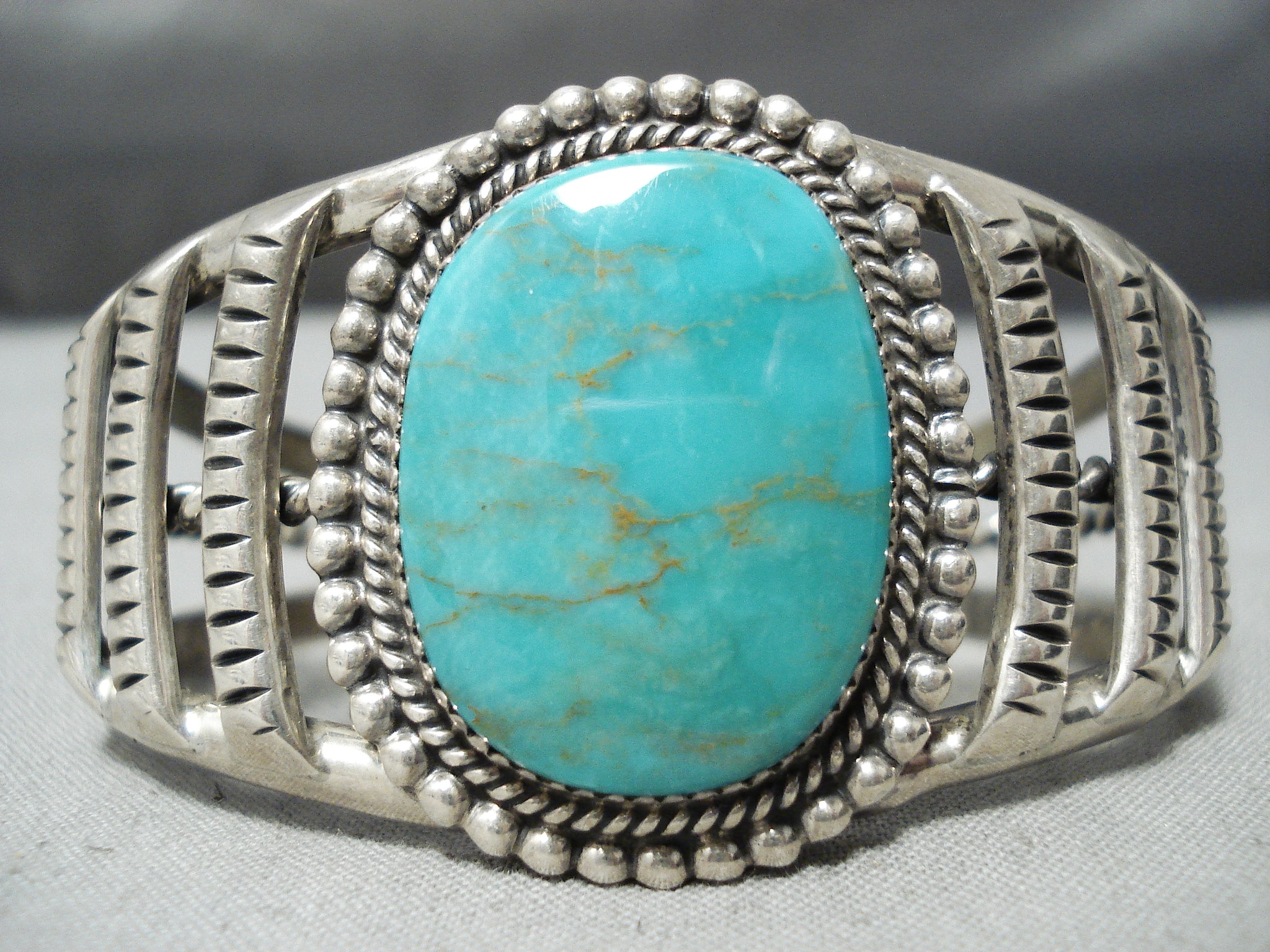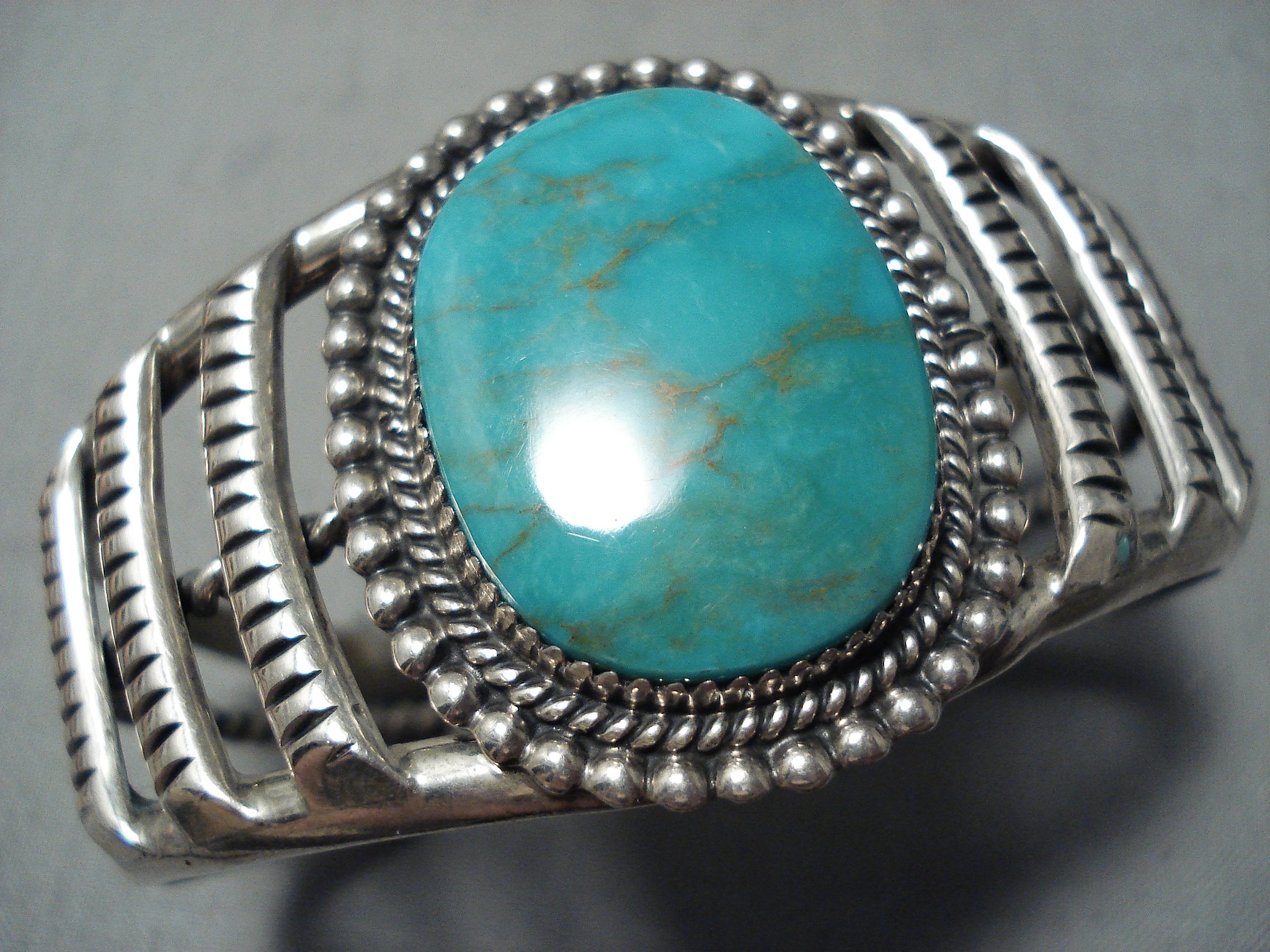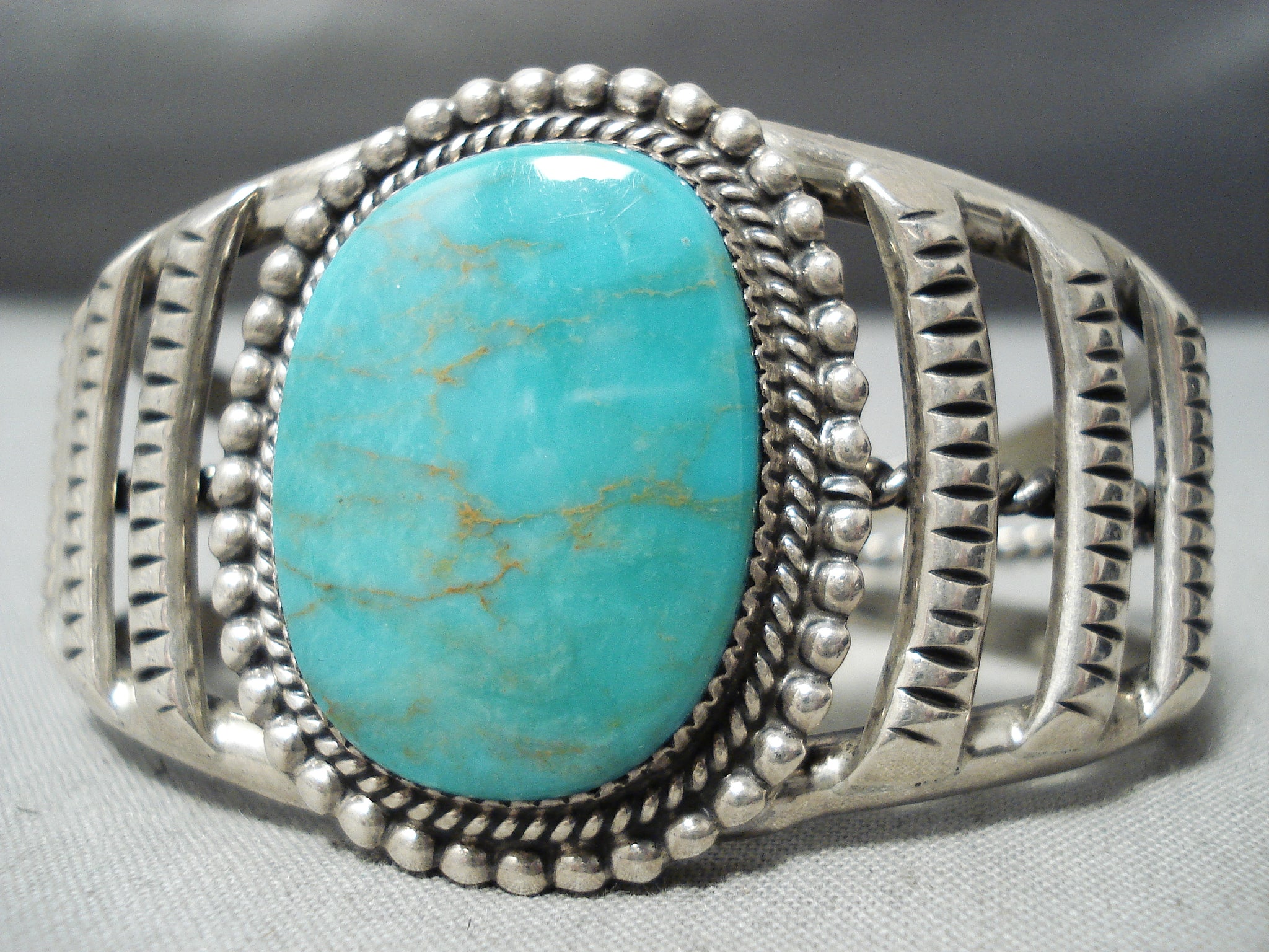 Triple Flank! Vintage Native American Navajo Royston Turquoise Sterling Silver Bracelet