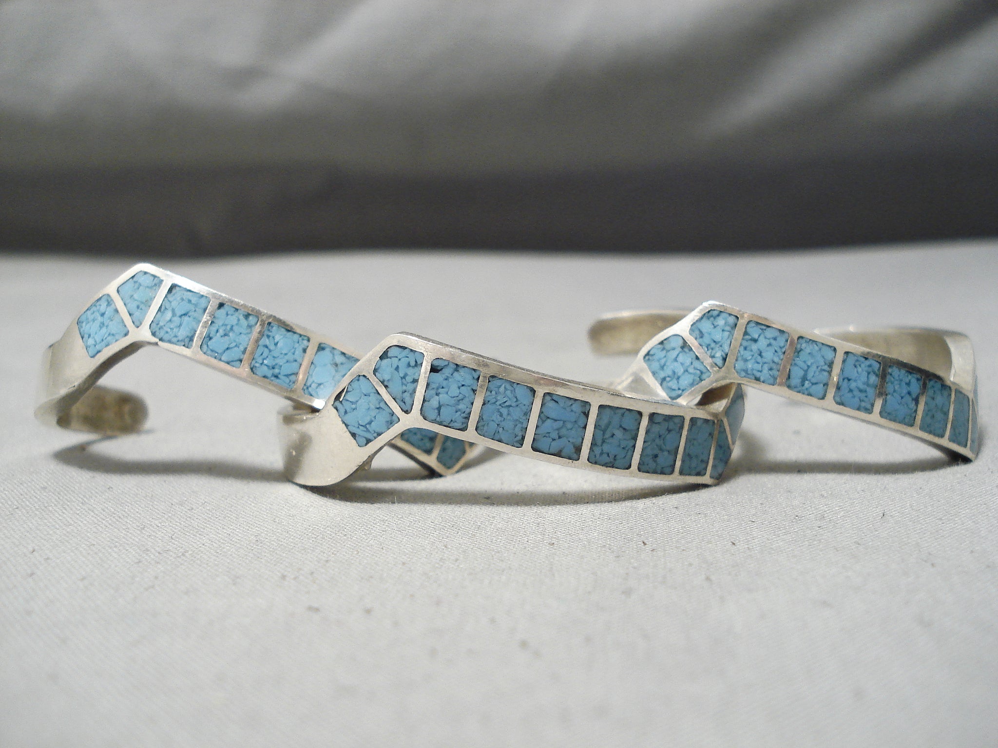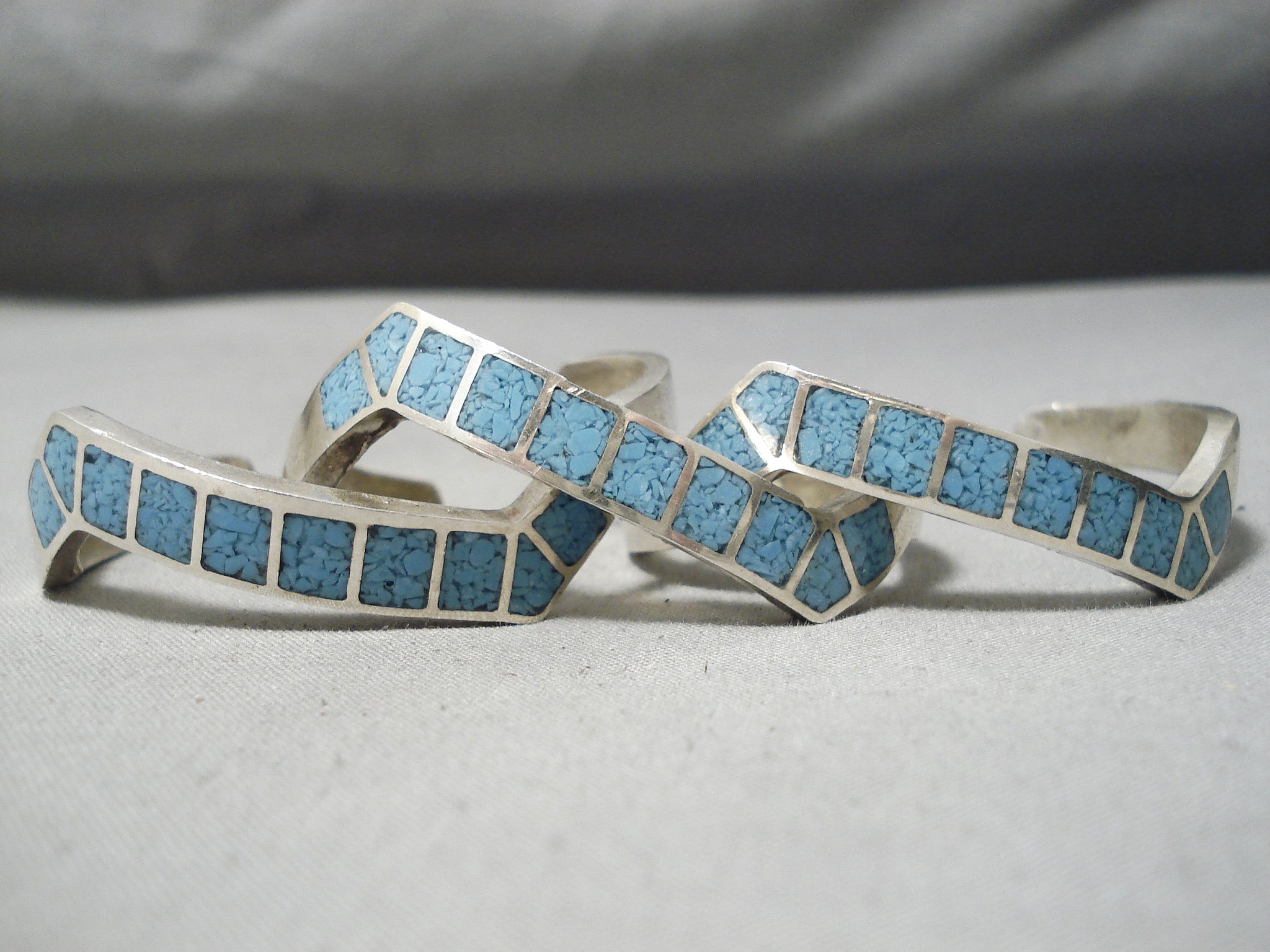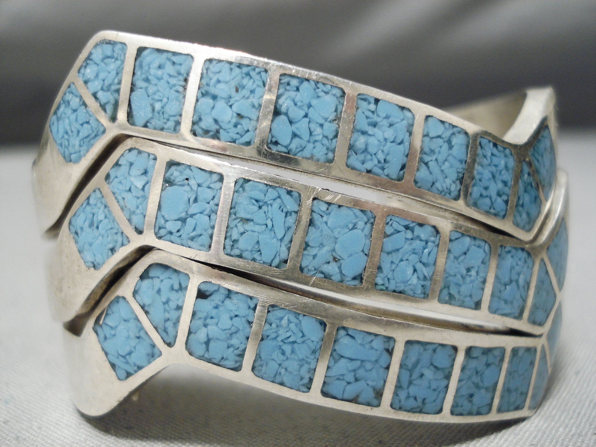 Triple Stacking Vintage Native American Navajo Zuni Turquoise Sterling Silver Bracelet Old