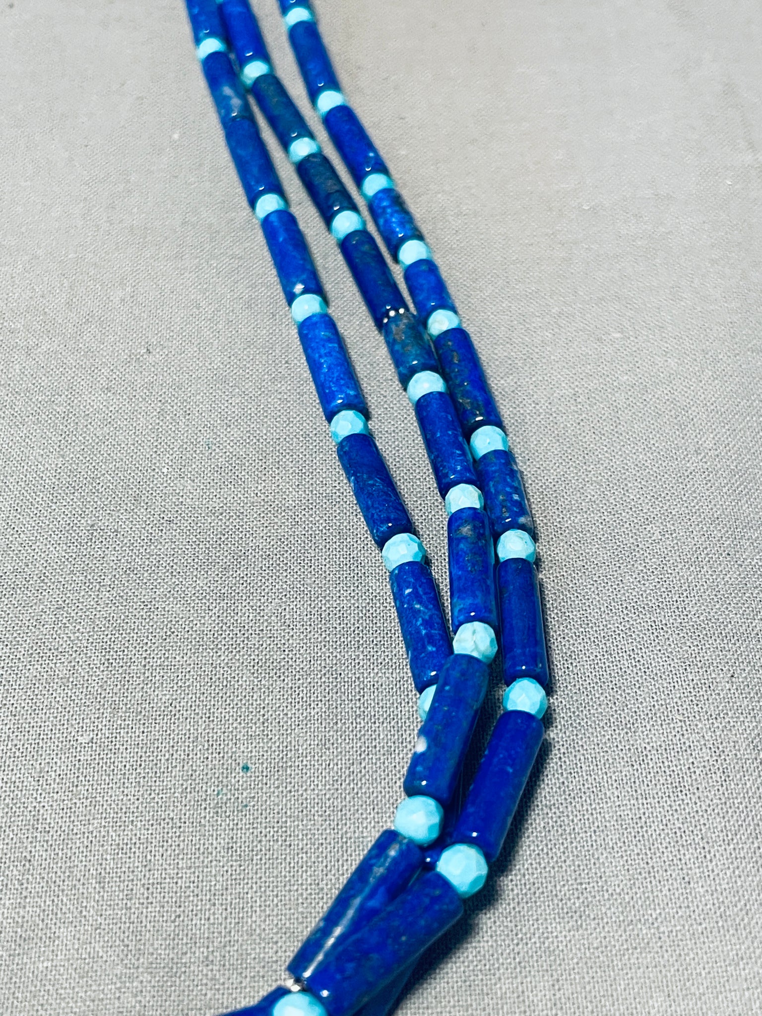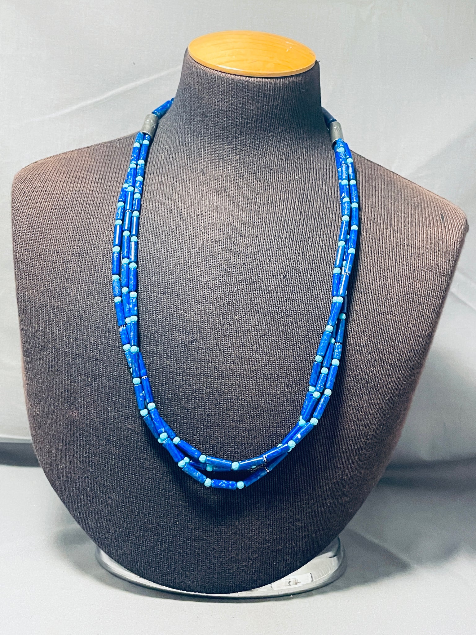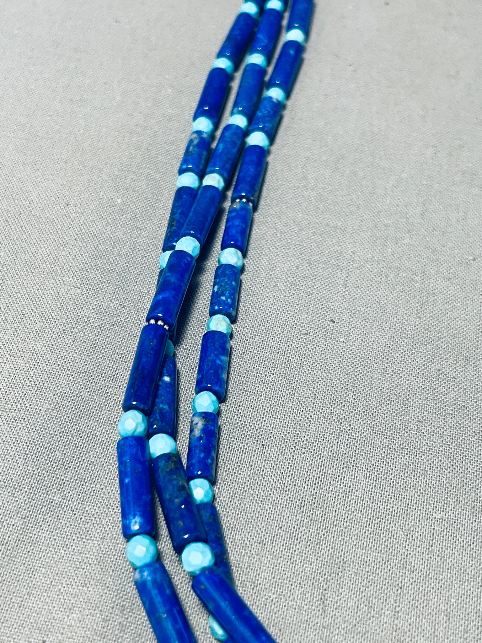 Tubule Lapis Turquoise Sterling Silver Native American Navajo Heishi Necklace