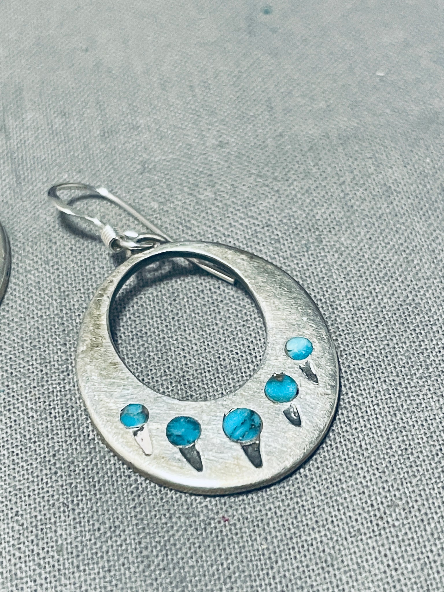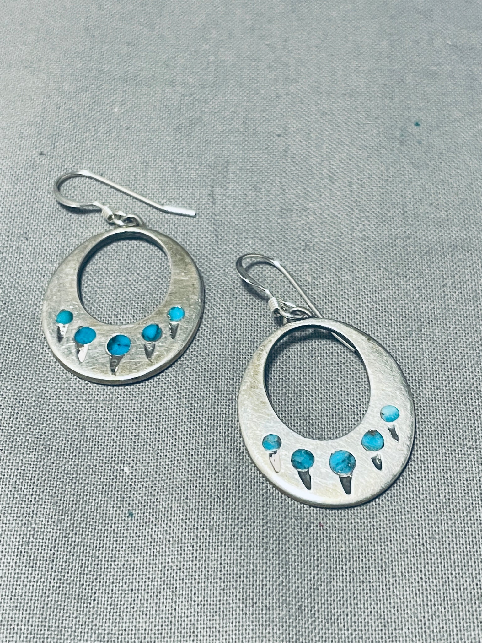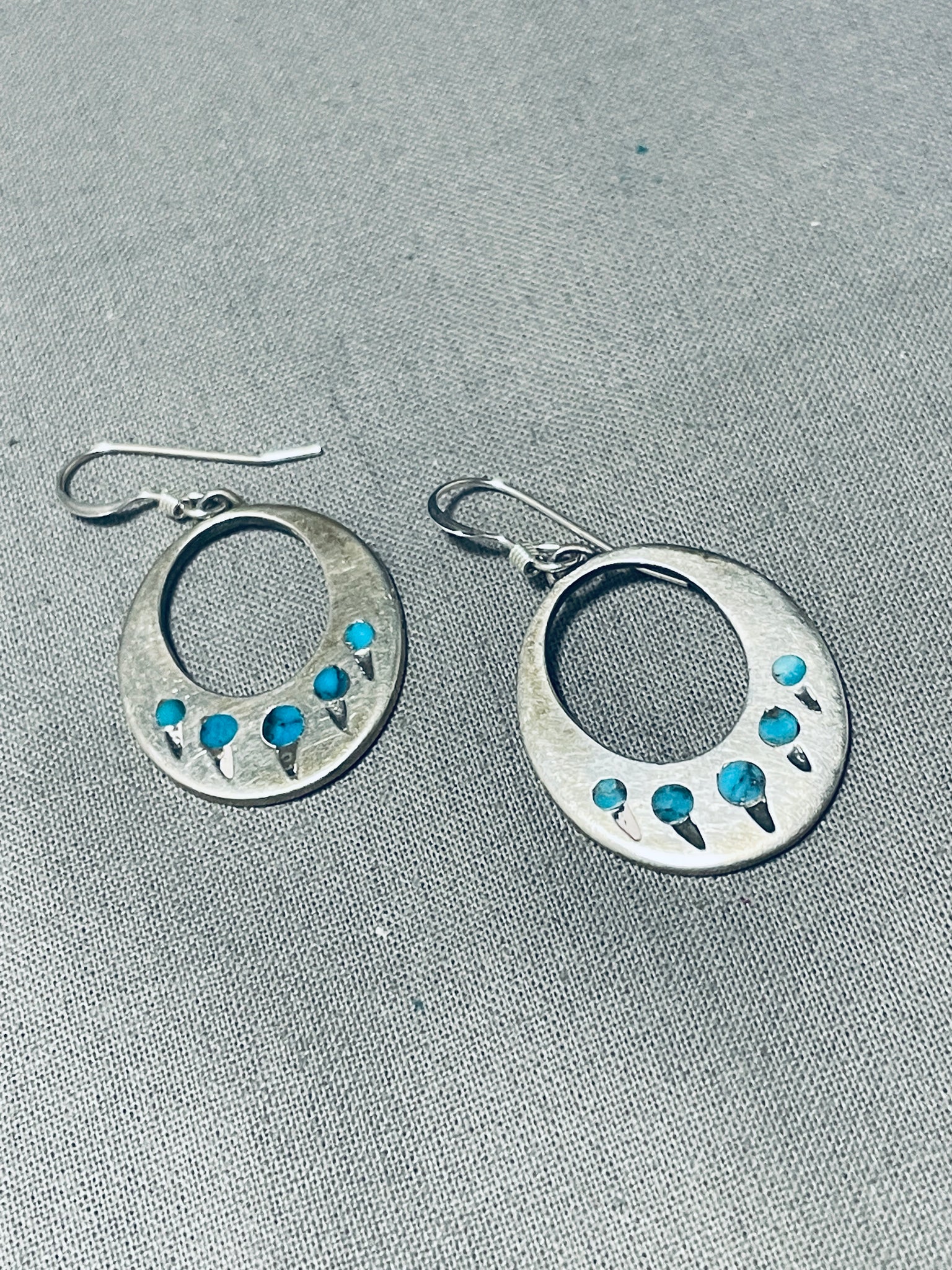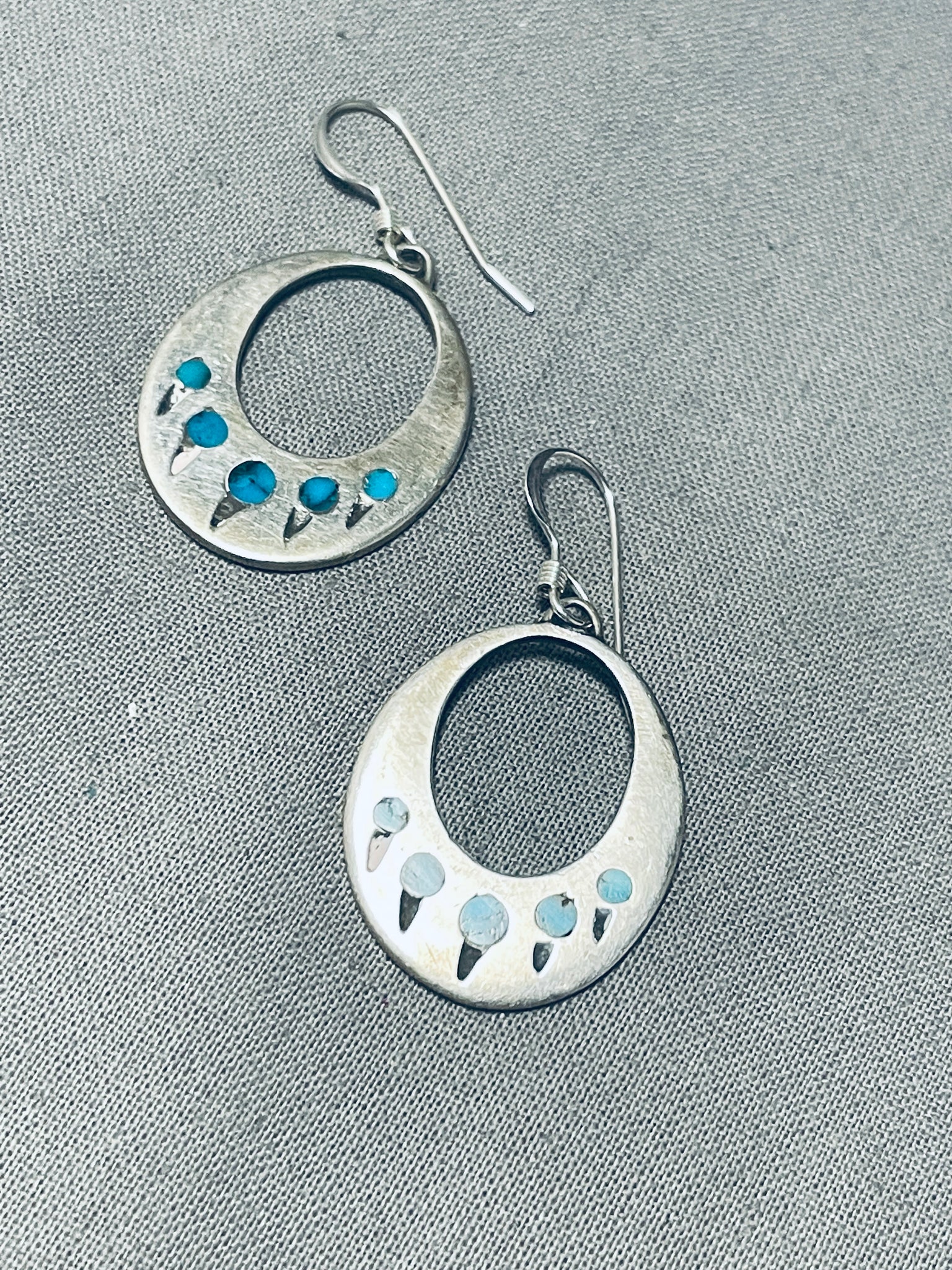 Turquoise Paw Inlay Vintage Native American Navajo Sterling Silver Earrings
