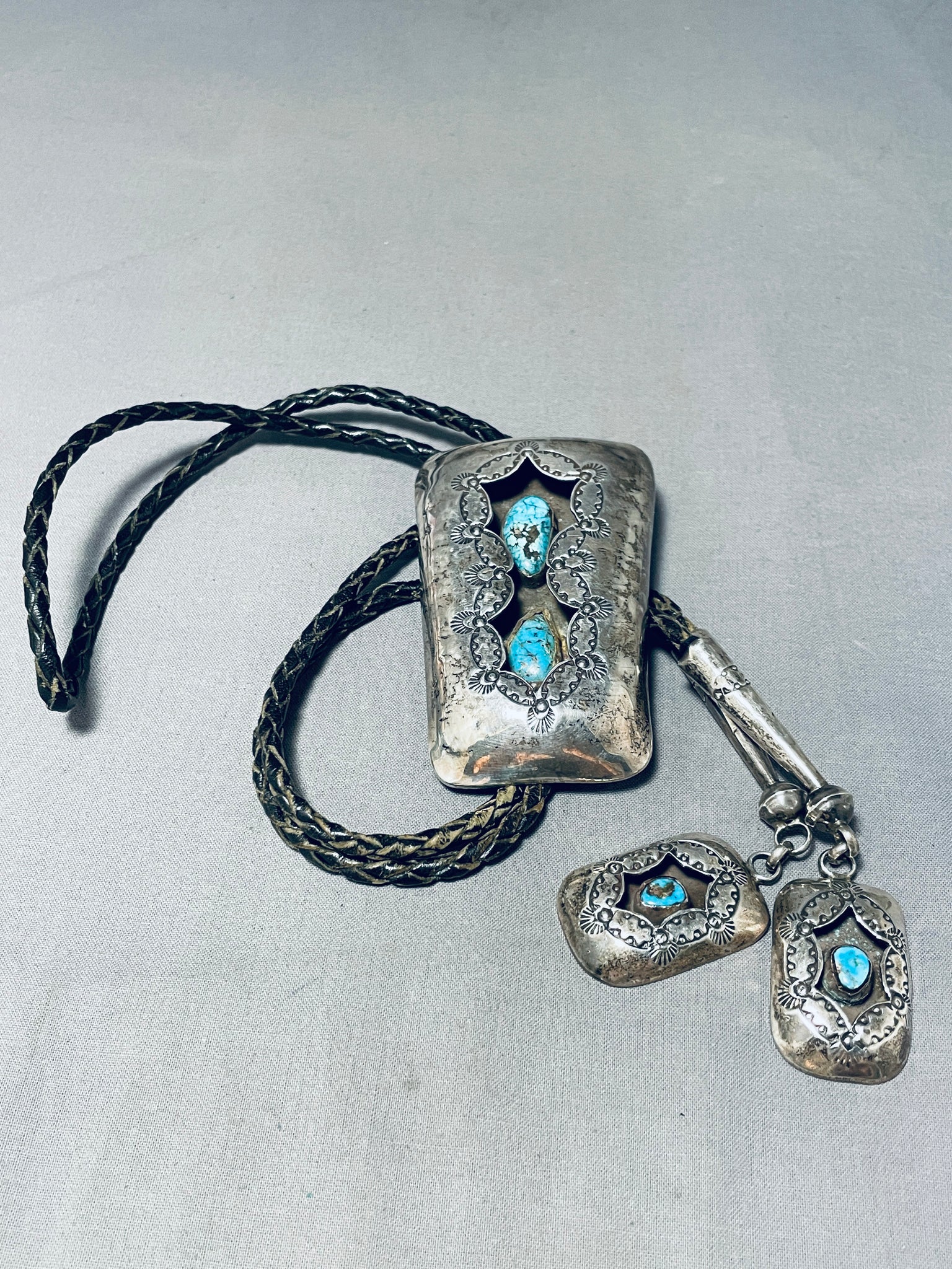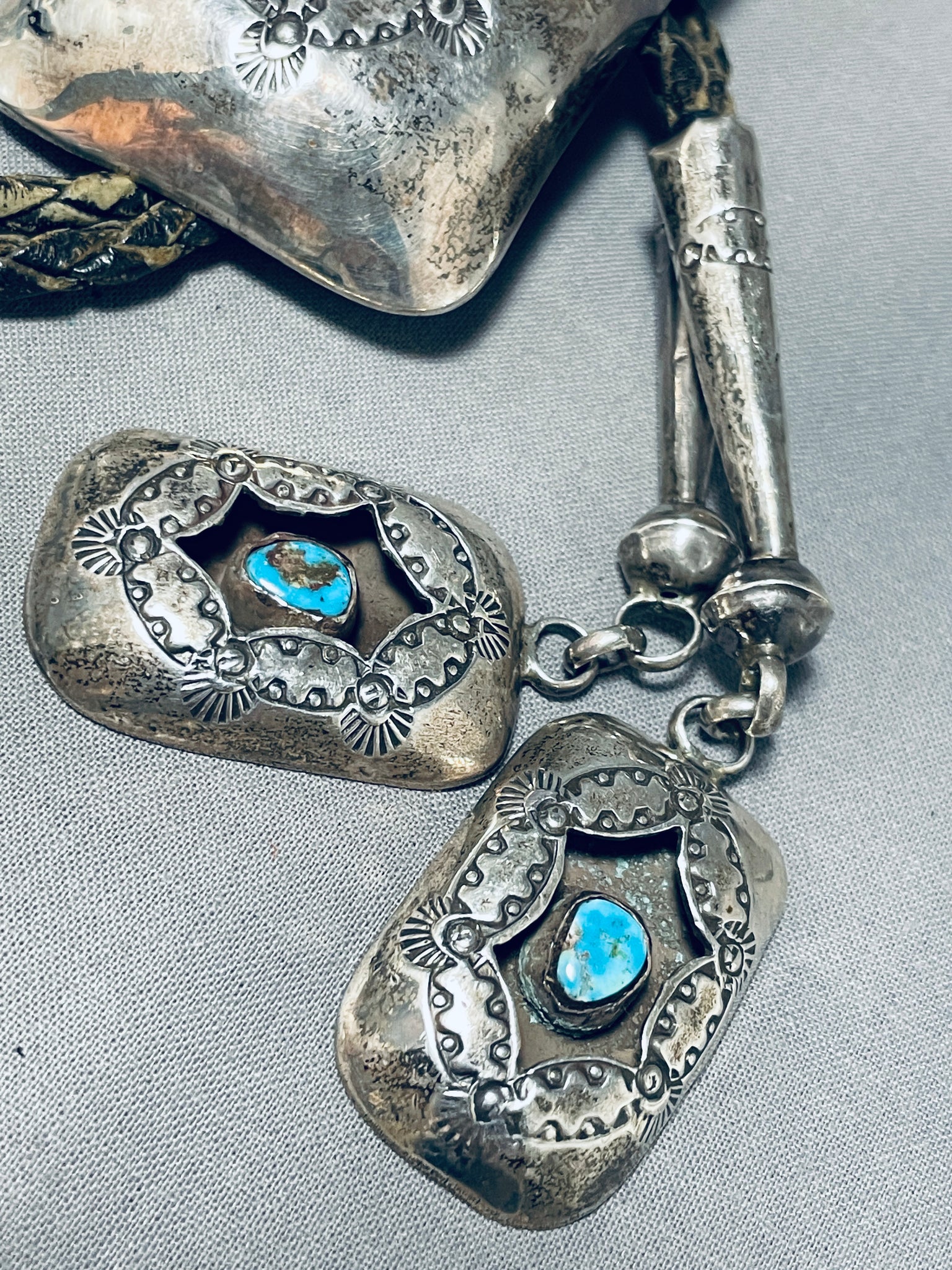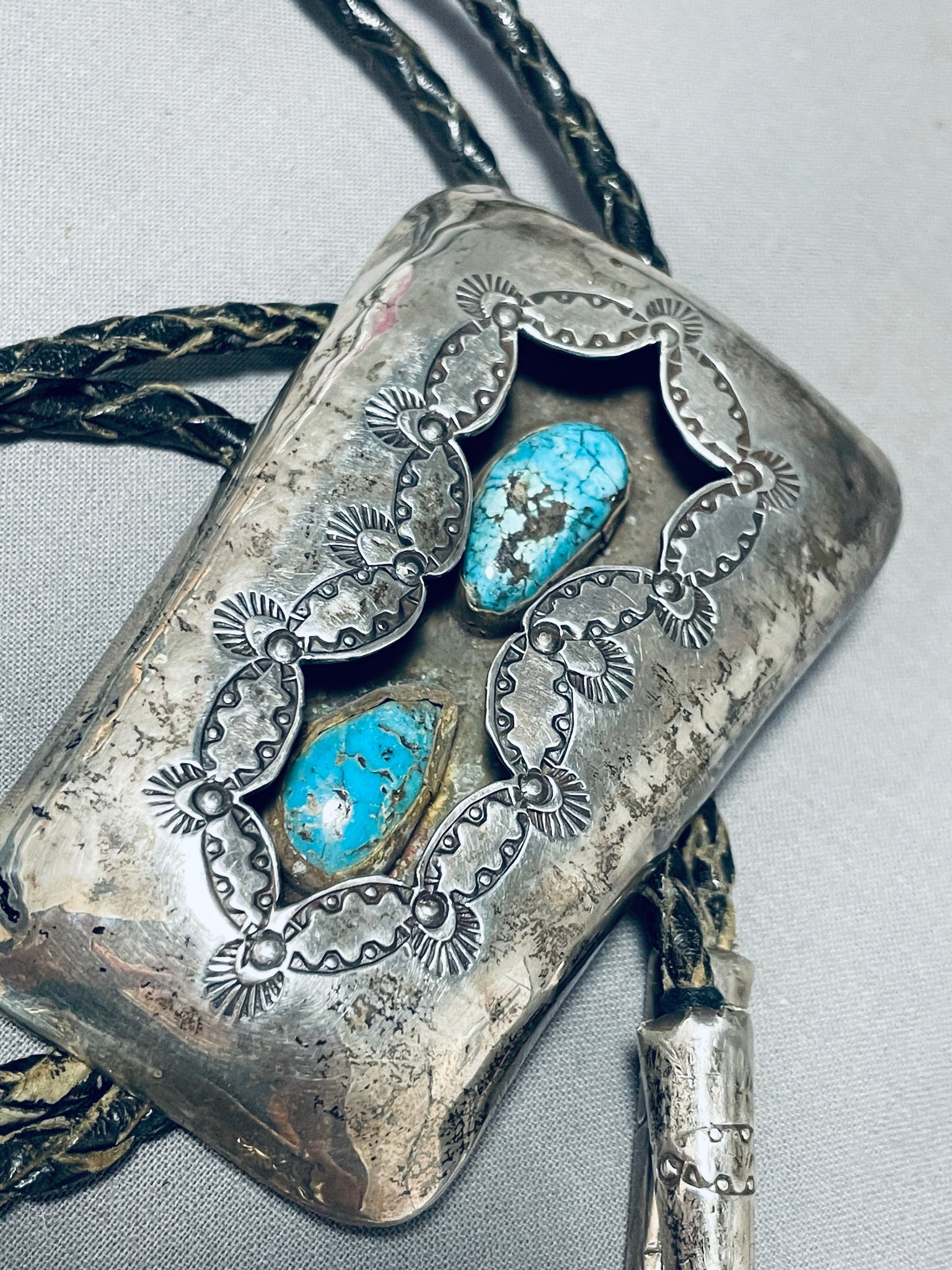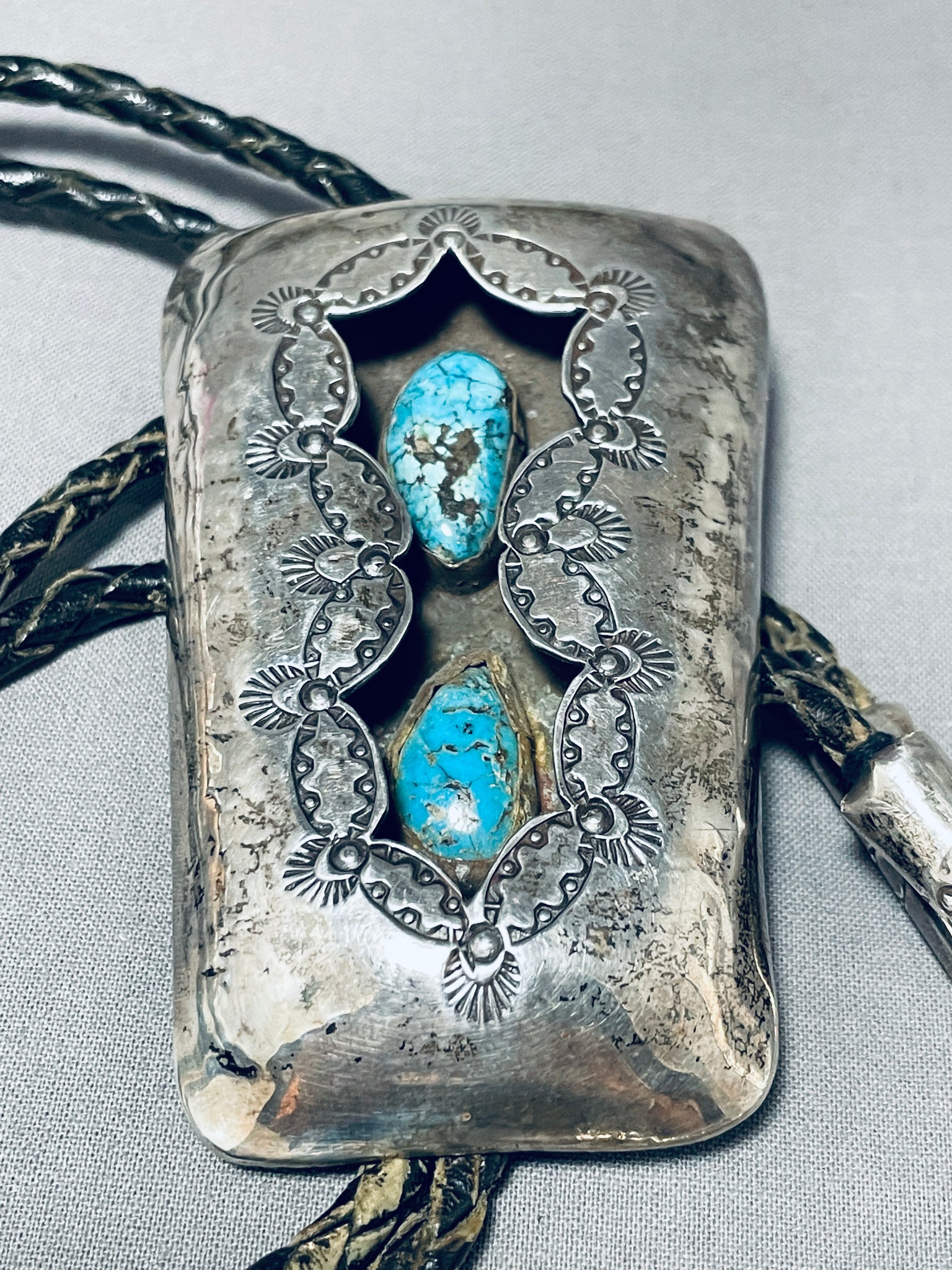 Unbelievable Vintage Native American Navajo Kingman Turquoise Sterling Silver Shadowbox Bolo