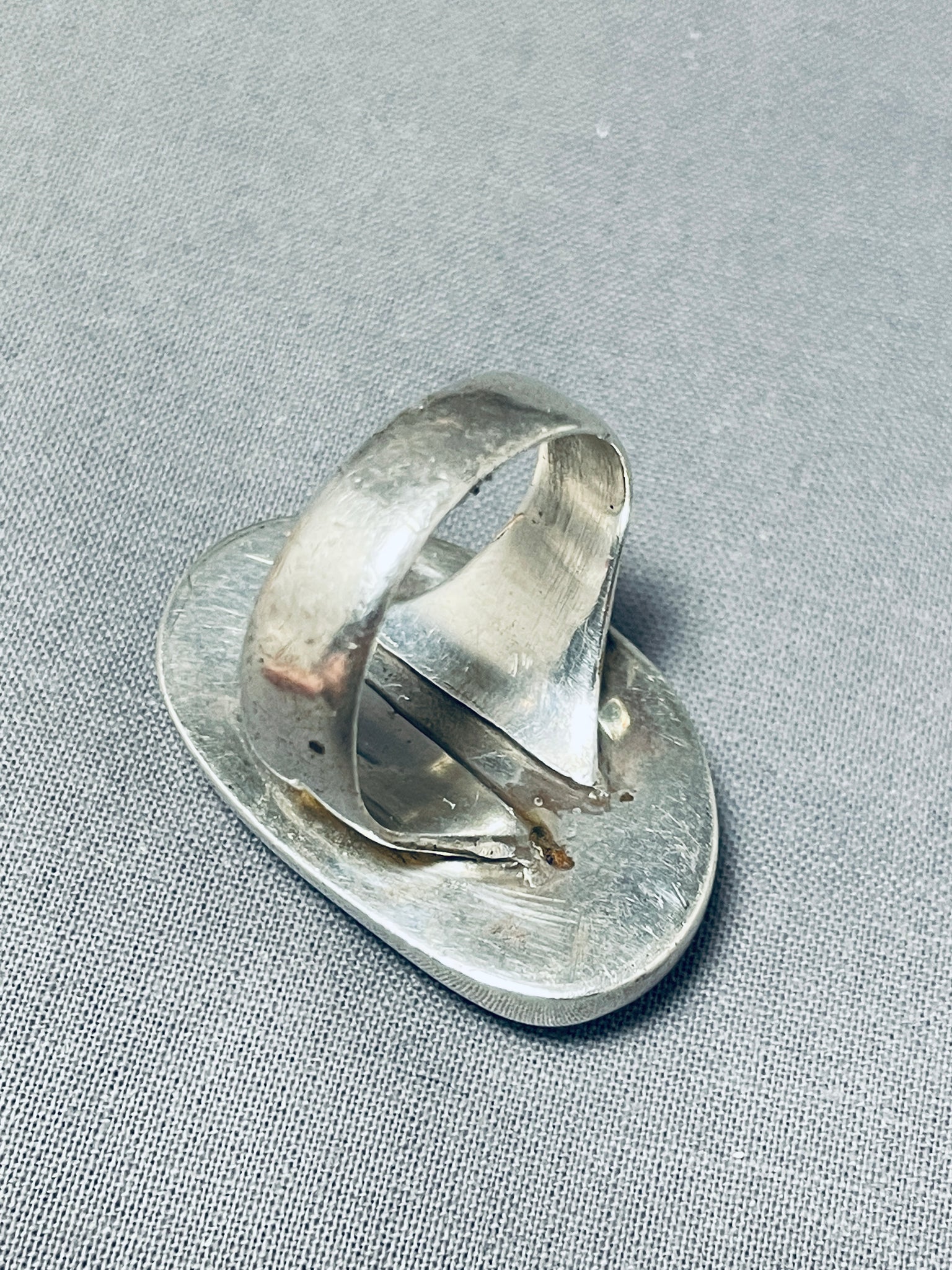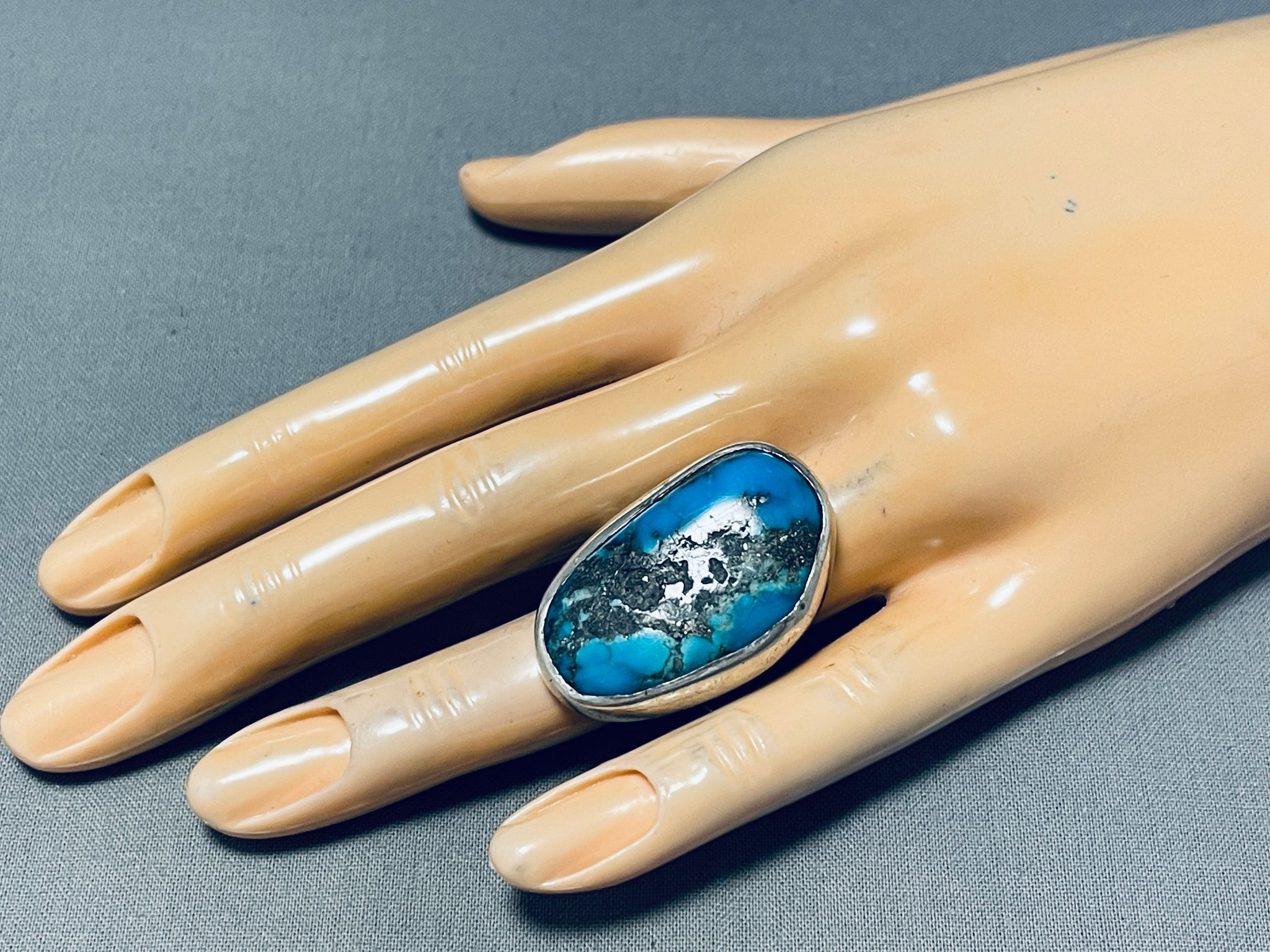 Unbelievable Vintage Native American Navajo Pilot Mountain Turquoise Sterling Silver Ring