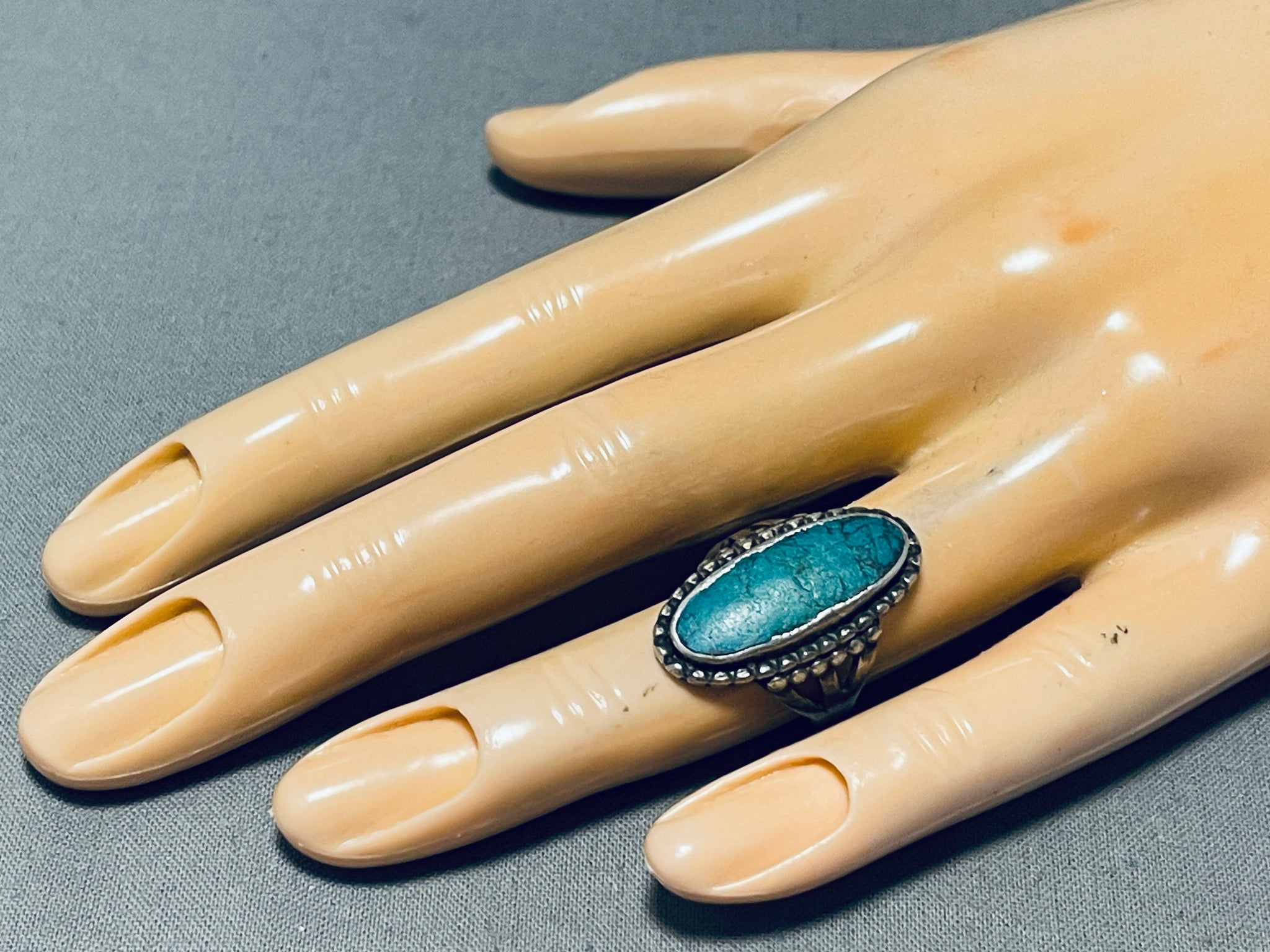 Unbelievable Vintage Native American Navajo Pilot Mountain Turquoise Sterling Silver Ring