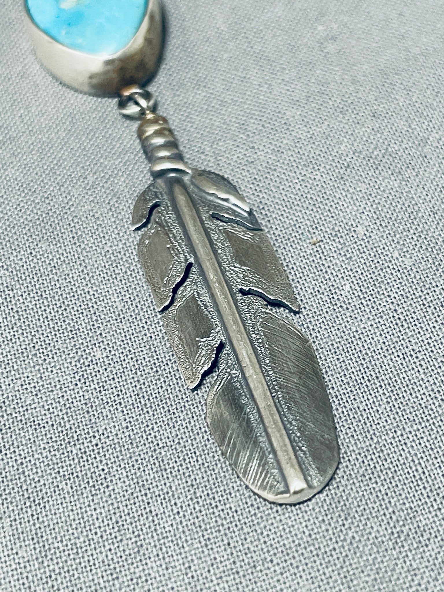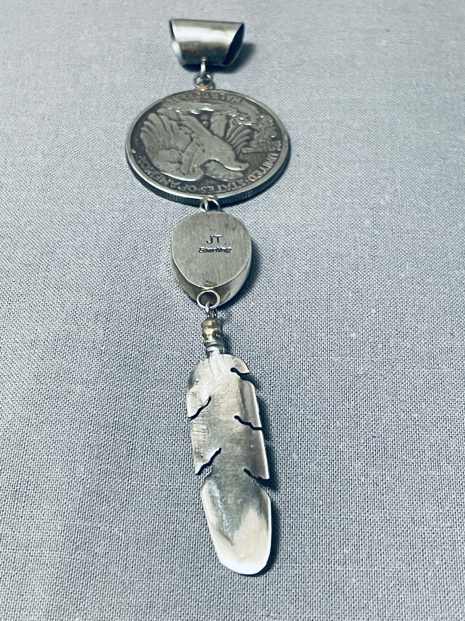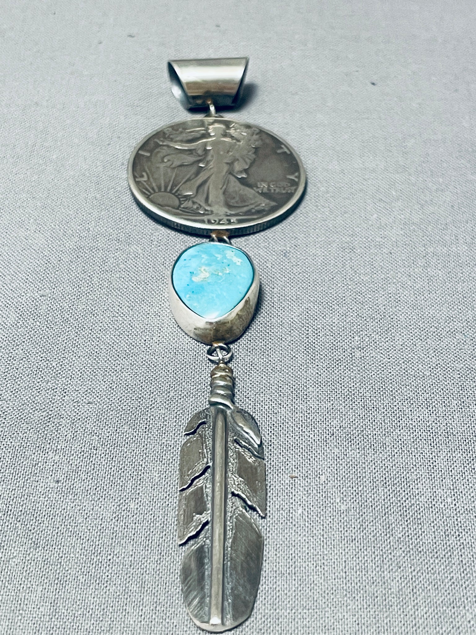 Unforgettable Native American Navajo Blue Gem Turquoise & Coin Sterling Silver Pendant