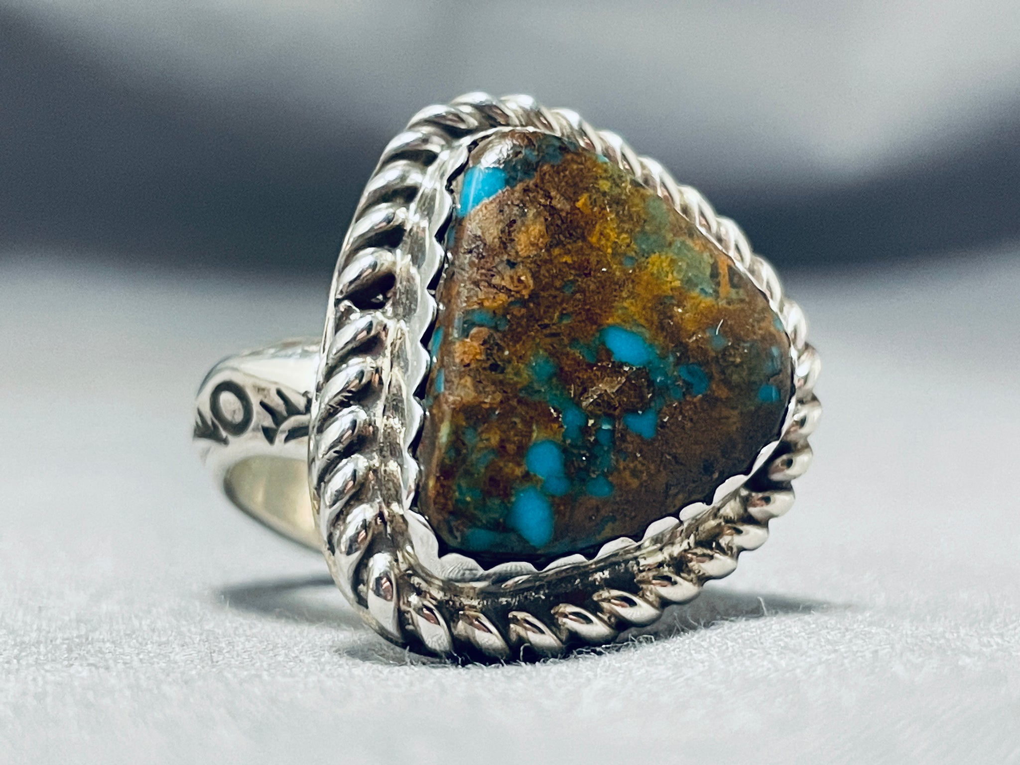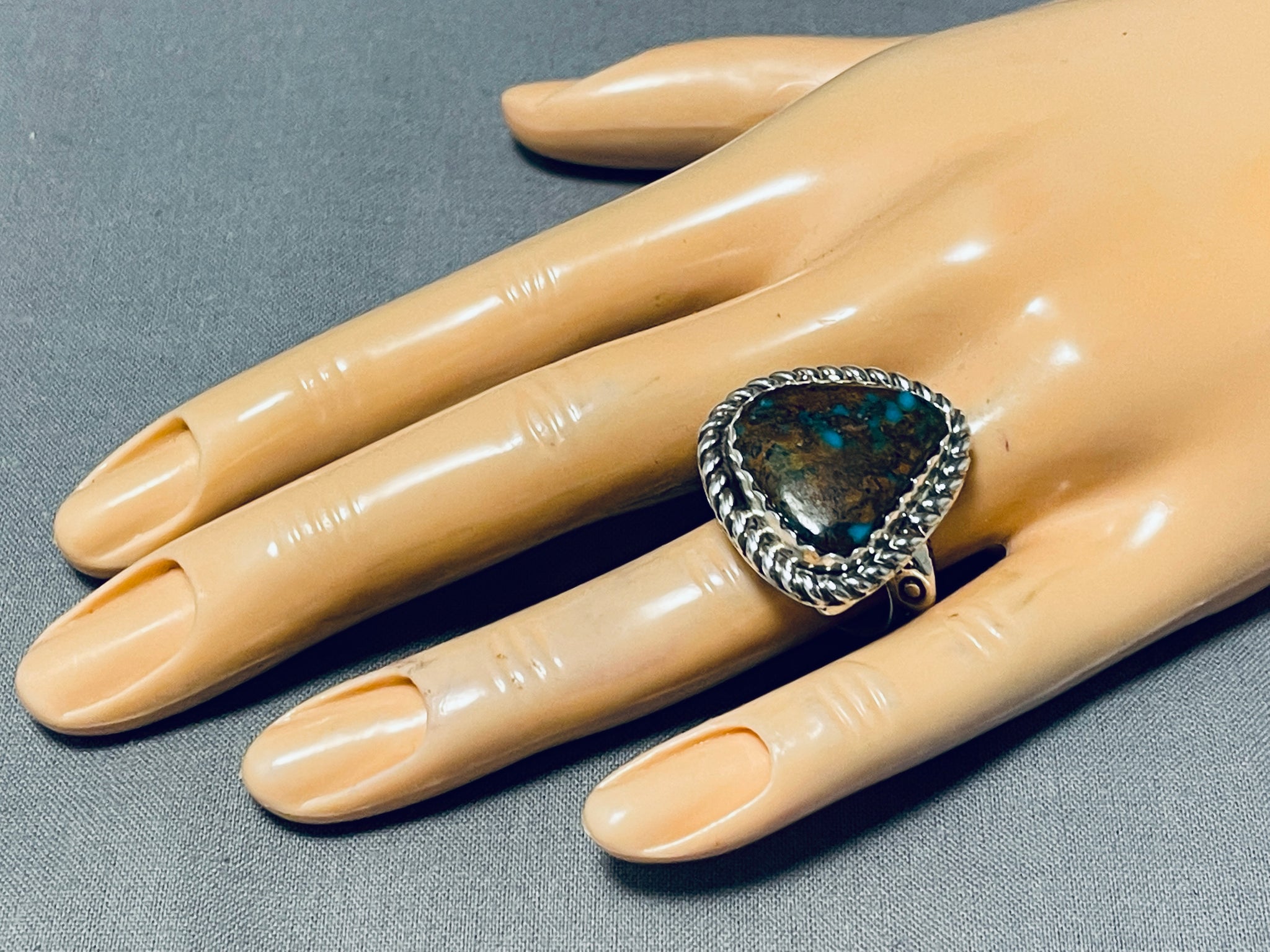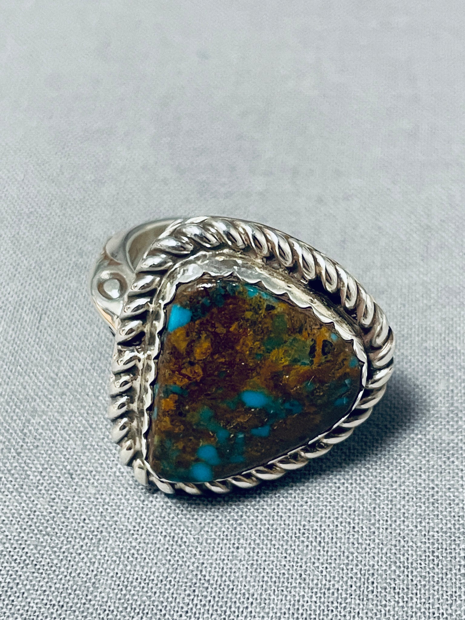 Unique Del Secatero Native American Navajo Bisbee Turquoise Sterling Silver Ring