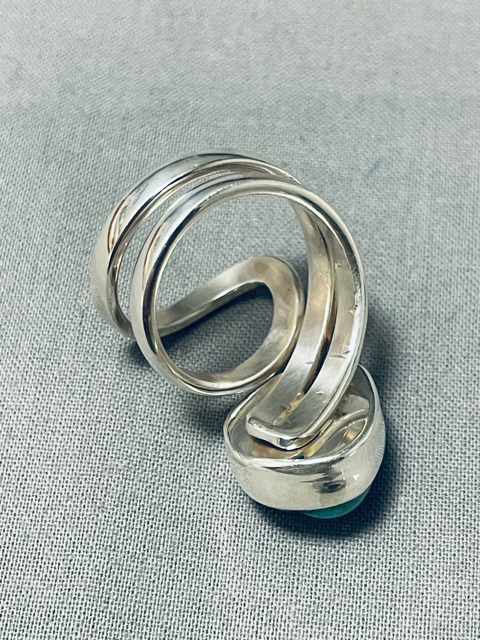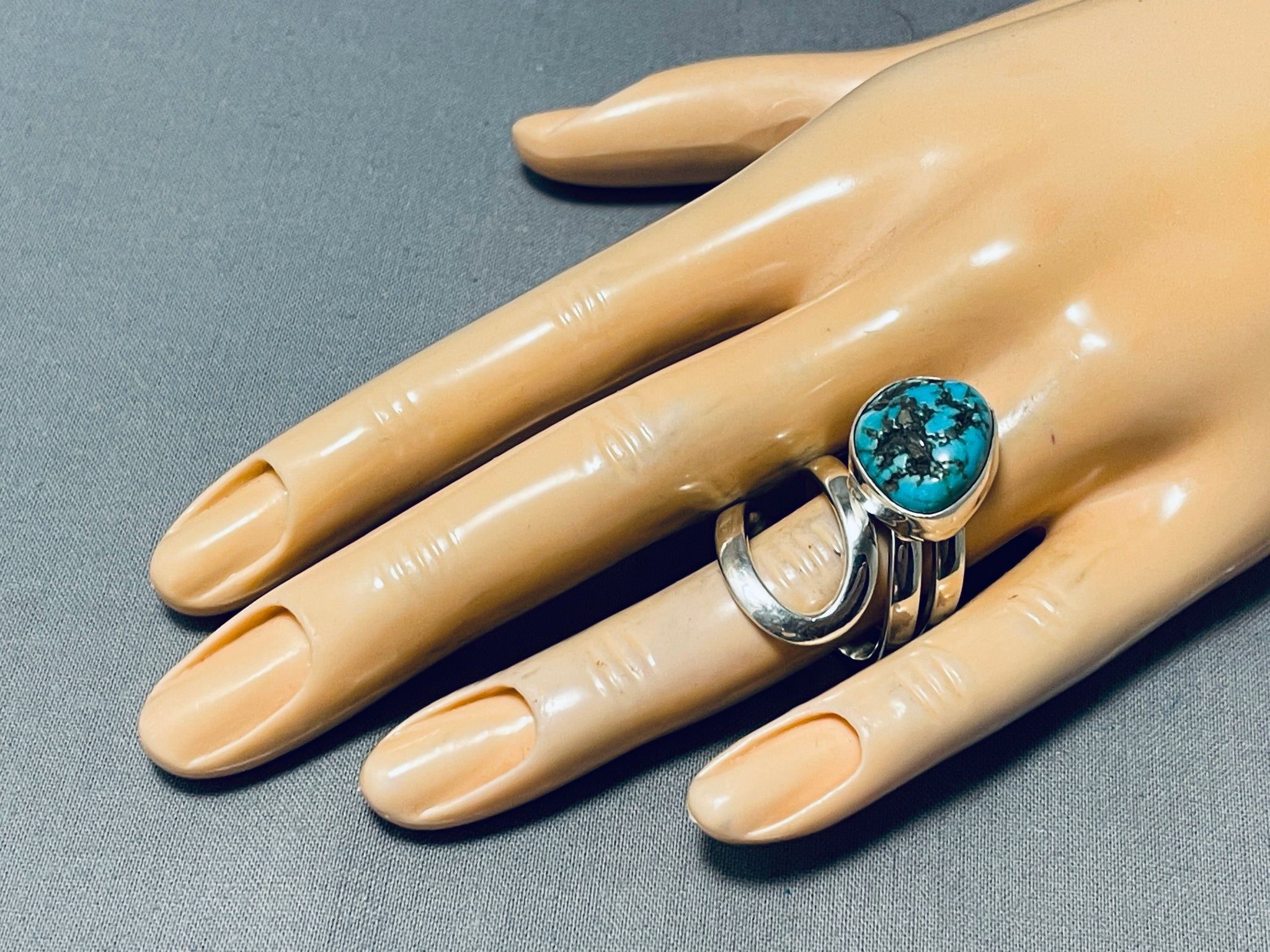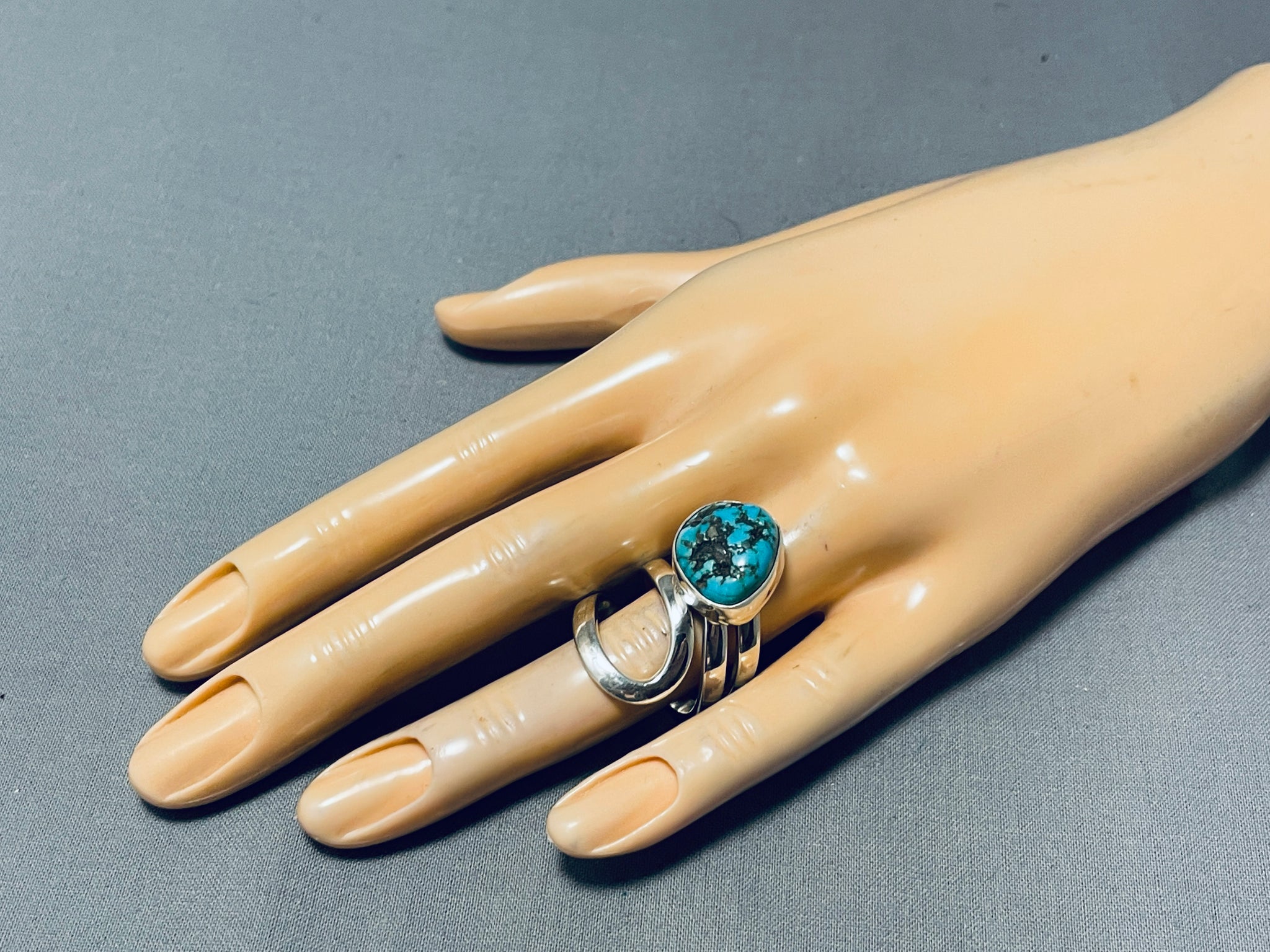 Unique Native American Navajo Kingman Turquoise Sterling Silver Ring Signed Del Secatero