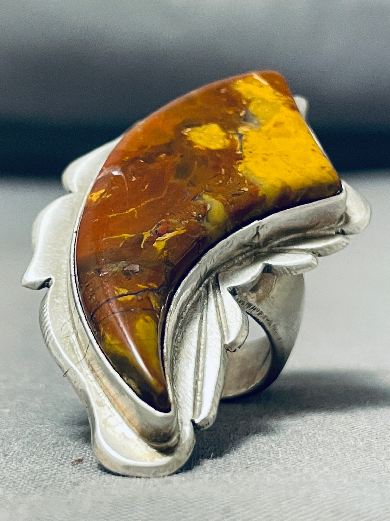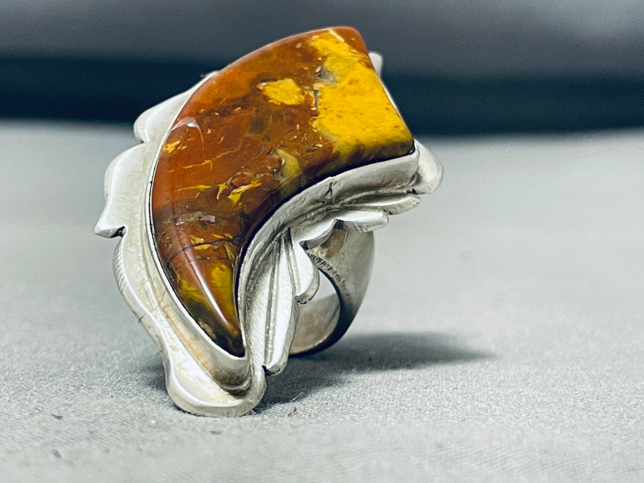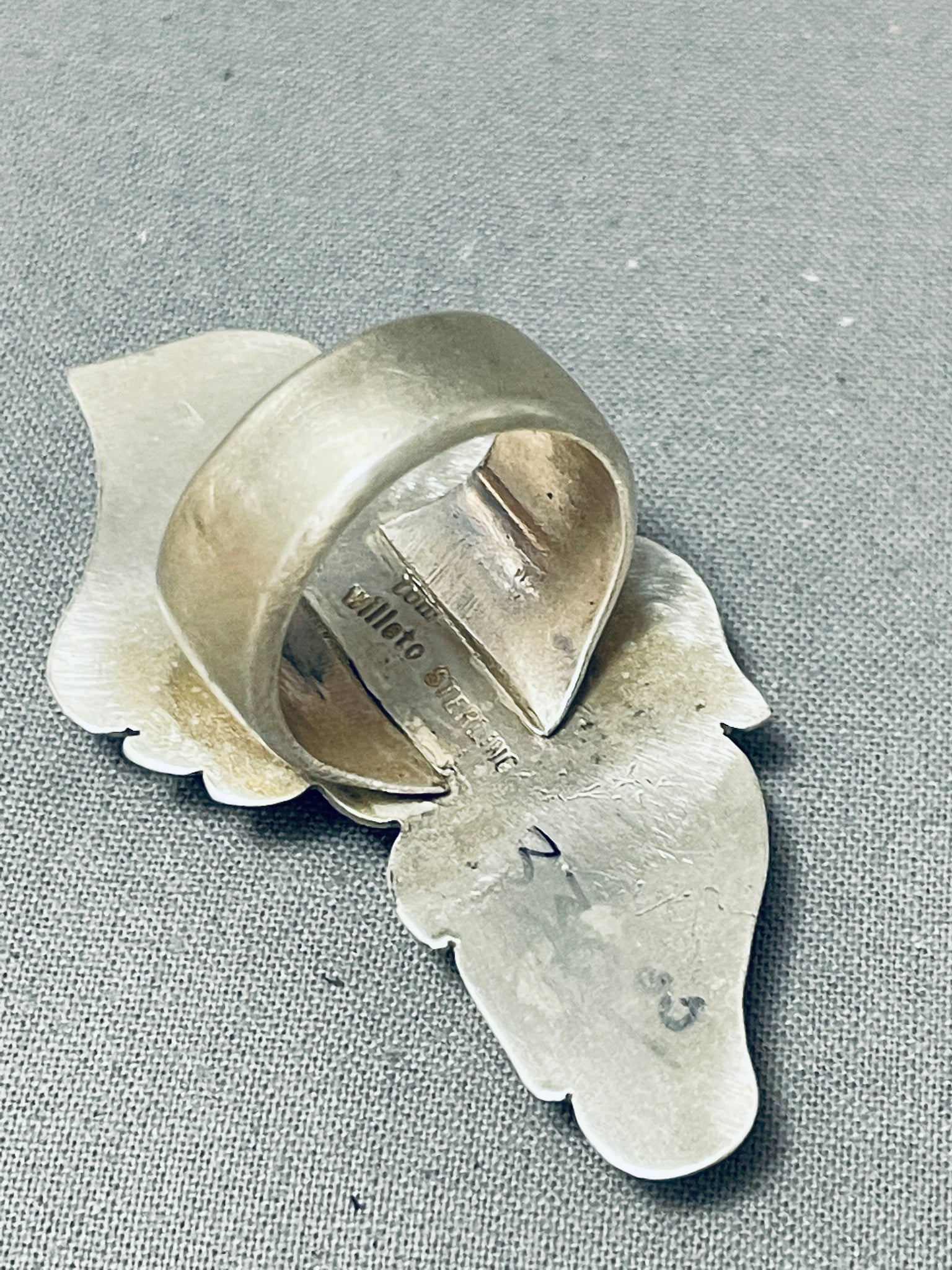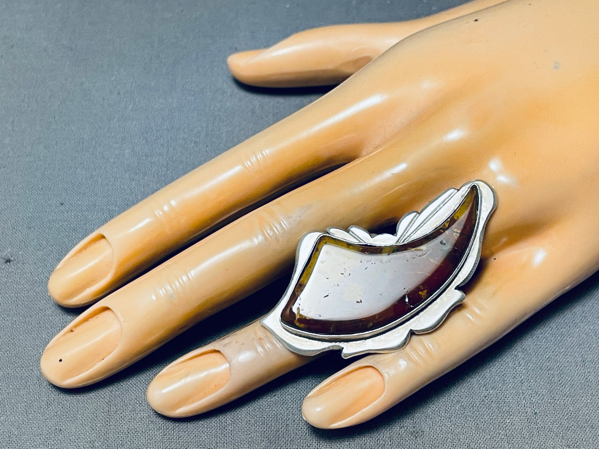 Unique Native American Navajo Signed Agate Cla Sterling Silver Large Ring