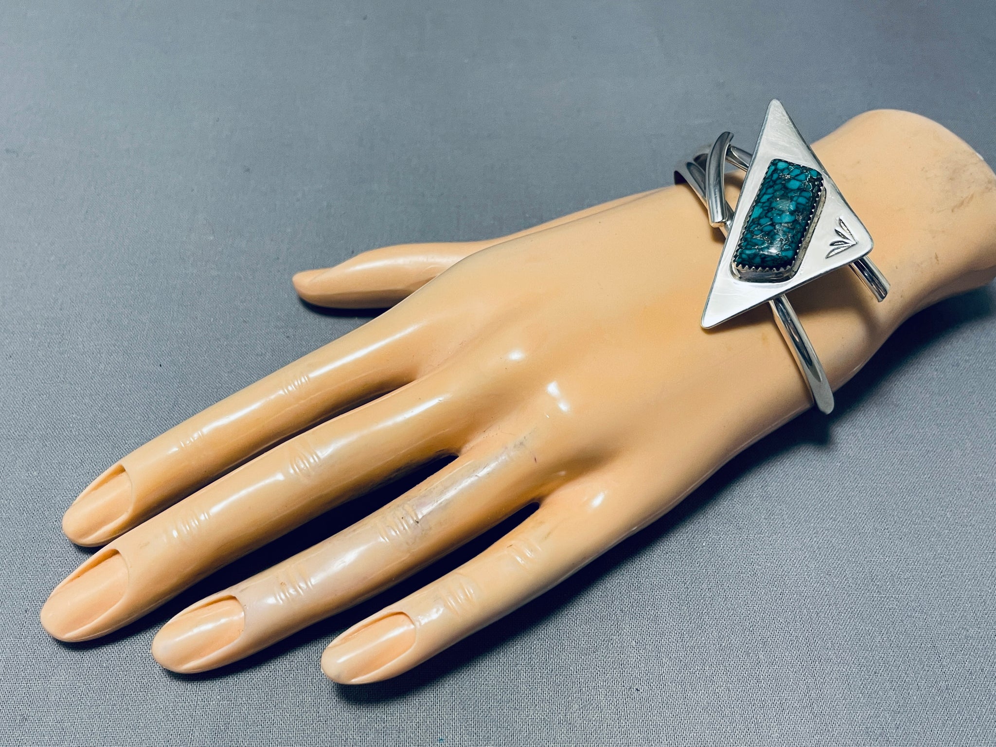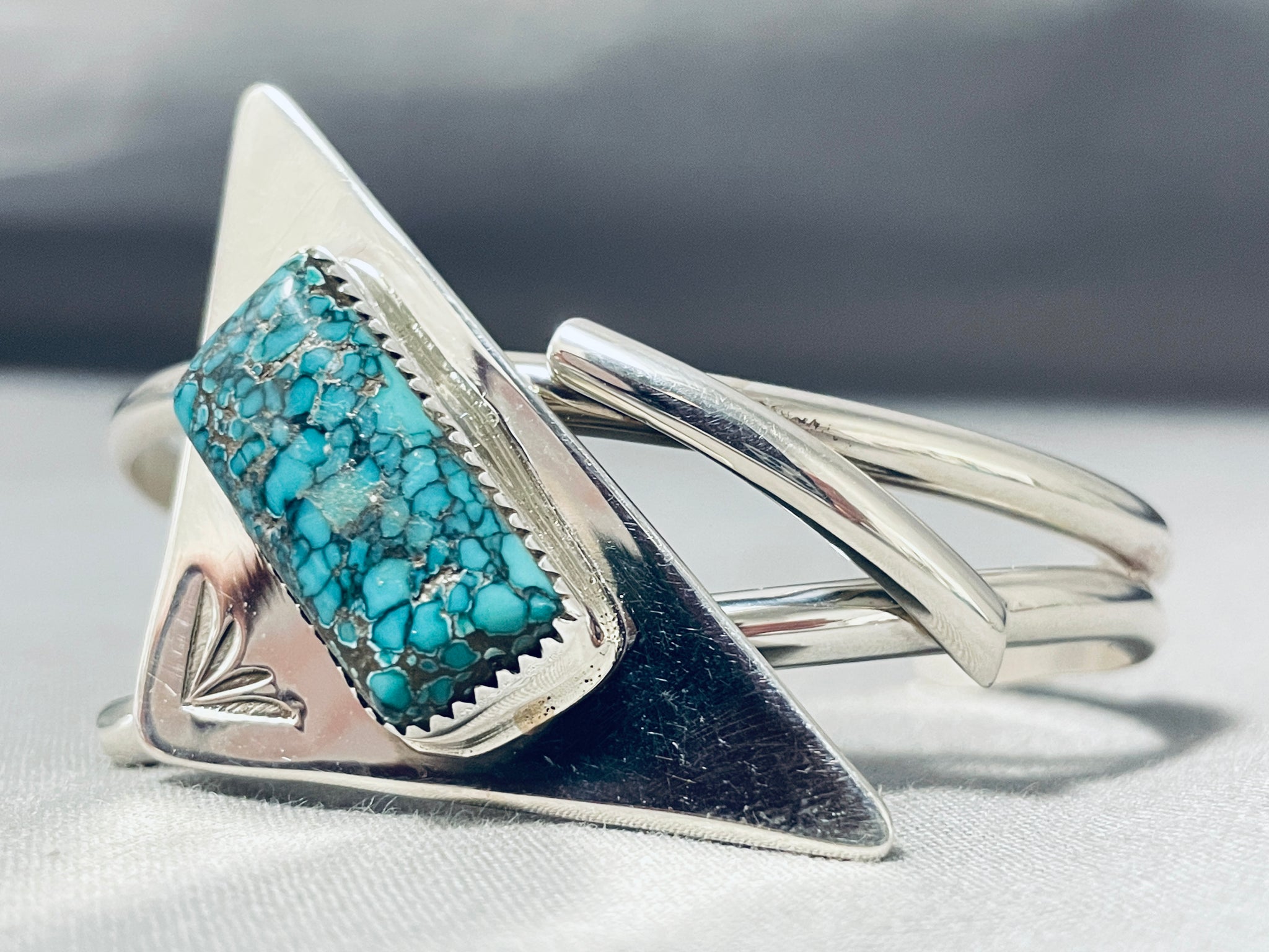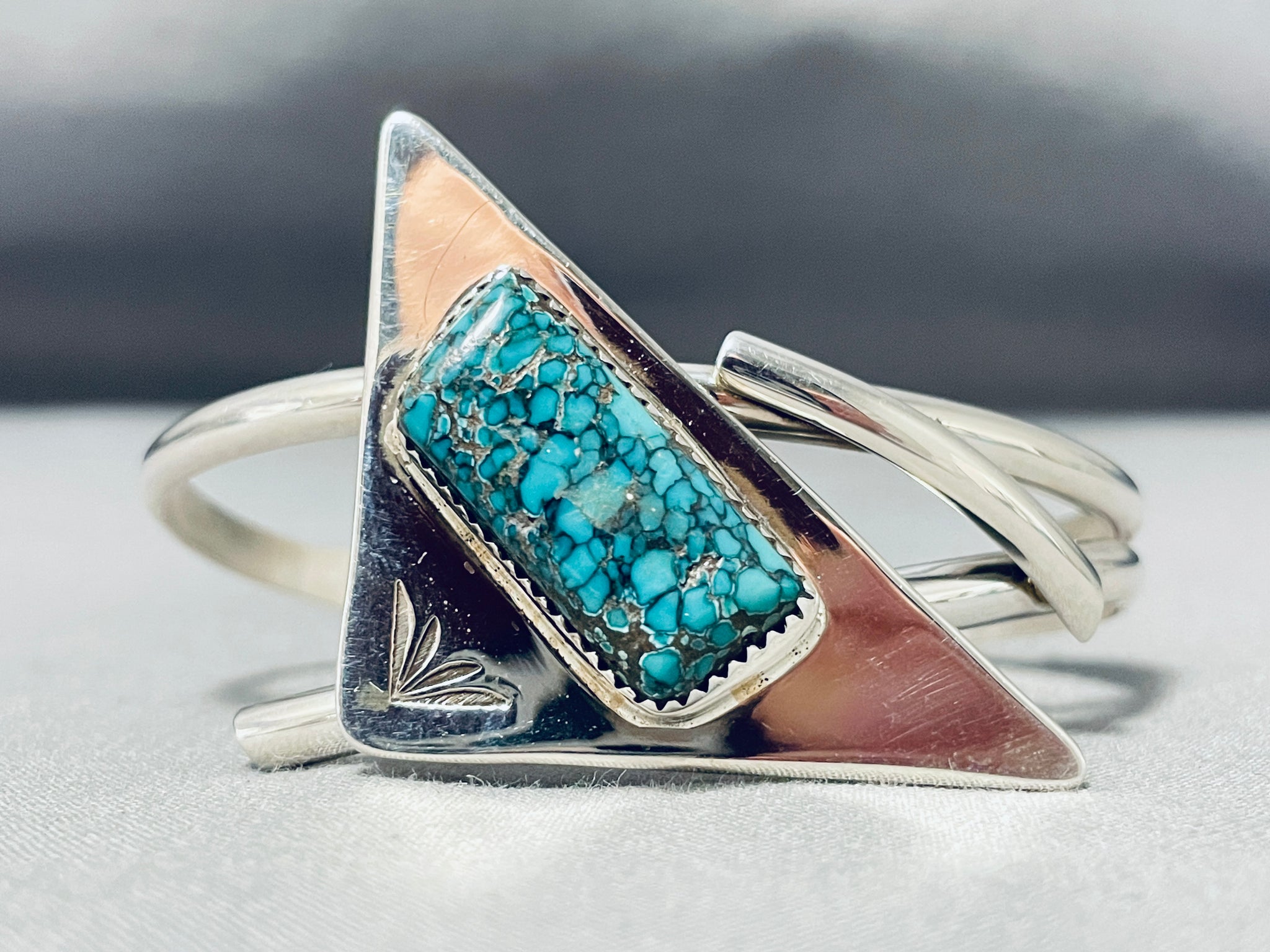 Unique Native American Navajo Spiderweb Turquoise Sterling Silver Bracelet