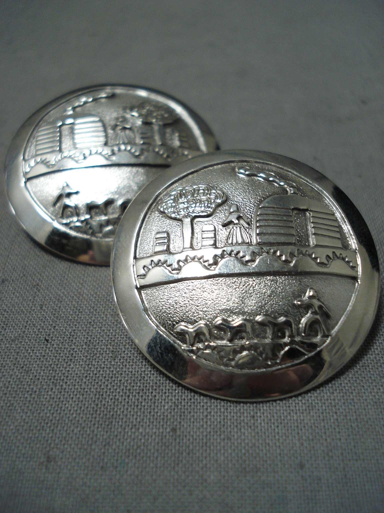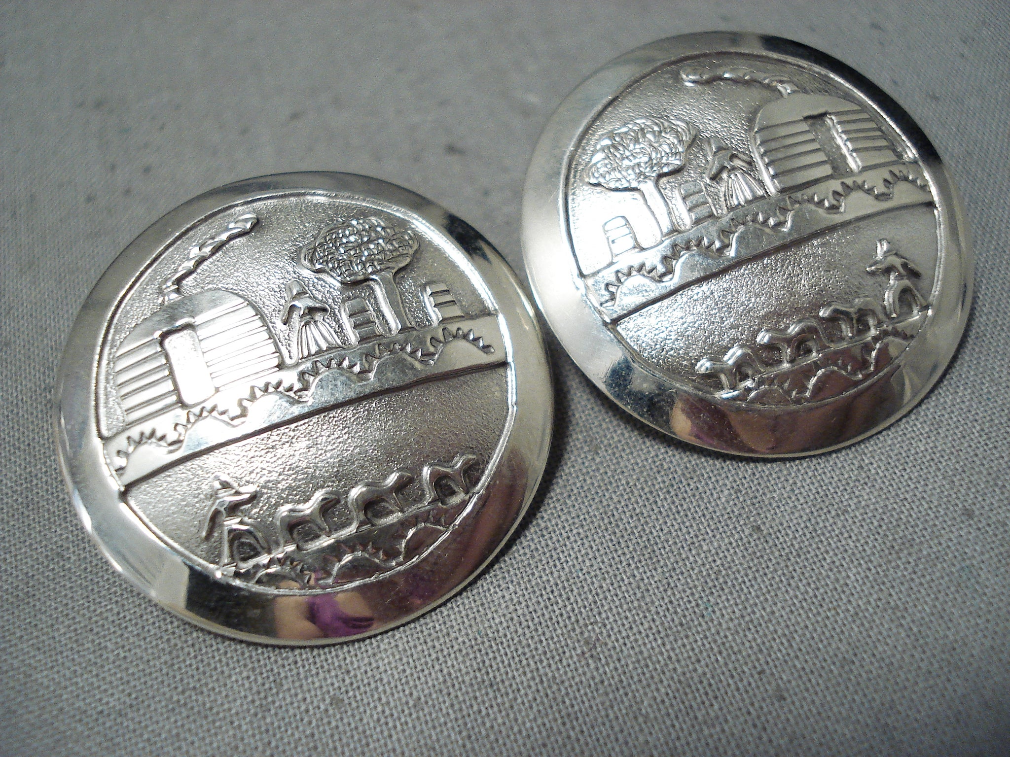 Unique Navajo Native American Sterling Silver Storyteller Earrings