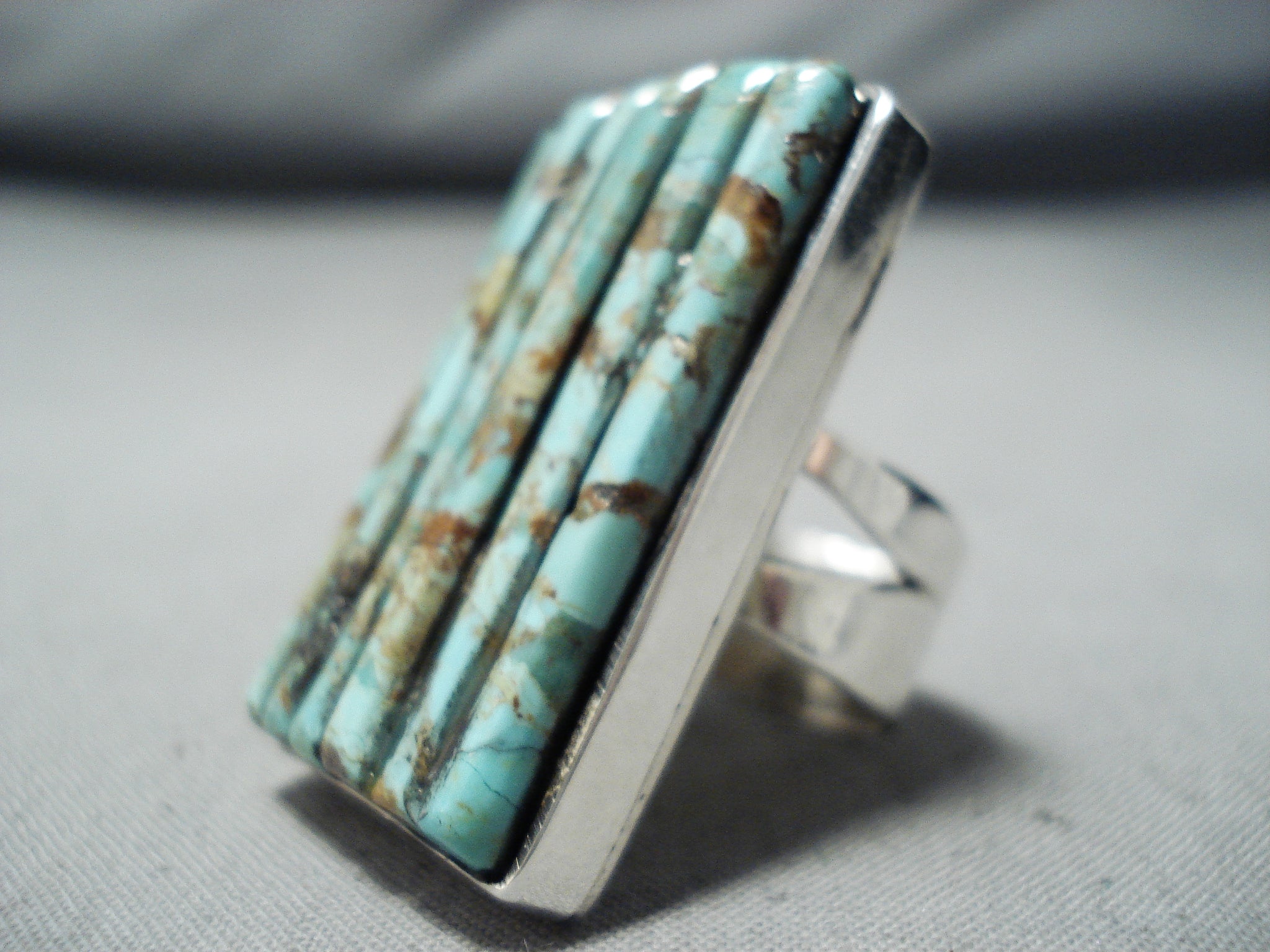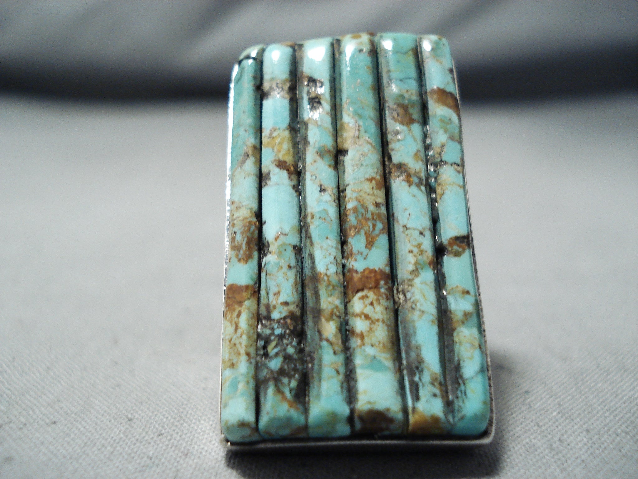 Unique Navajo Native American Turquoise Cornrows Sterling Silver Ring