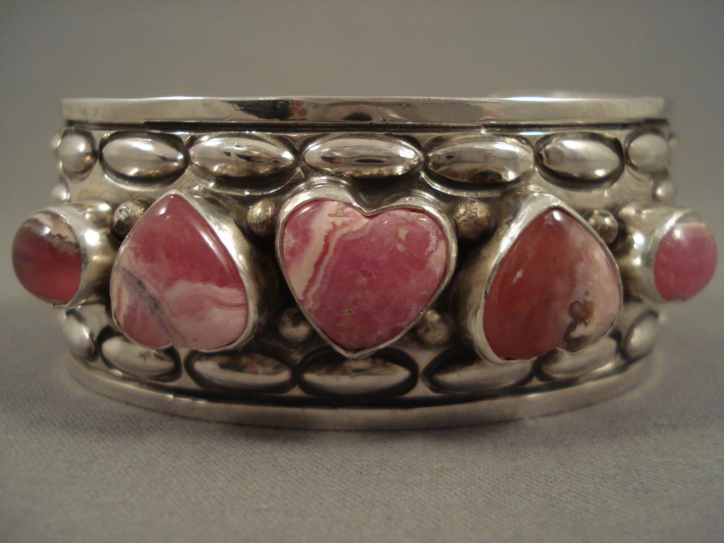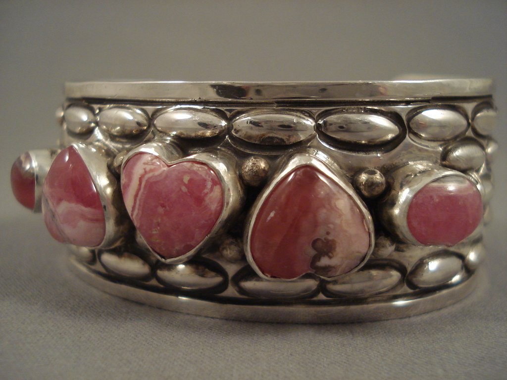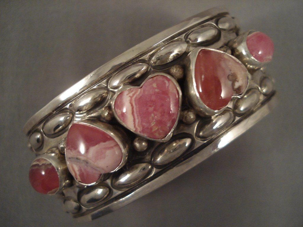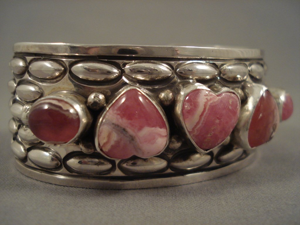 Unique Navajo 'Pink Hearts Of Love' Repoussed Native American Jewelry Silver Bracelet