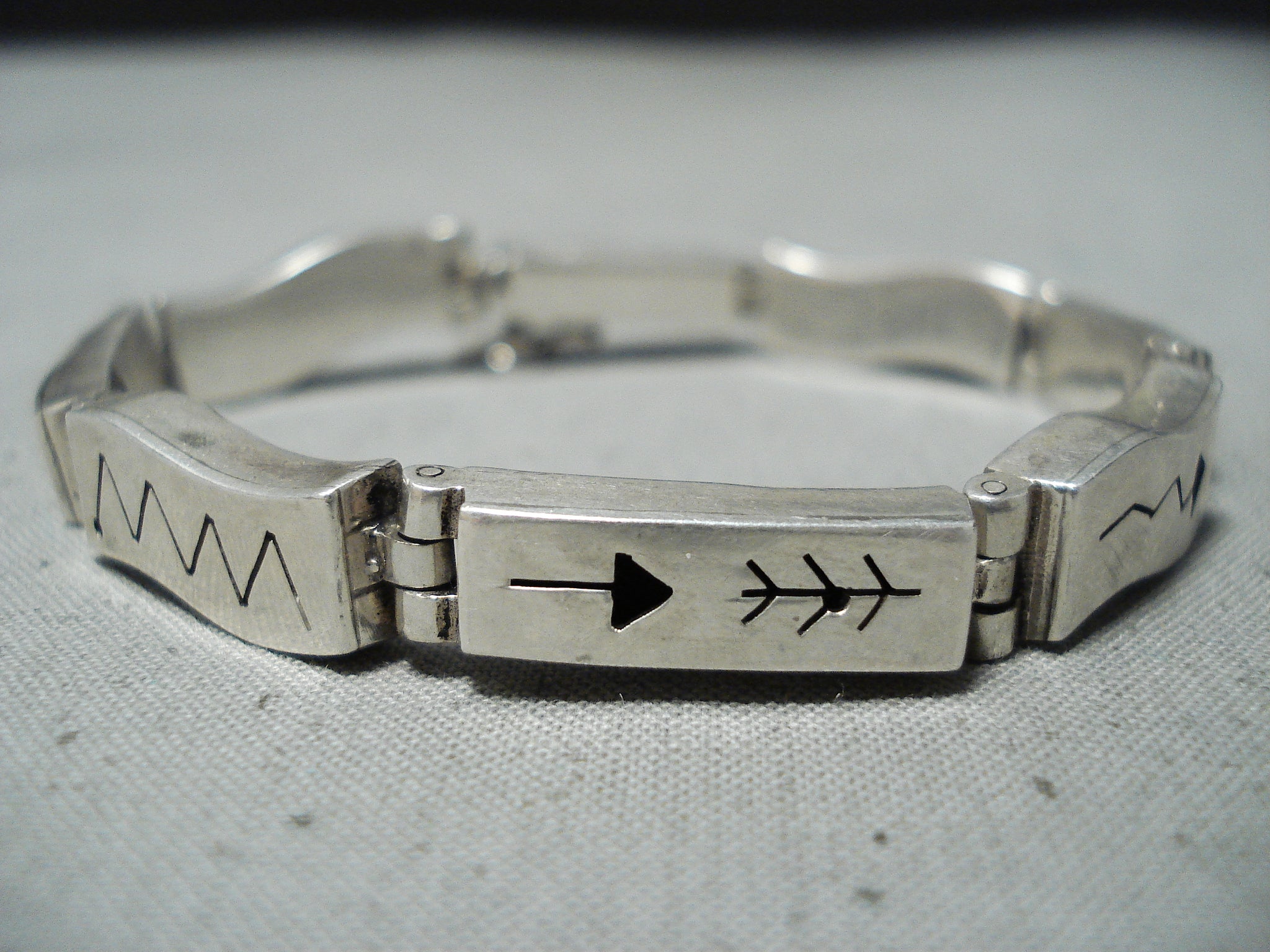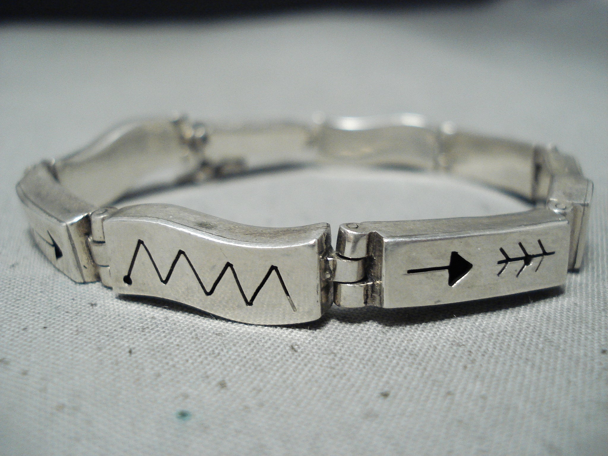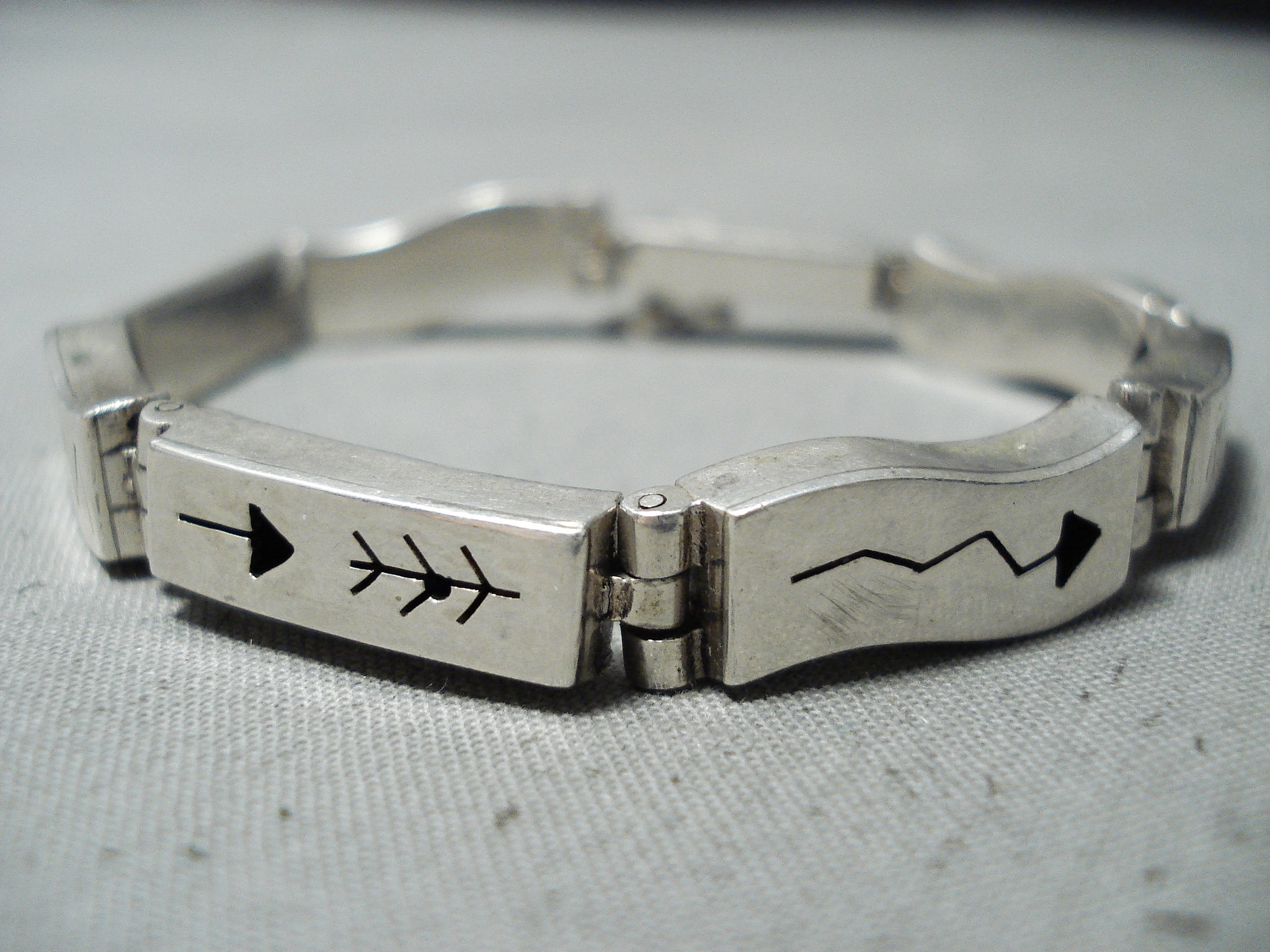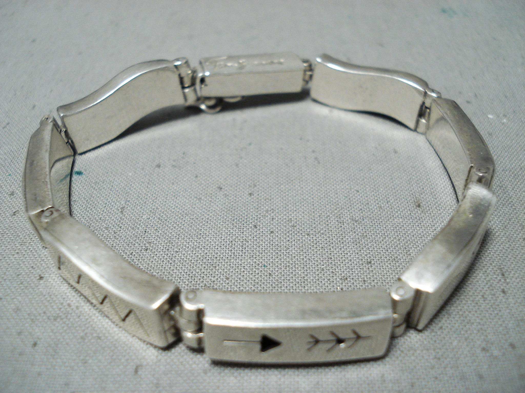 Unique Signed Vintage Native American Navajo Sterling Silver Bracelet